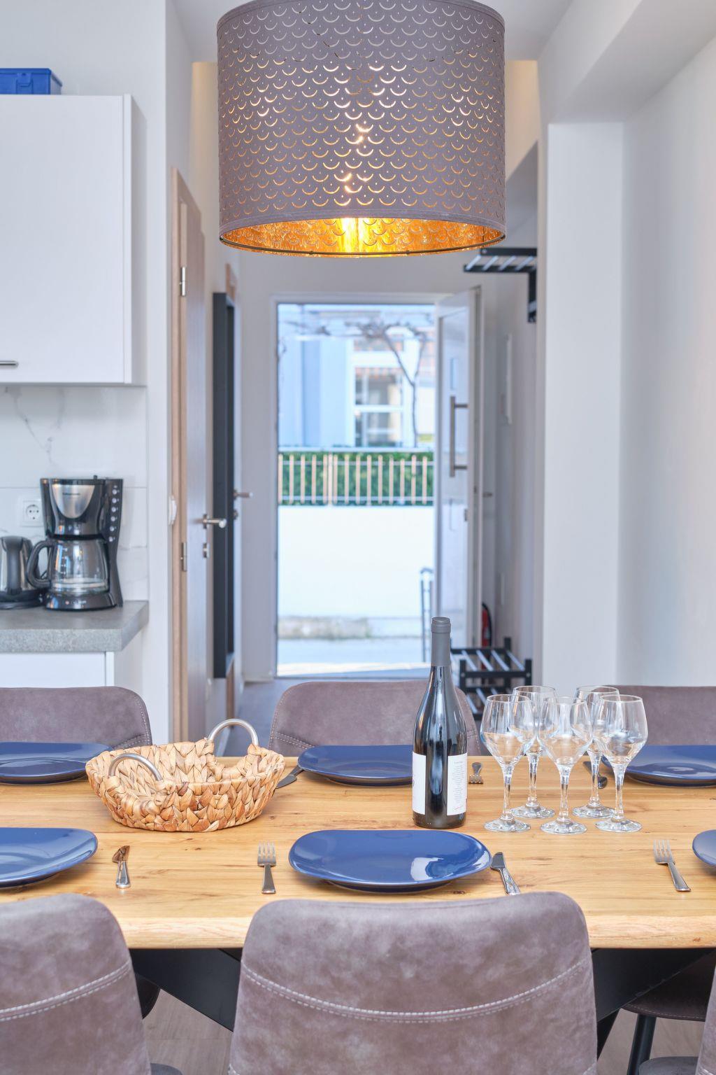 The exterior of this apartment does not disappoint, offering ample opportunities to enjoy the Mediterranean ambiance. Guests have access to a delightful terrace, providing a serene spot to unwind or dine al fresco. The addition of a balcony further enhances the outdoor living experience, allowing guests to soak in the peaceful environment of Mastrinka.