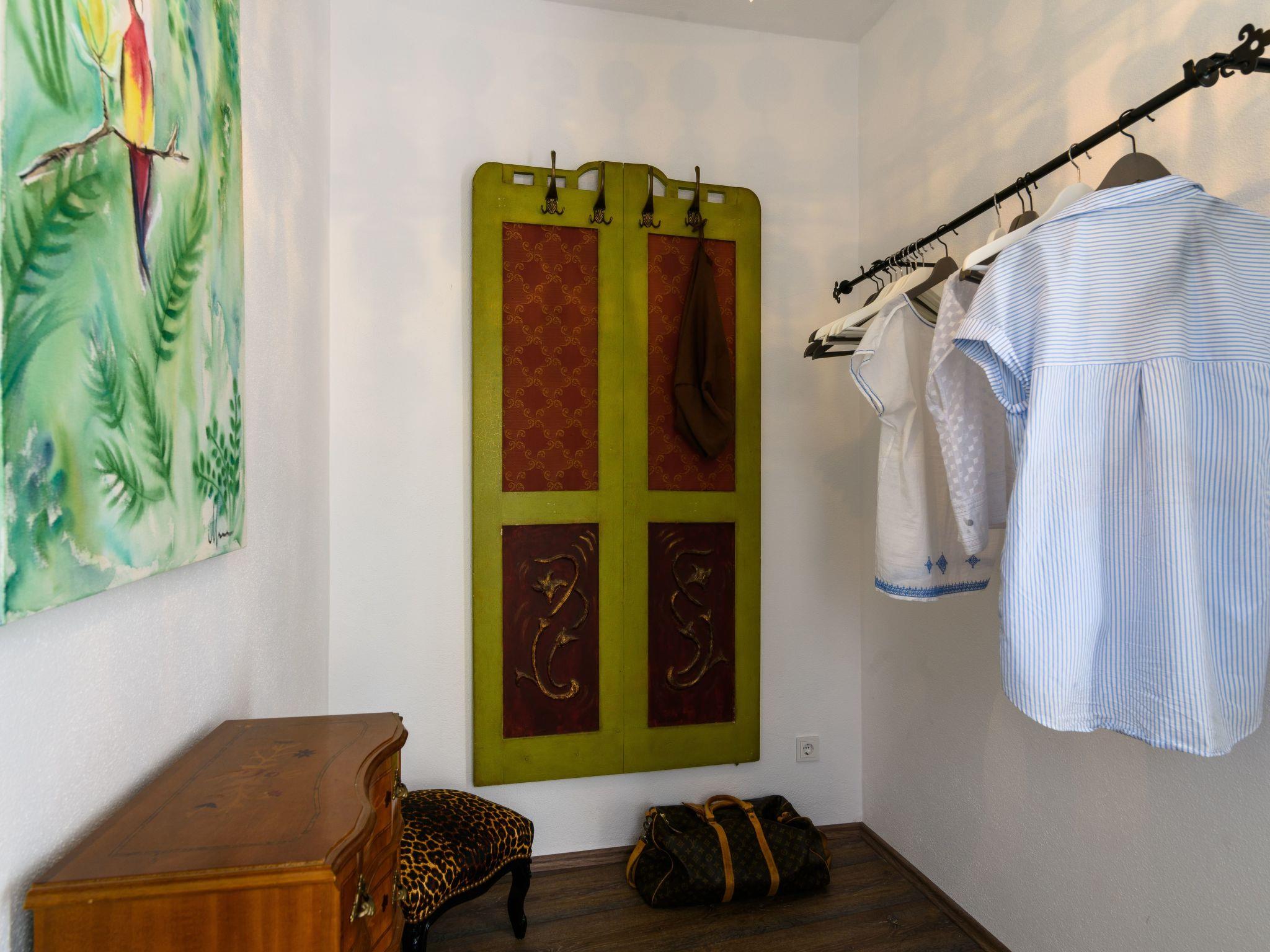 The second floor consists of two bedrooms, each with a double bed and a Vertigo wardrobe. A separate wardrobe room provides additional storage space. A bathroom with a walk-in rain shower and a fantastic large terrace with views of the Adriatic and various seating and lounging options.
