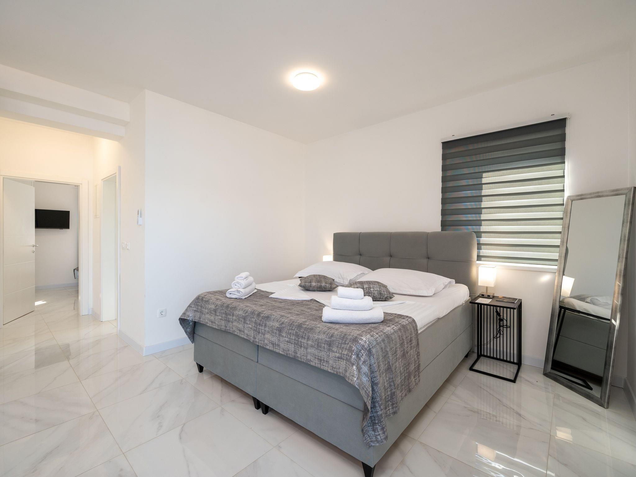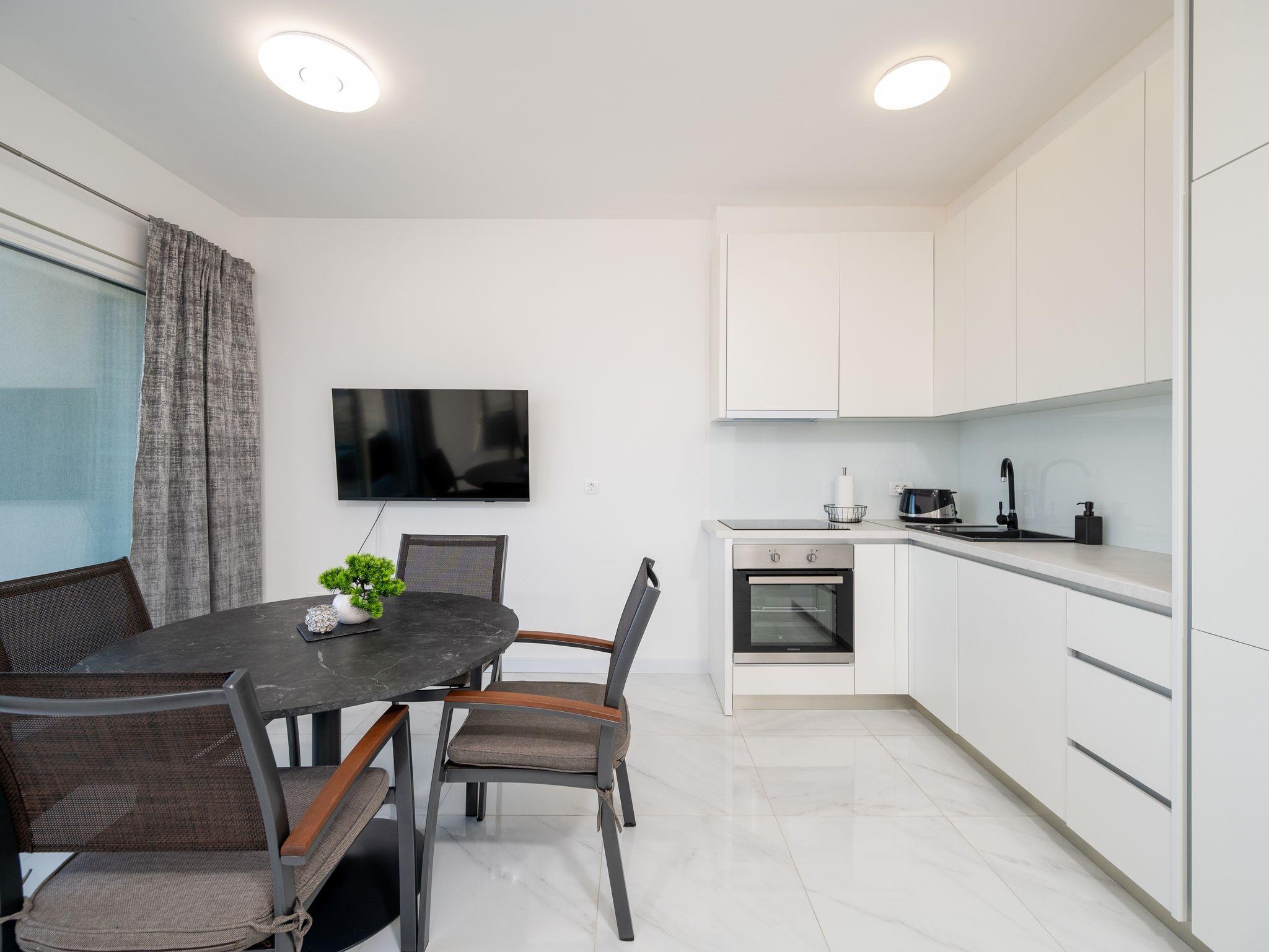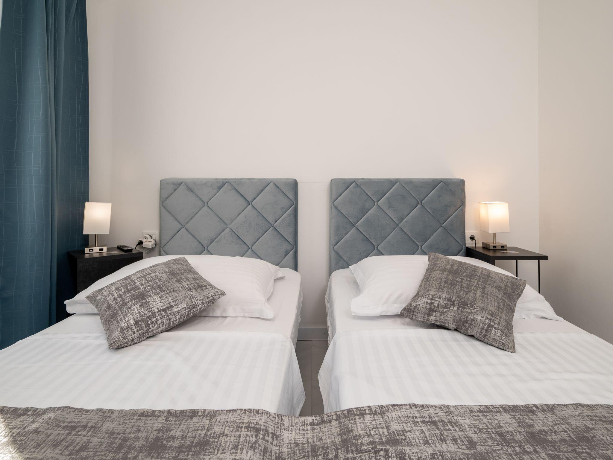 Ferienwohnung bietet Platz für 4 Gäste. Die Betten sind in Schlafzimmern, die es 1 gibt, und in Wohnzimmer, innerhalb einer Gesamtfläche von 38m2, angeordnet. Die Gäste haben einen eigenen Balkon zur Verfügung, auf der sie in warmen Sommernächten genießen können. Das Apartment bietet Meerblick. IM PREIS INBEGRIFFEN: Kurtaxe, Endreinigung, Klimatisierung, Parkplatz, Internet, Kinderbett, Bügeleisen, Bügelbrett, Föhn. Die Verfügbarkeit zusätzlicher Dienstleistungen in Ihrem reservierten Termin und die Preise derselben (falls nicht aufgeführt) müssen im Voraus überprüft werden. Zusätzliche Dienstleistungen die in der Zahlungsaufforderung nicht aufgeführt sind werden direkt beim Vermieter bezahlt, angenommen der Gast nutzt auch diese. Ermäßigung auf den Grundpreis: Gratistag 21=19 (bei einem Aufenthalt von 21 Tagen oder mehr erhalten Sie 2 Gratistage für den Aufenthalt bis 31.12.26).