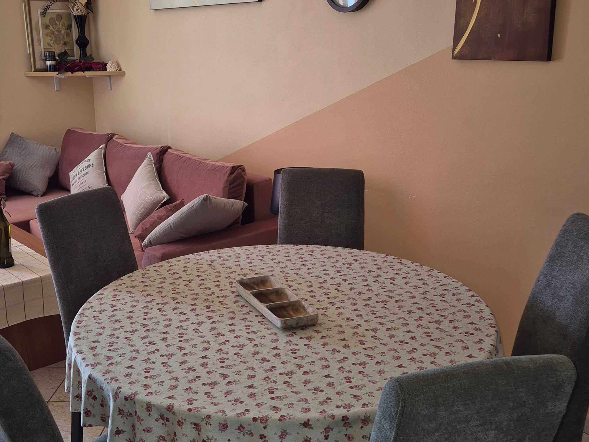 Ferienwohnung bietet Platz für 6 Gäste. Die Betten sind in Schlafzimmern, die es 2 gibt, und in Wohnzimmer, innerhalb einer Gesamtfläche von 62m2, angeordnet. Die Gäste haben eine eigene Terrasse zur Verfügung, auf der sie in warmen Sommernächten genießen können. Das Apartment bietet Meerblick. Für vollen Genuss und Entspannung gibt es einen privaten Grill für Gäste dieser Unterkunft. Während ihres Aufenthalts können Gäste das gemeinsam zur Nutzung stehende Schwimmbad benutzen. IM PREIS INBEGRIFFEN: Kurtaxe, Endreinigung, Klimatisierung, Pool, Parkplatz, Internet, Föhn. VERBINDLICHE ZUSÄTZLICHE KOSTEN: Aufzahlung für Kurzaufenthalte (prozentualer Zuschlag pro Nächtigungsanzahl: 30% - 1, 20% - 2, 10% - 3). Die Verfügbarkeit zusätzlicher Dienstleistungen in Ihrem reservierten Termin und die Preise derselben (falls nicht aufgeführt) müssen im Voraus überprüft werden. Zusätzliche Dienstleistungen die in der Zahlungsaufforderung nicht aufgeführt sind werden direkt beim Vermieter bezahlt, angenommen der Gast nutzt auch diese.