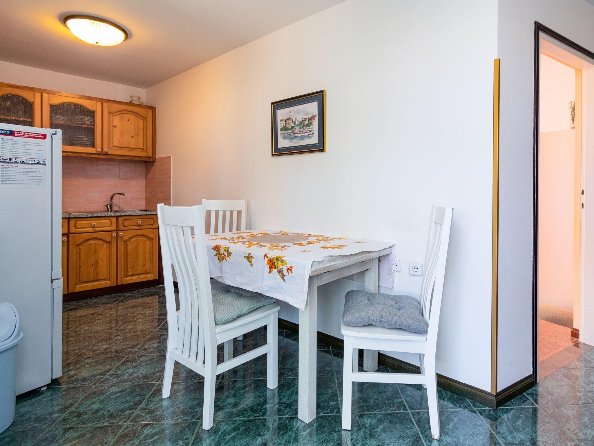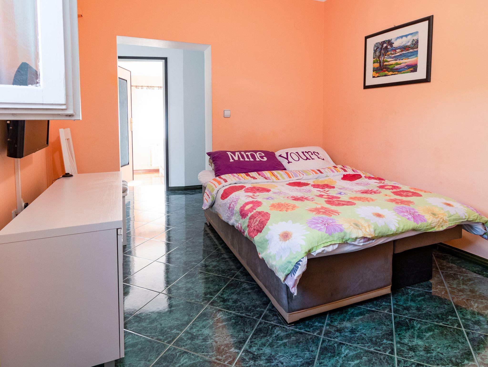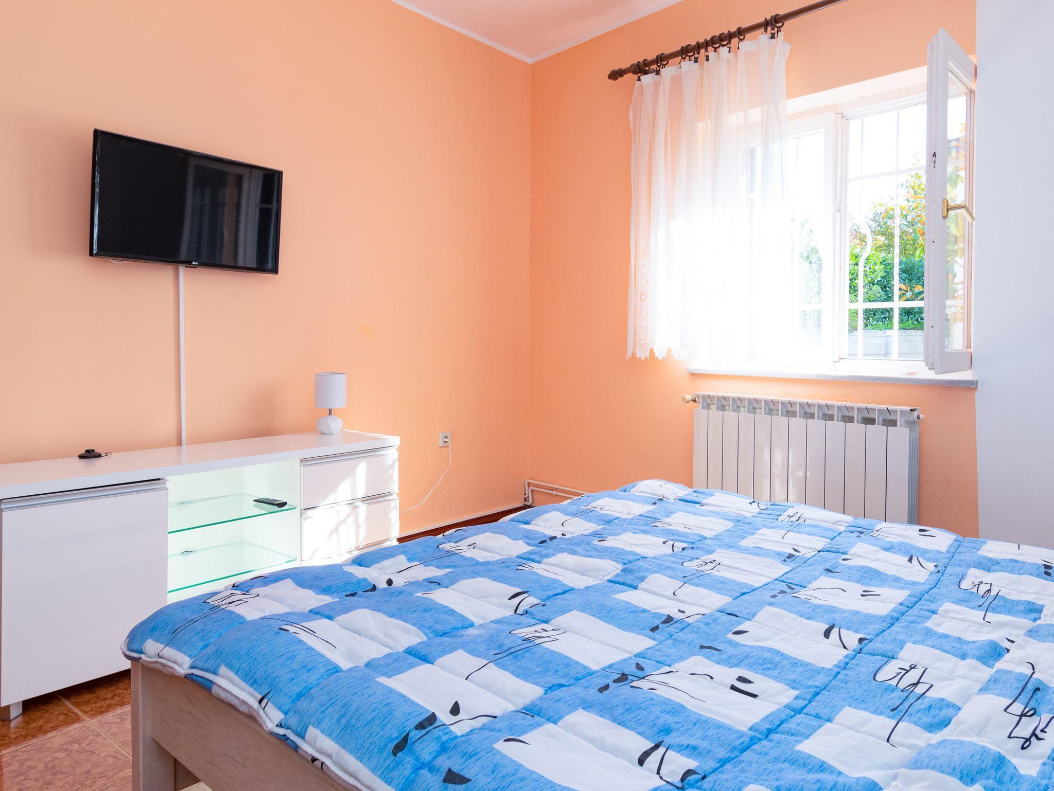 Ferienwohnung bietet Platz für 4 Gäste. Die Betten sind in Schlafzimmern, die es 1 gibt, und in Wohnzimmer, innerhalb einer Gesamtfläche von 46m2, angeordnet. Die Gäste haben eine eigene Terrasse zur Verfügung, auf der sie in warmen Sommernächten genießen können. Es ist erlaubt, Speisen auf dem Gemeinschafts-Grill vorzubereiten. Während ihres Aufenthalts können Gäste das gemeinsam zur Nutzung stehende Schwimmbad benutzen. In der Unterkunftseinheit besteht die Möglichkeit des Mitbringens von Haustieren gegen Aufpreis. Räume der gebuchten Unterkunftseinheit werden nicht in eine Ganze verbunden. IM PREIS INBEGRIFFEN: Kurtaxe, Endreinigung, Klimatisierung, Pool, Parkplatz, Internet, Bügeleisen, Bügelbrett, Föhn, Sonnenschirm, Liegestühle. VERBINDLICHE ZUSÄTZLICHE KOSTEN: Aufzahlung für Kurzaufenthalte (prozentualer Zuschlag pro Nächtigungsanzahl: 30% - 1, 20% - 2, 10% - 3). UNVERBINDLICHE ZUSÄTZLICHE KOSTEN: Haustiere (10,00 € pro Nacht), Fahrrad (20,00 € täglich (pro Stück)). Die Verfügbarkeit zusätzlicher Dienstleistungen in Ihrem reservierten Termin und die Preise derselben (falls nicht aufgeführt) müssen im Voraus überprüft werden. Zusätzliche Dienstleistungen die in der Zahlungsaufforderung nicht aufgeführt sind werden direkt beim Vermieter bezahlt, angenommen der Gast nutzt auch diese. Ermäßigung auf den Grundpreis: Gratistag 21=19 (bei einem Aufenthalt von 21 Tagen oder mehr erhalten Sie 2 Gratistage für den Aufenthalt bis 31.12.25), Aktion (erzielen Sie während der Buchung zusätzliche Ermäßigung von 10%).