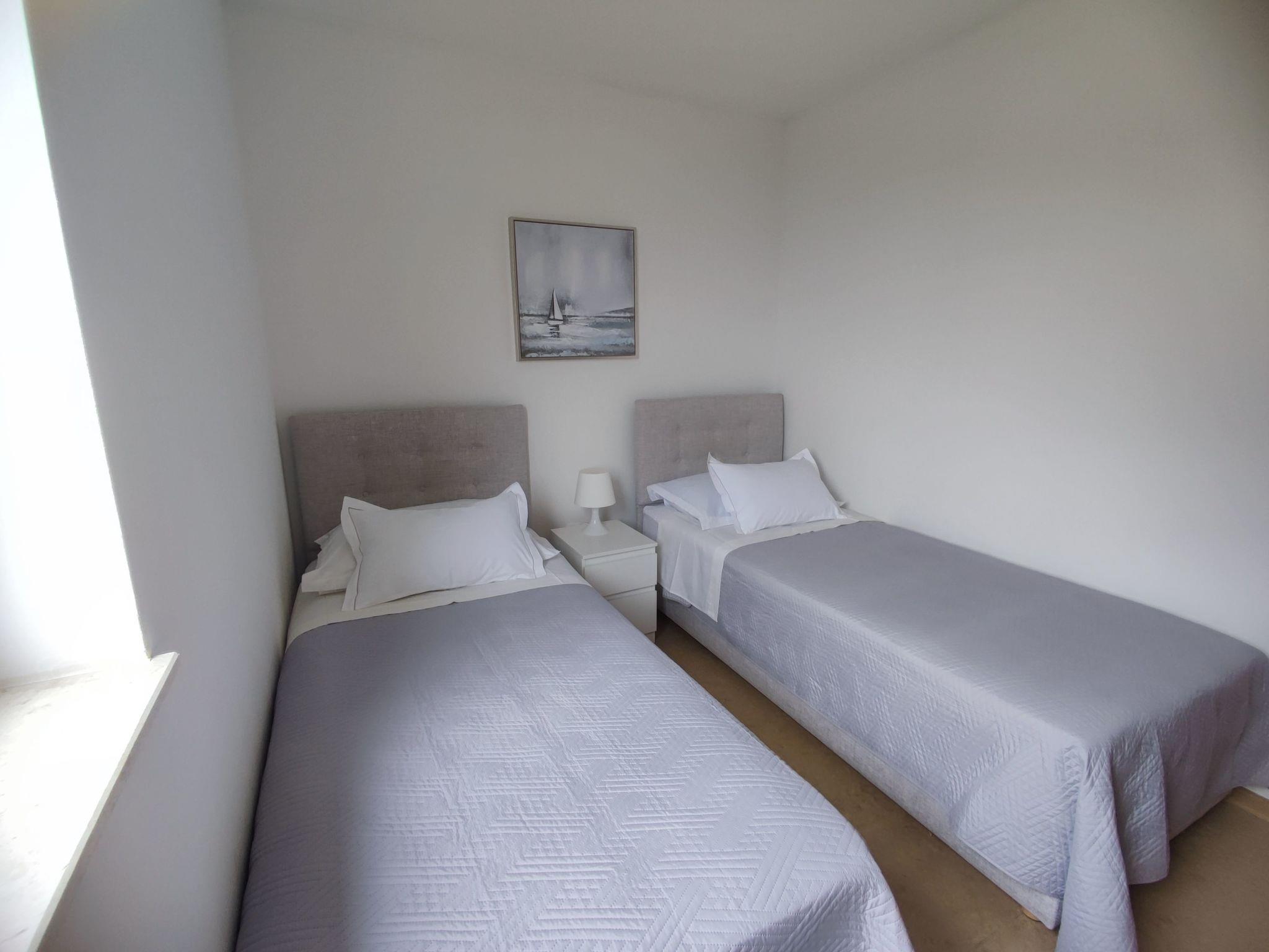Apartment D-2B is 45 m² in size and comprises of the following rooms: A living/dining room with sofa (double bed), flatscreen TV and dining table. There are two bedrooms in apartment. Master bedroom has king size double bed (160 cm wide) and second bedroom includes two separate single beds (90 cm wide). Apartment has its own kitchen with utensils, electric stove, microwave, coffee machine and dining area, as well as adjoining bathroom with a shower cabin and hair dryer. Apartment has air conditioner in living room and free wi-fi. Spacious terrace overlooking the pool area and the sea has table and set of chairs, plus an access to a shared outdoor swimming pool and sundeck. Parking is secured outside of facility.