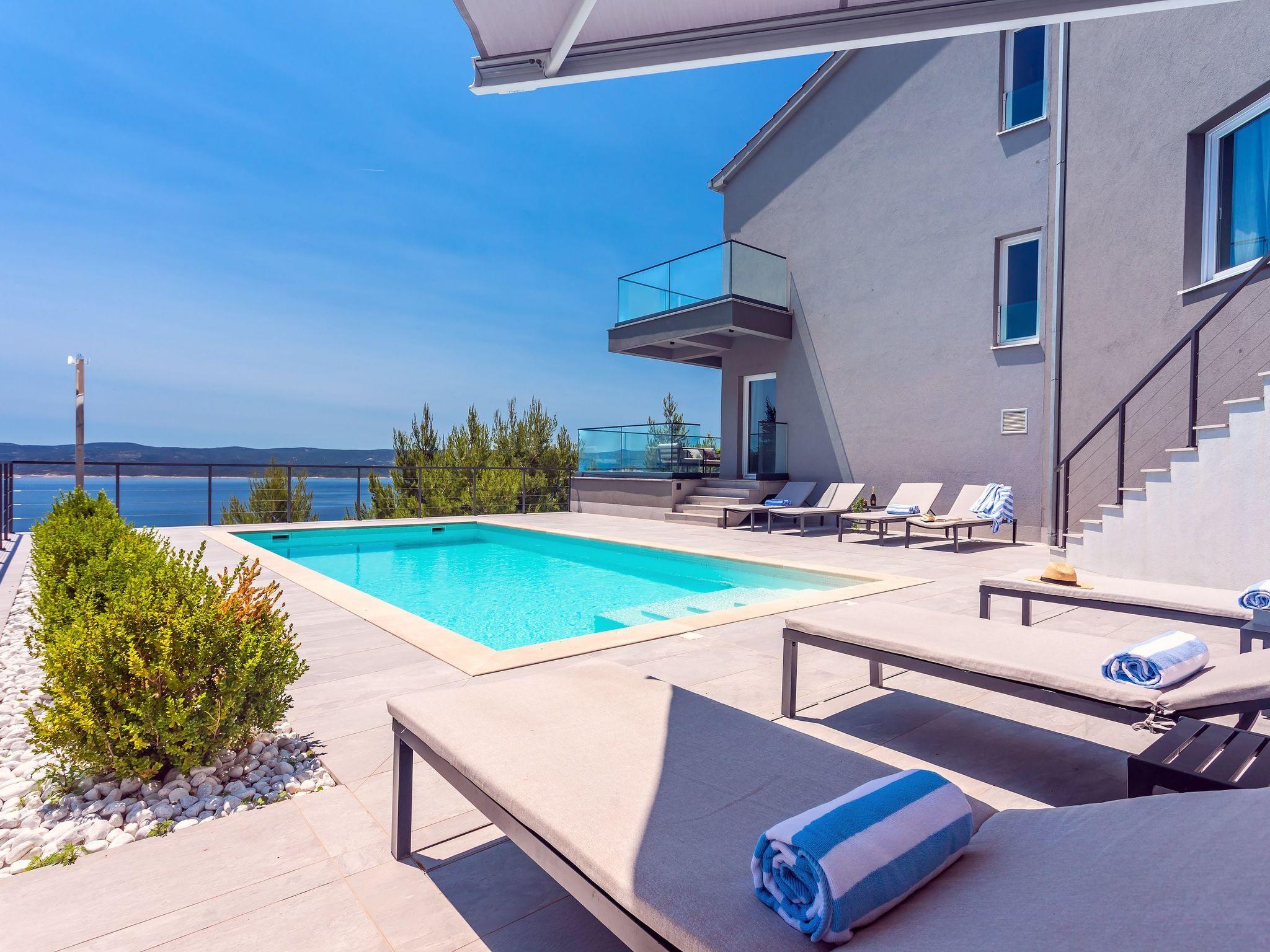 Villa IPONI is a newly built villa furnished with high quality and style, offering very comfortable accommodation for 8 people, fully air-conditioned with free Wi-Fi, with all of the required home appliances in the kitchen, spacious living room with sea views and a balcony, 4 bedrooms, each with en-suite bathroom, sauna and a gym, 2 electric bicycles, amazing views of the Adriatic Sea, mountains and island Brac from almost every corner.