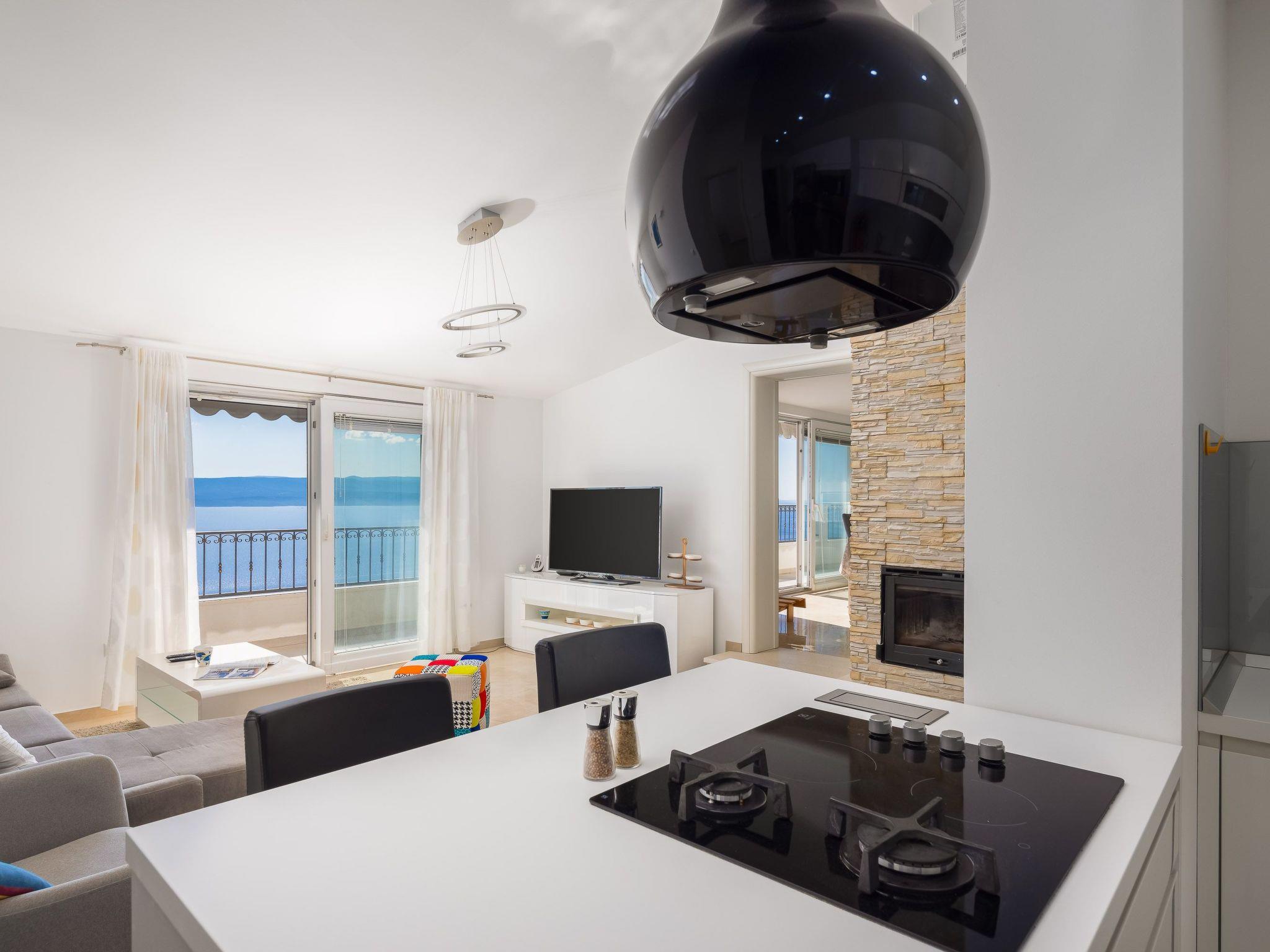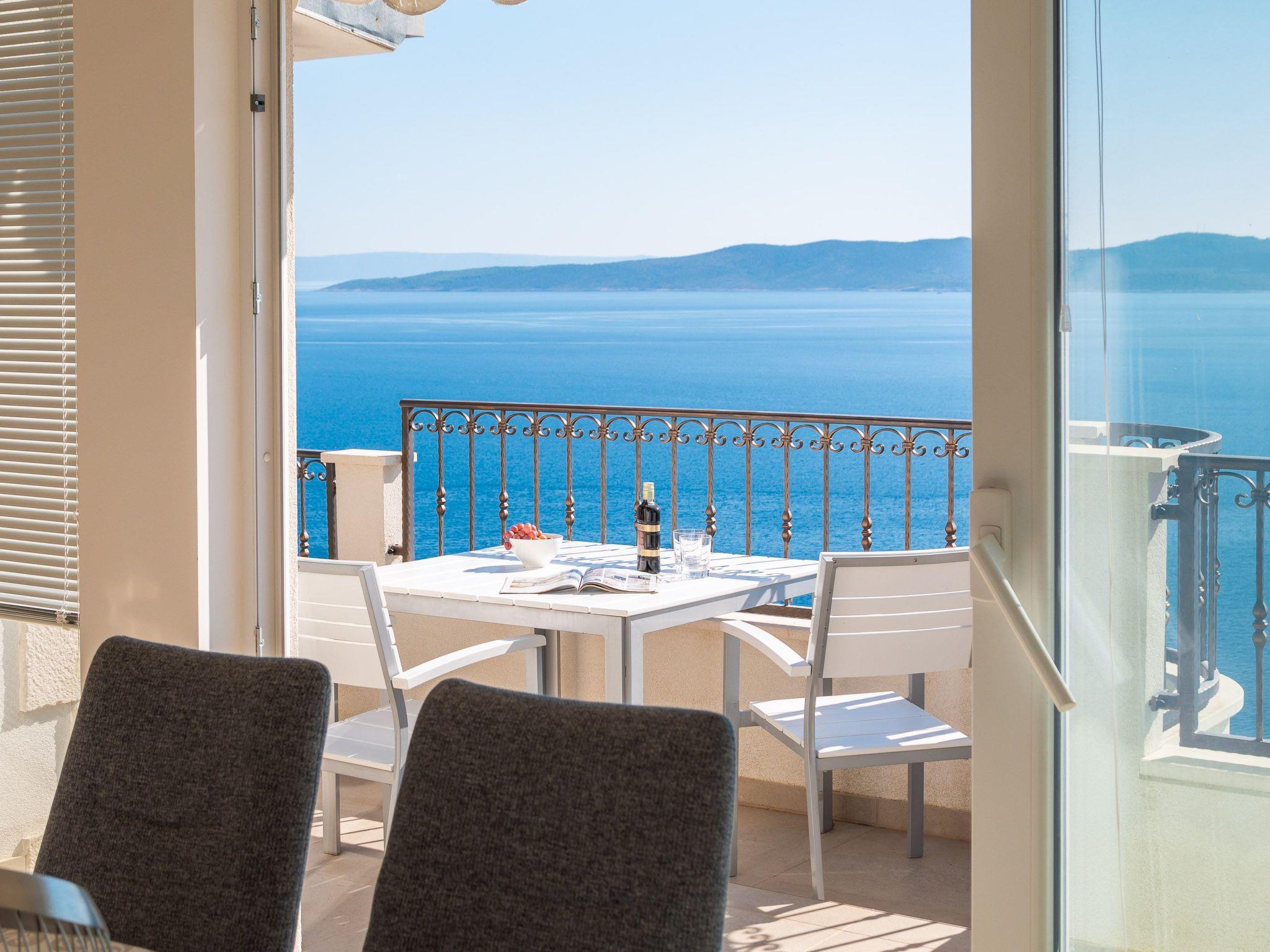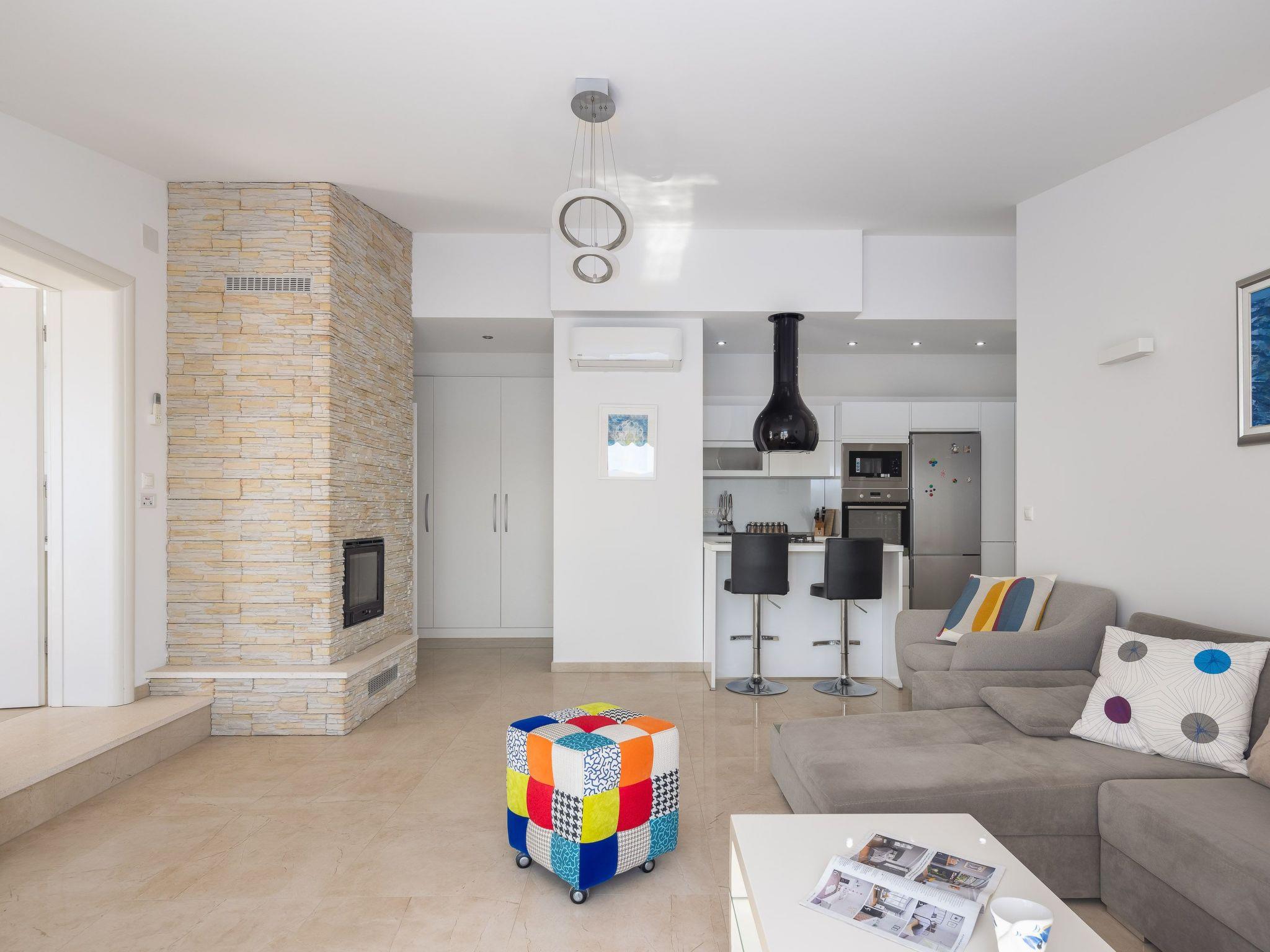The stairs go up to the third floor, where the fourth unit is located: a One Bedroom Apartment with a fully equipped kitchen, a separate air-conditioned dining room with a view of the sea. There is a bedroom with a double bed, a bathroom with a shower and a washing machine, a living room with air conditioning and an internal chimney. Along the entire apartment, a balcony with a splendid sea view.