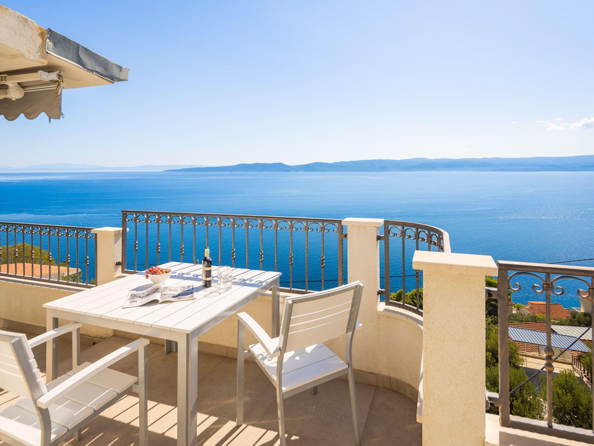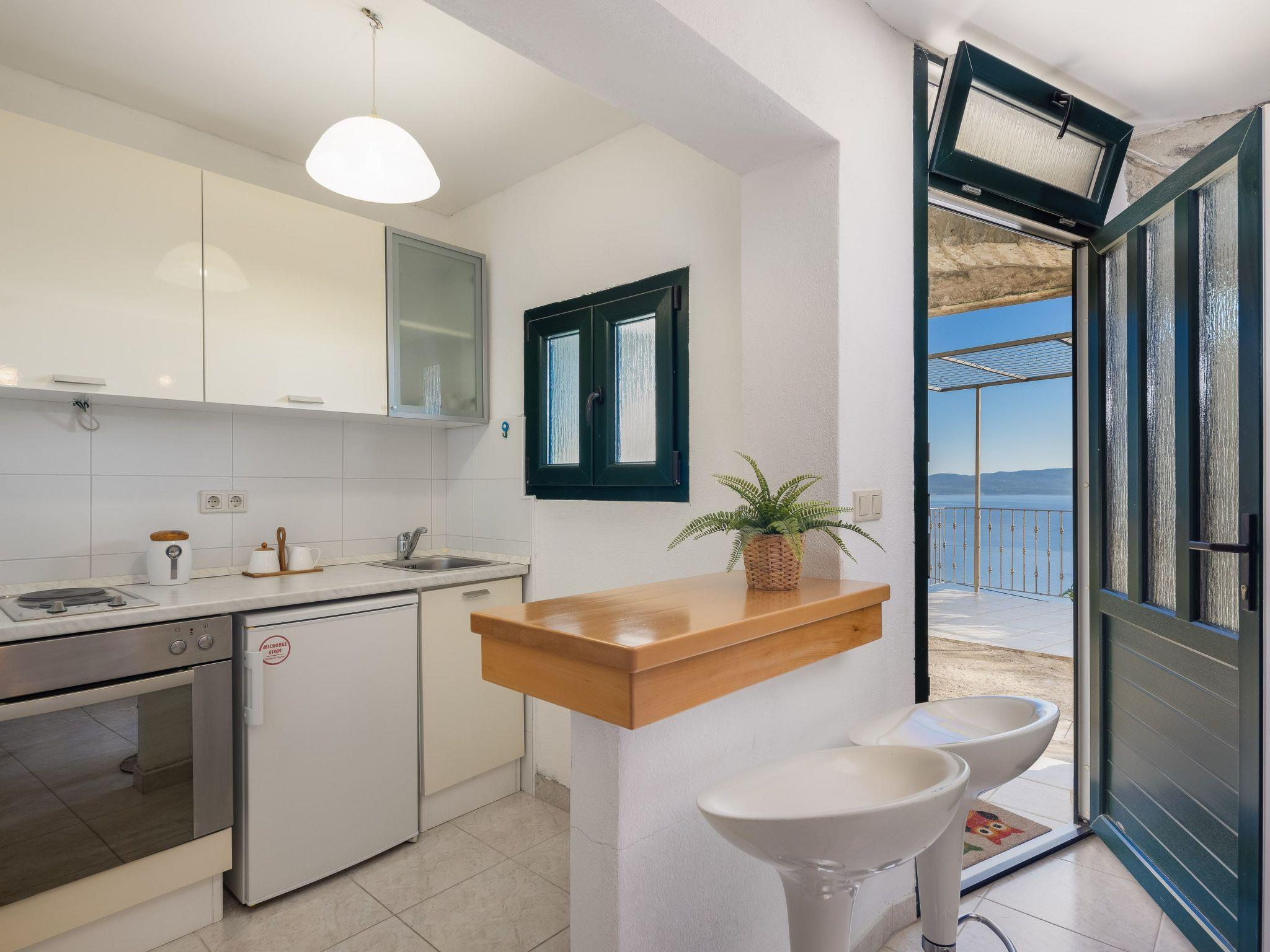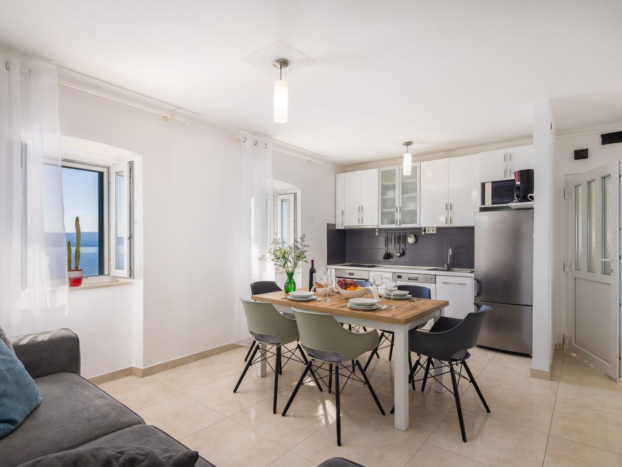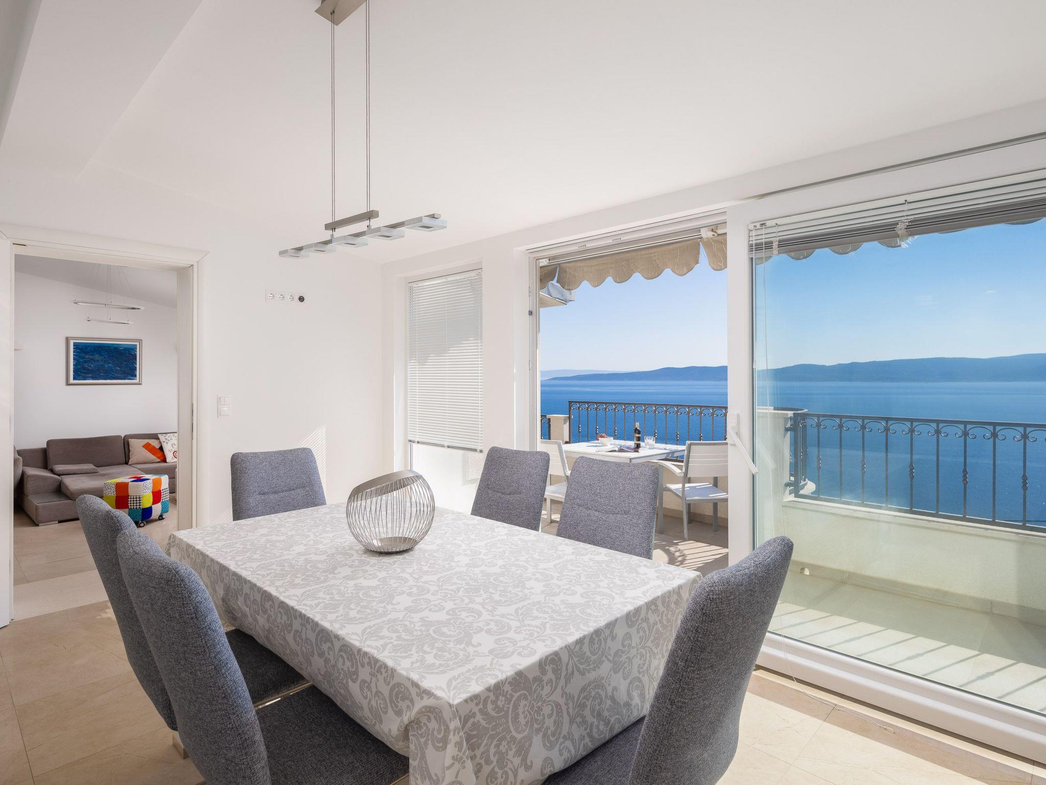 The stairs go up to the third floor, where the fourth unit is located: a One Bedroom Apartment with a fully equipped kitchen, a separate air-conditioned dining room with a view of the sea. There is a bedroom with a double bed, a bathroom with a shower and a washing machine, a living room with air conditioning and an internal chimney. Along the entire apartment, a balcony with a splendid sea view.