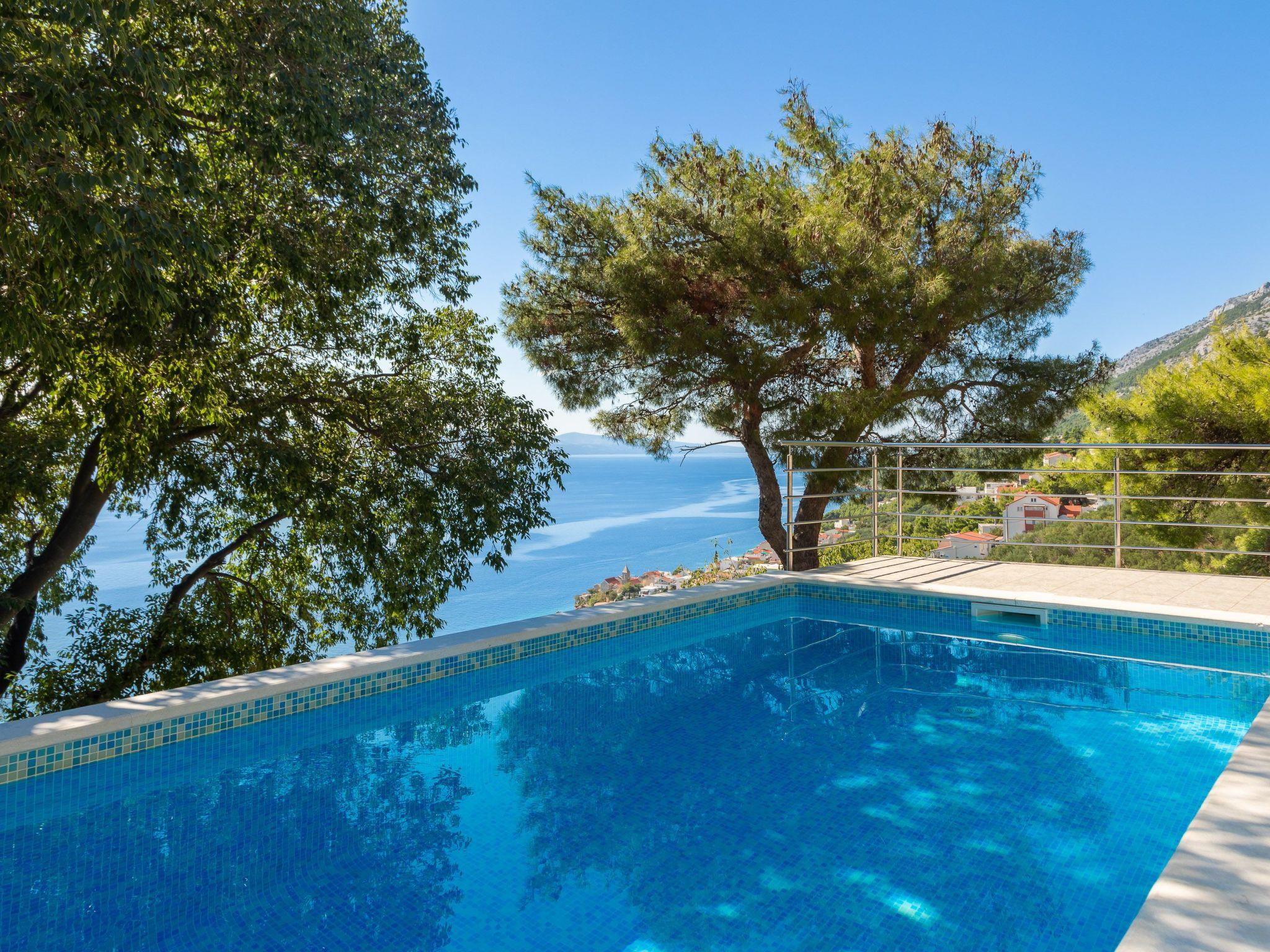 Property area of the villa: swimming pool, sunbathing area with BBQ & dining area.