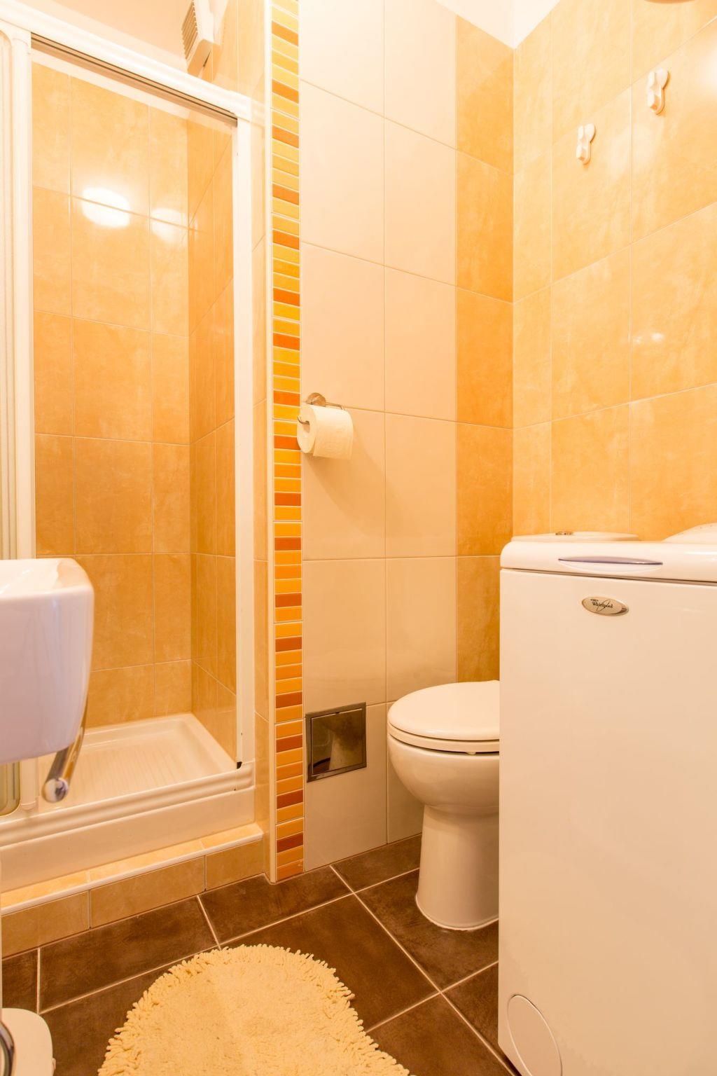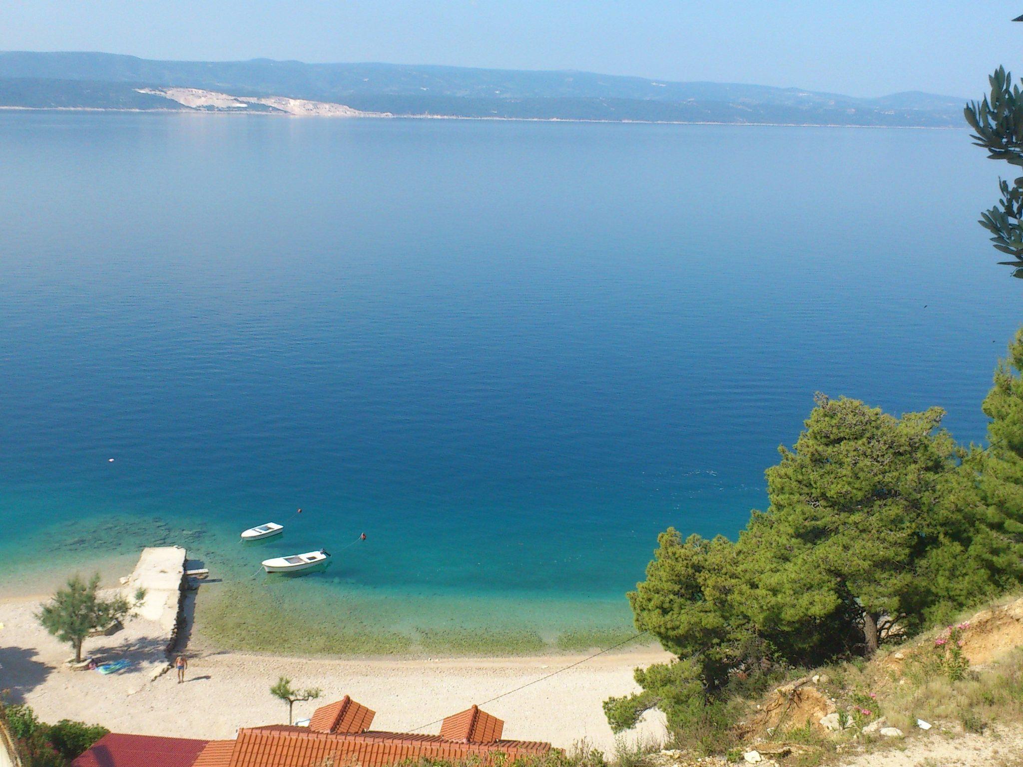 The upper bedroom and living room provide access to the terrace with garden furniture and an awning, affording a fantastic view of the Adriatic and the nearby island Brac. You can enjoy coffee here in the afternoon or grill in the evenings, as there is a brick-built outdoor grill on the terrace. The site is fenced and therefore also suitable for children. There are two private car parking spaces available.