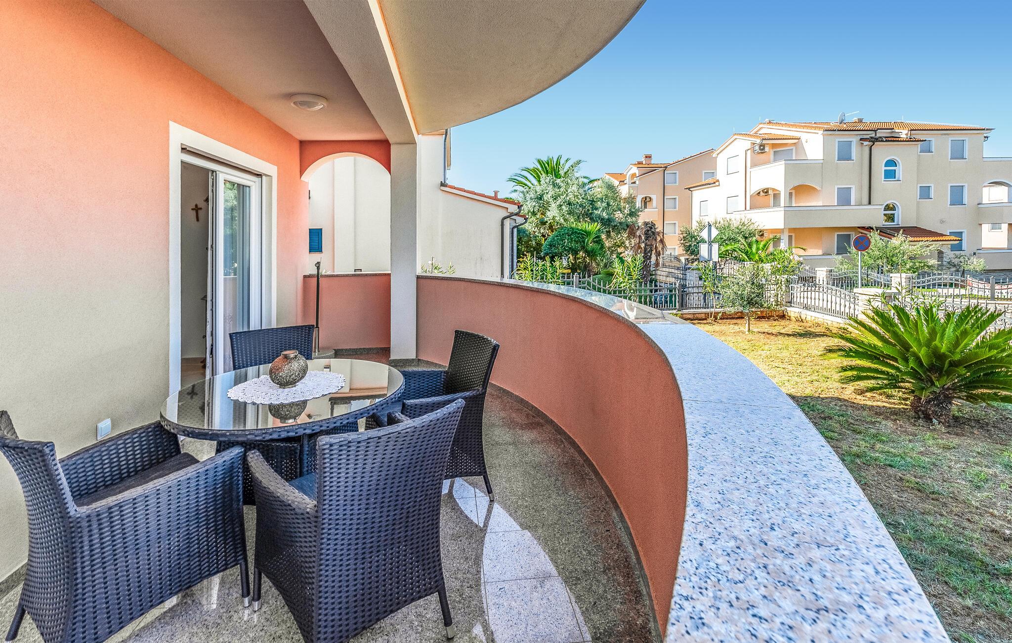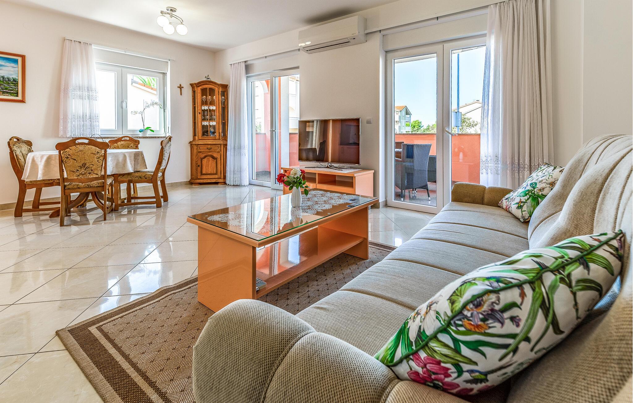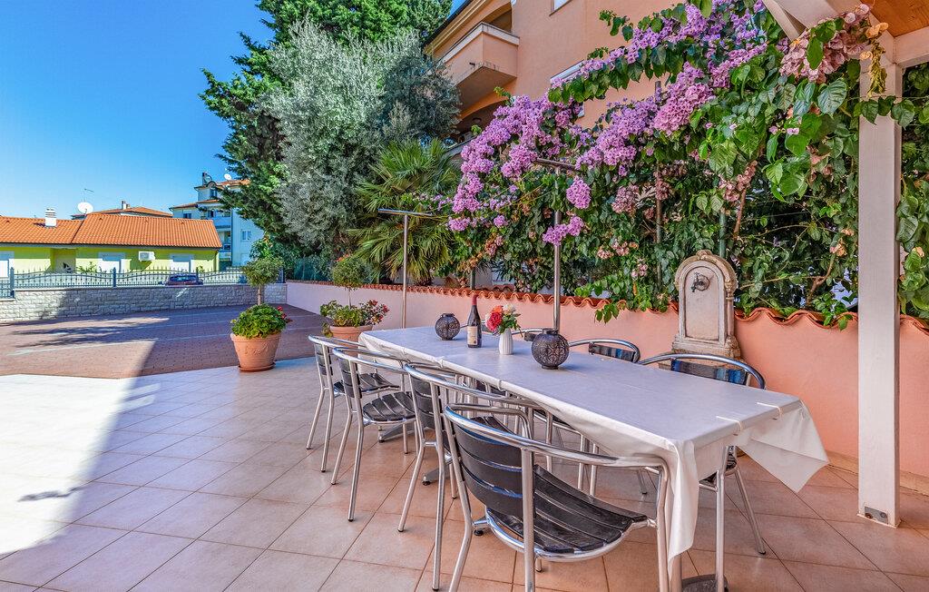 Nyd jeres ophold i denne venlige og komfortable ferielejlighed i Medulin. De lyse rum og den hyggelige indretning giver jer alt, hvad I behøver for en afslappet og bekymringsfri ferie. Den store lejlighed ligger i et hus med flere ferielejligheder, perfekt til en ferie, hvor I kan nyde både privatliv og samvær. Slap af på jeres private balkon, eller benyt fællesterrassen i haven til hyggelige grillaftener og samvær med de andre gæster.