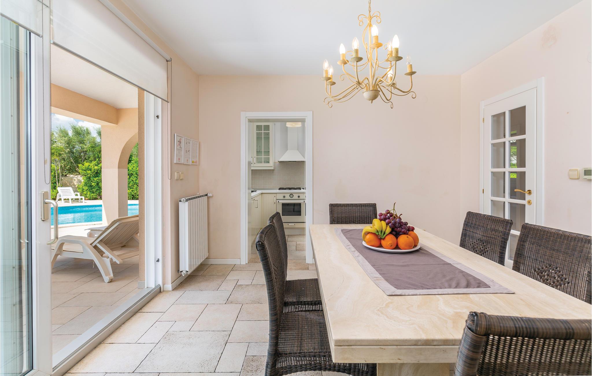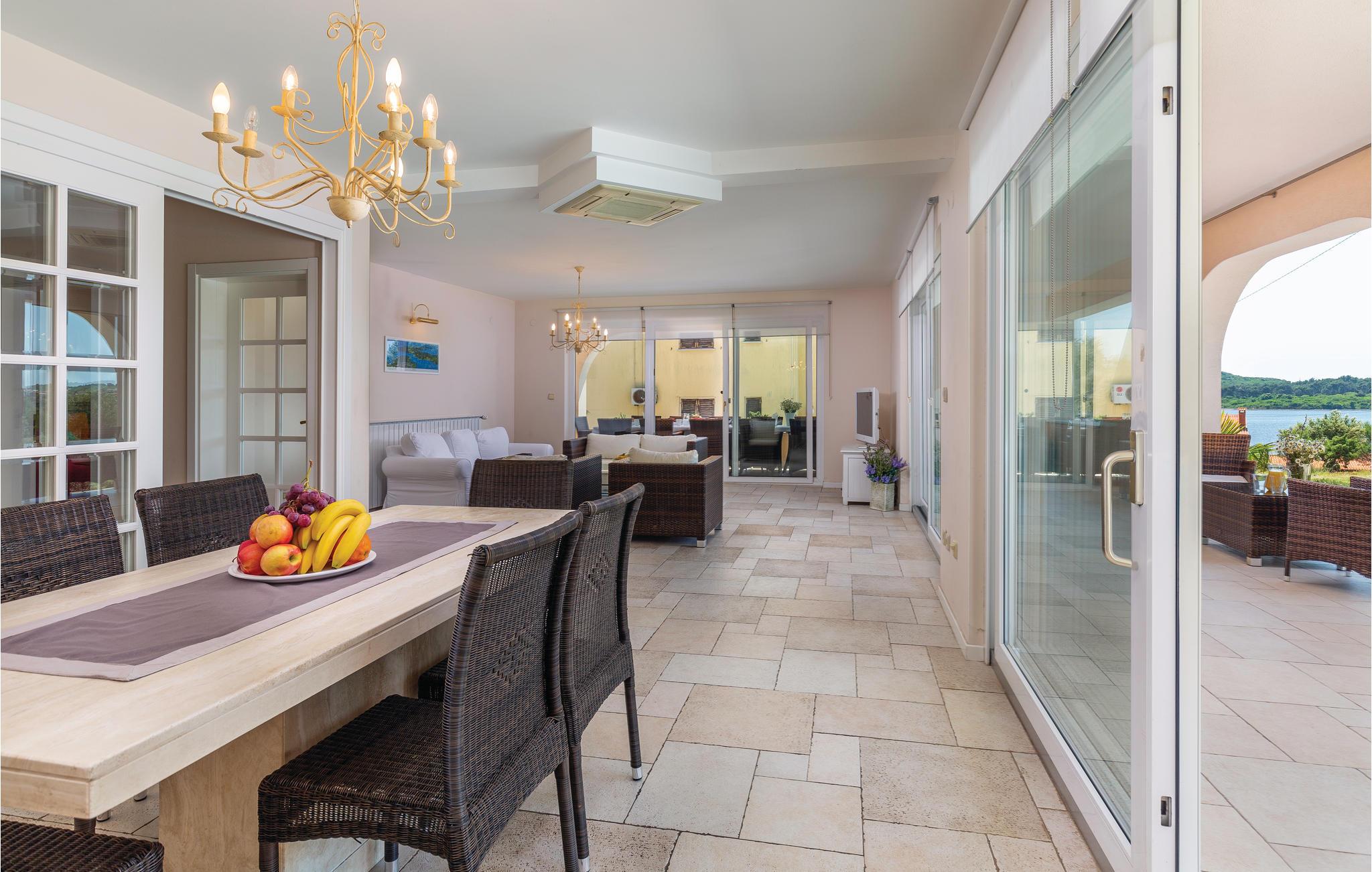 Dette moderne, rummelige og veludstyrede feriehus består af i alt 4 lejligheder. Hver lejlighed indeholder stue, spisestue og badeværelser samt et dejligt køkken. Alle rum er eksklusivt og moderne indrettet. I alle lejligheder findes der klimaanlæg, der sørger for en behagelig temperatur om sommeren. I spabadet til to kan I nyde en dejlig afslappende undervandsmassage. Lejlighederne er forbundet med hinanden, og kun lejligheden i kælderen har separat indgang. Den dejlige, store have, hvor der findes en udendørs swimmingpool, indbyder til ren afslapning. Den store dejlige swimmingpool er et lækkert sted at blive kølet af i løbet af dagen. På den overdækkede terrasse kan I hygge jer med at læse en bog og samtidig nyde den smukke udsigt over havet, som kun ligger et par hundrede meter væk. I haven findes også en grillpejs, hvor I kan tilberede forskellige istriske specialiteter. Hele grunden er lukket, så I kan sidde uforstyrret. I den lille fiskerleje Pomer finder I indkøbsmuligheder, restauranter og dejlige strande. Huset ligger kun 15-20 minutters kørsel fra Premantura. Her ligger en naturpark med mange skønne laguner med kiselstenstrande. Den gamle bydel i Pula, der ligger 8 km væk kan nås indenfor 15 minutters kørsel. Byen Pula er kendt for den romerske arkitektur som f. eks Pula Amfiteater og mange andre historiske bygninger. Tag til Pula og oplev seværdighederne og de kulinariske oplevelser som byen har at tilbyde. Prøv evt. nogle specialiteter på en af restauranterne i Pula.