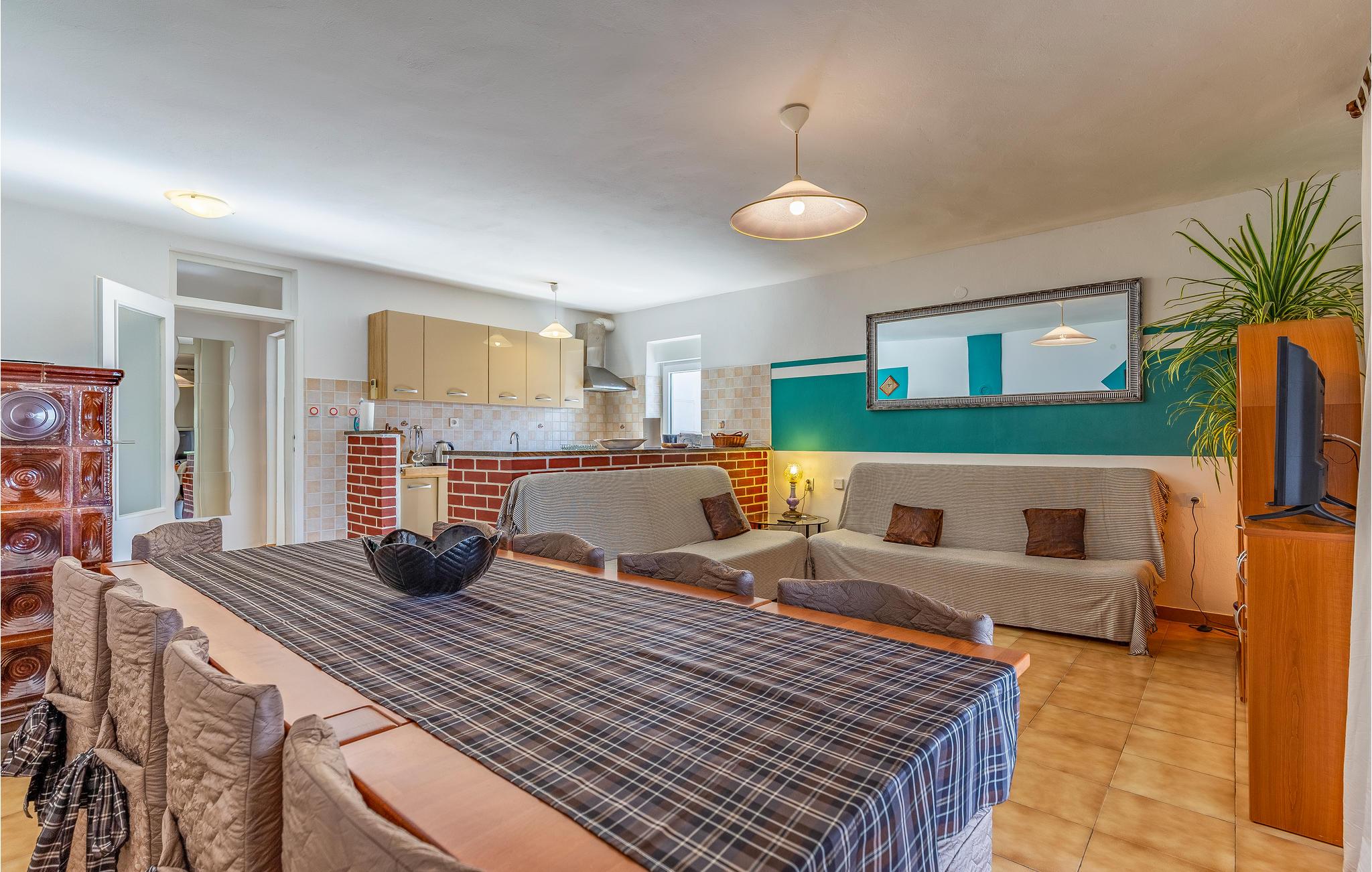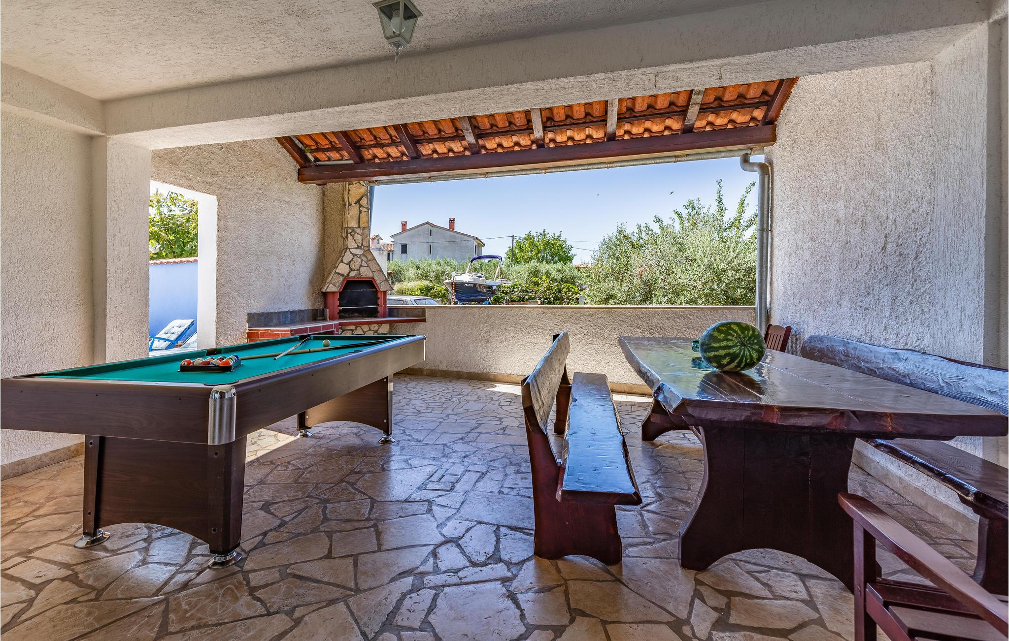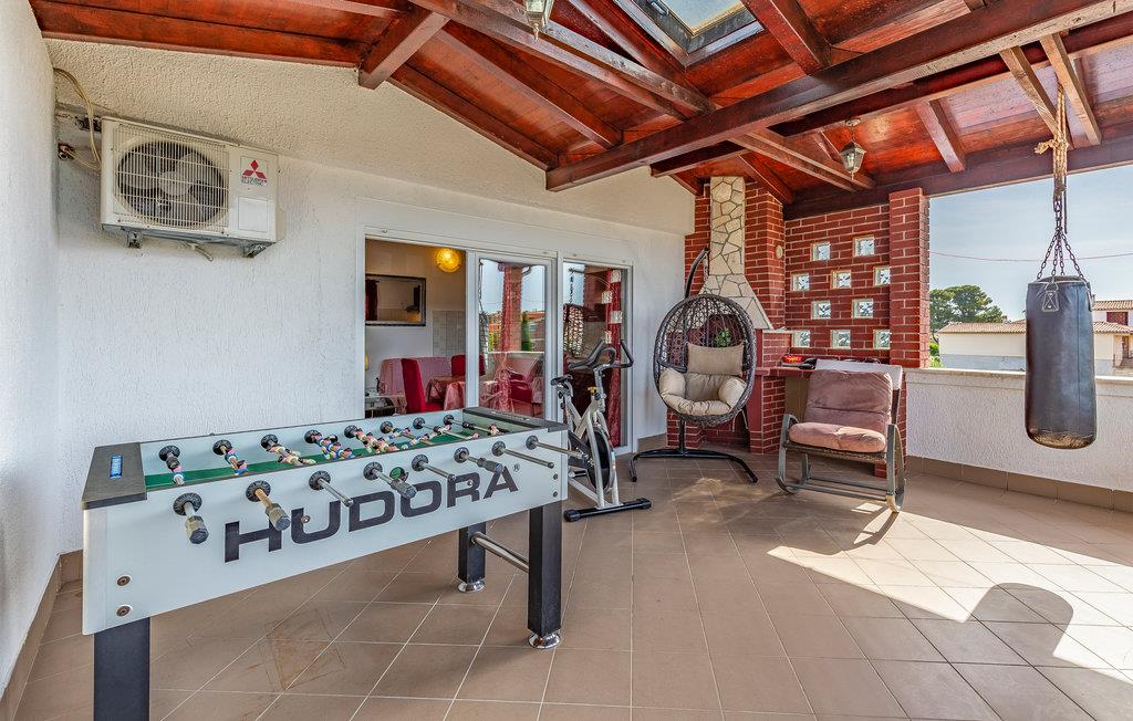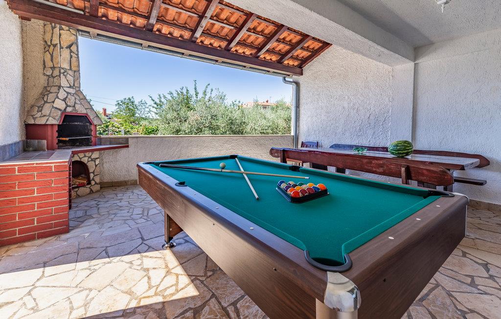 I Pomer, tæt på Medulin, venter dette store feriehus med pool på et større selskab eller flere familier. Det består af tre etager med indertrapper. Hver etage har eget, fuldt udstyret køkken, spisestue og dagligstue med udgang til terrassen. I kan more jer med bordfodbold eller billard på terrassen på anden sal, mens I nyder udsigten til havet og bugten af Pomer. Besøg de lokale restauranter eller Medulin i nærheden, hvor der er mange fritidsmuligheder. Laveste loftshøjde på øverste etage er 160 cm.