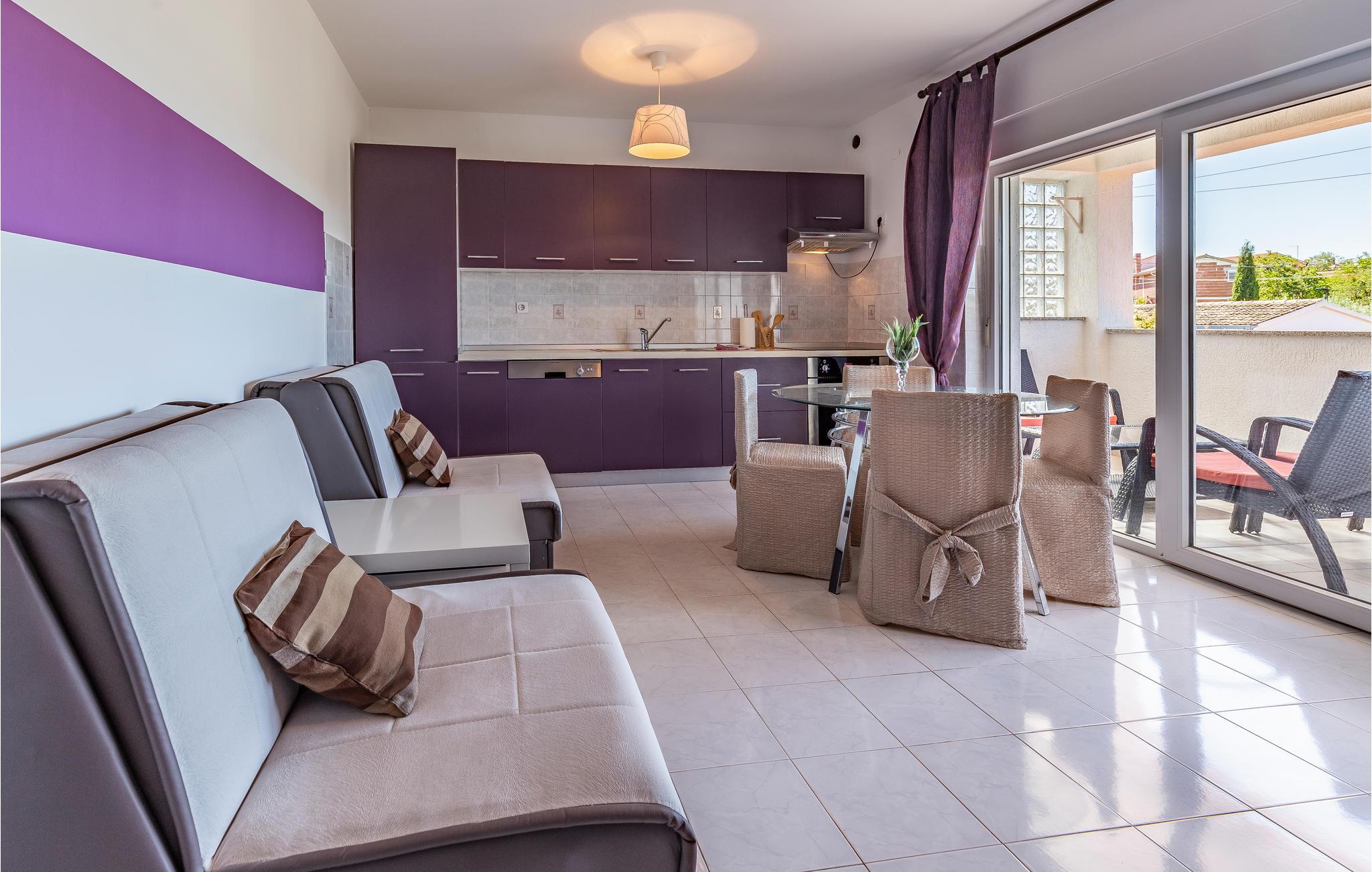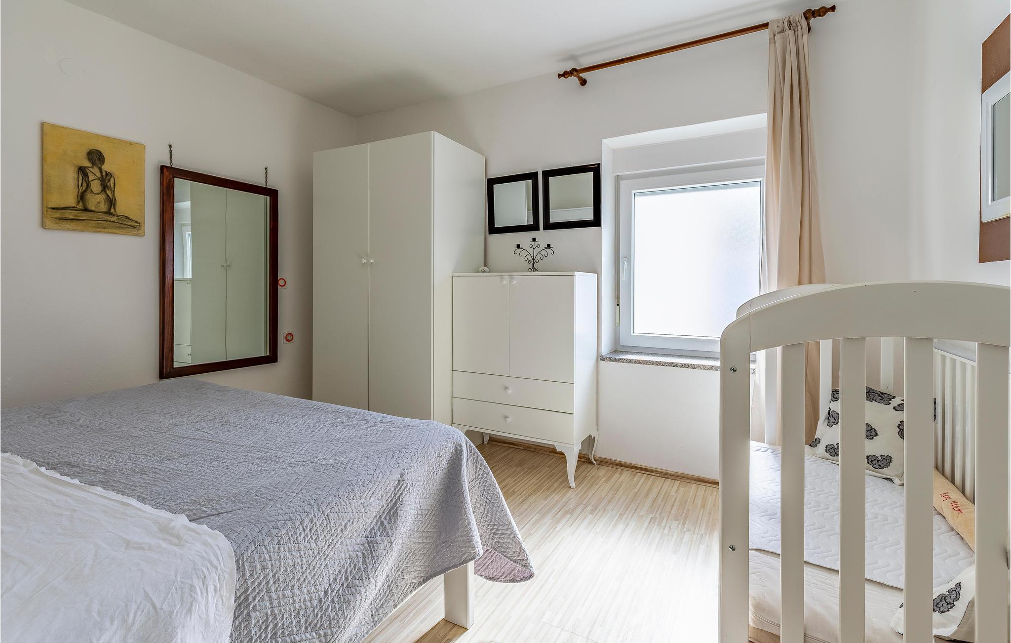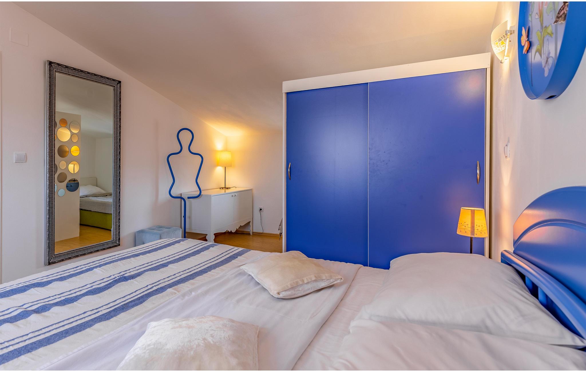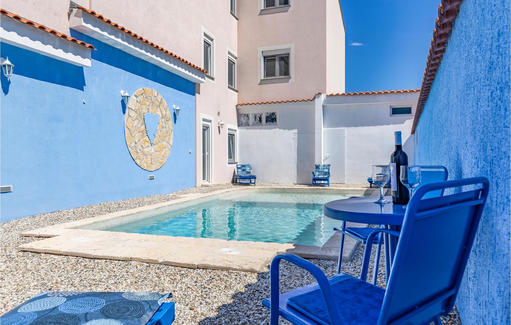 I Pomer, tæt på Medulin, venter dette store feriehus med pool på et større selskab eller flere familier. Det består af tre etager med indertrapper. Hver etage har eget, fuldt udstyret køkken, spisestue og dagligstue med udgang til terrassen. I kan more jer med bordfodbold eller billard på terrassen på anden sal, mens I nyder udsigten til havet og bugten af Pomer. Besøg de lokale restauranter eller Medulin i nærheden, hvor der er mange fritidsmuligheder. Laveste loftshøjde på øverste etage er 160 cm.