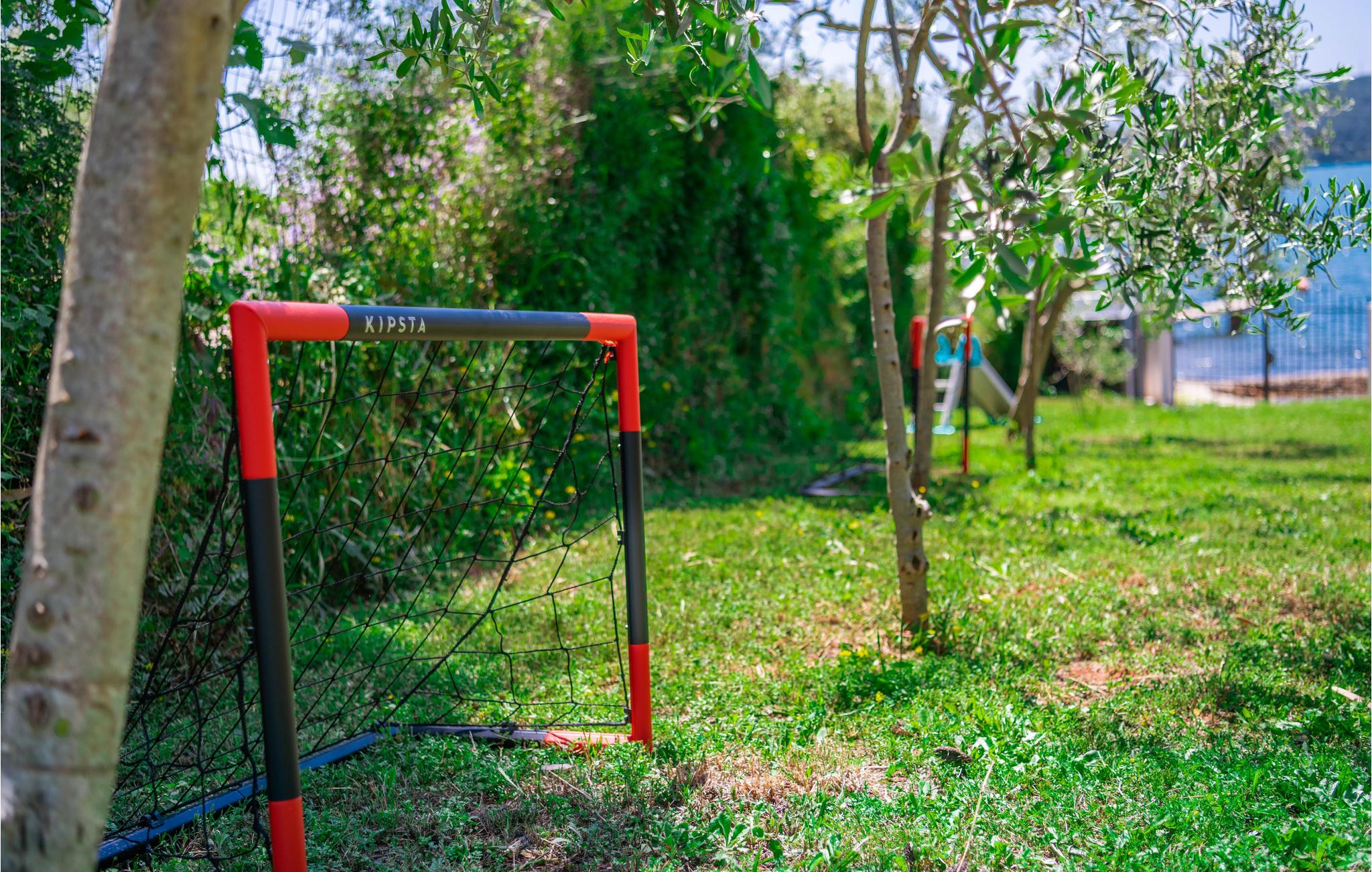 Slap af ved den private pool, der tilbyder nedkøling på varme dage. Der er masser af plads til at lege på den store ejendom ved vandet med bl.a. fodboldmål og badmintonketcher.