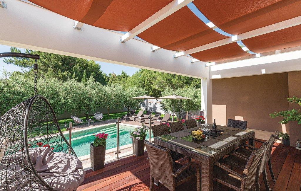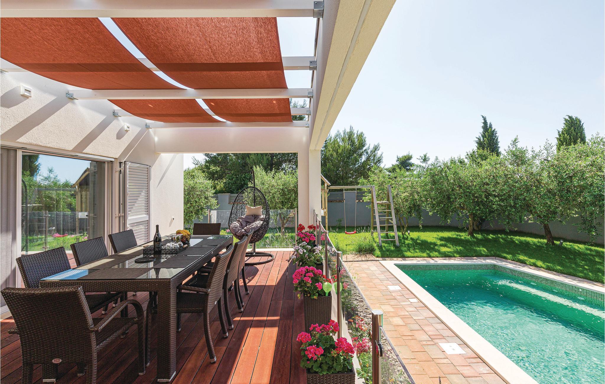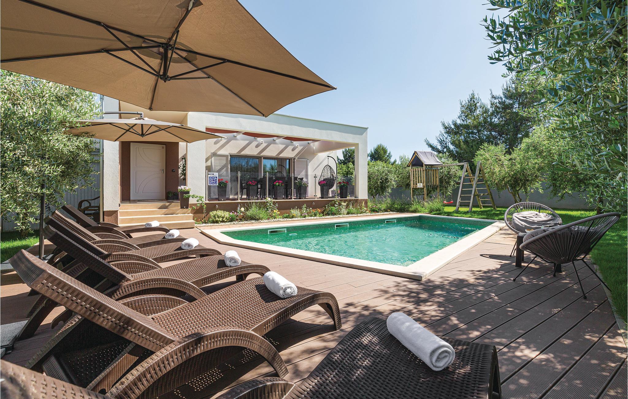 Vidunderligt feriehus med privat pool i skønne naturomgivelser, i nærheden af den populære feriemetropol Medulin. Ud over det stilfuldt og komfortabelt indrettede indre, kan I glæde jer til at slappe af udendørs på plænen og i jeres egen private pool. I underetagen er der en rummelig konoba, med køkken og kamin, bord og stole. I både Medulin og byens opland er der utallige muligheder for aktiviteter og underholdning. Derfor besøges byen ofte af professionelle sportsfolk der træner i fodbold, beachvolley, rider, spiller tennis eller dyrker utallige former for vandsport. Den lange kyst og de mange småøer, er ideelle, hvis I vil finde jeres helt egen yndlingsstrand. Om aftenen kan I vælge mellem et stort udvalg af barer, restauranter og taverner, men også klubber og mange former for musikalsk og anden aftenunderholdning.