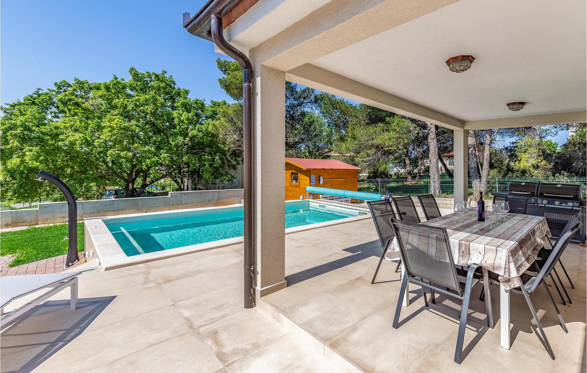 Det lyse feriehus er moderne, komfortabelt indrettet og fuld af hyggekroge. Det imponerer især med sit flotte udendørsområde. I kommer til at tilbringe mange skønne timer ved- og i den private pool, mens I bager under den istriske sol. Slap af på en af ??de komfortable liggestole, mens børnene plasker rundt i poolen. På den store terrasse kan I nyde jeres feriemåltider sammen og afslutte dagen med et godt glas vin.