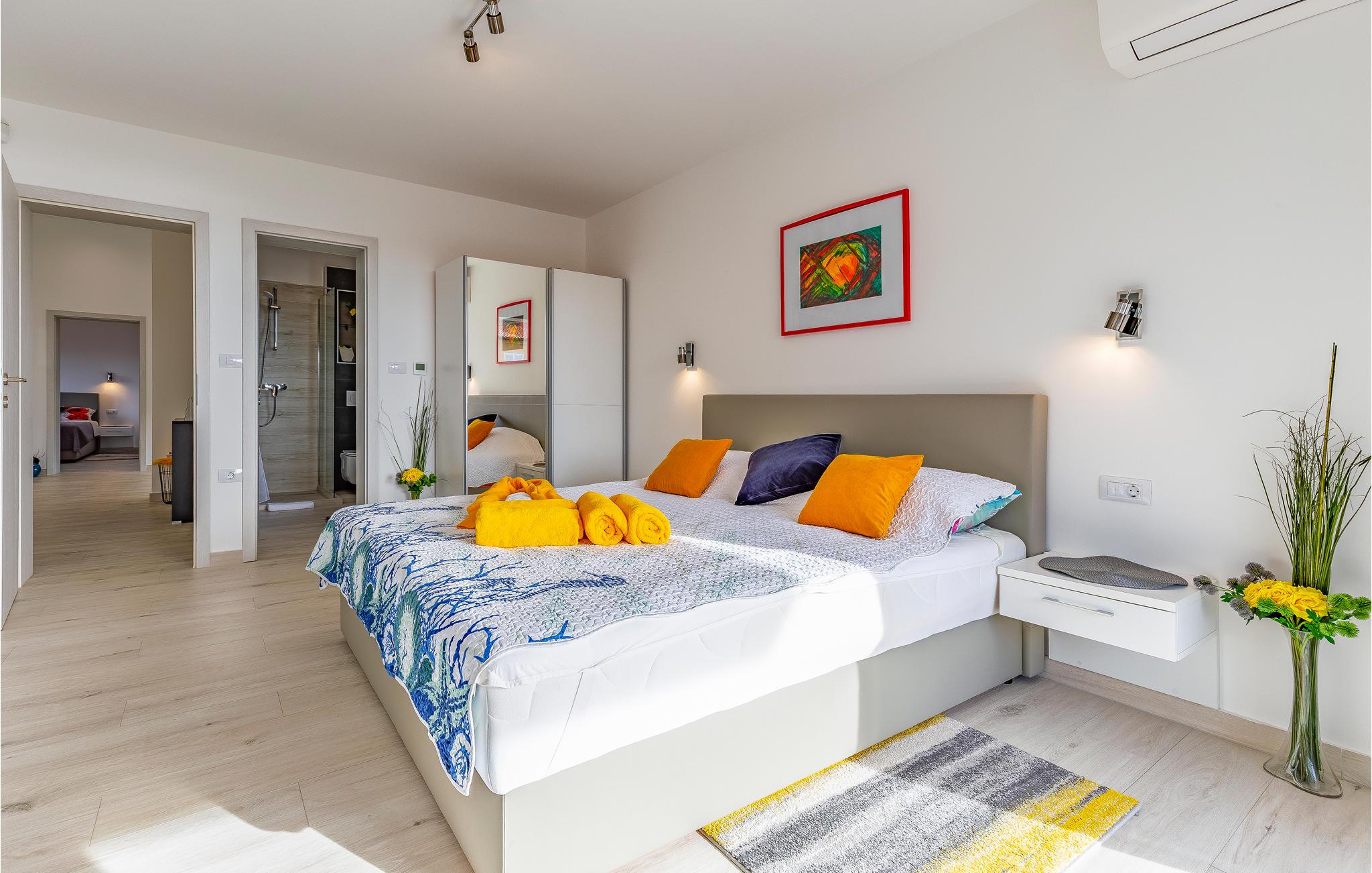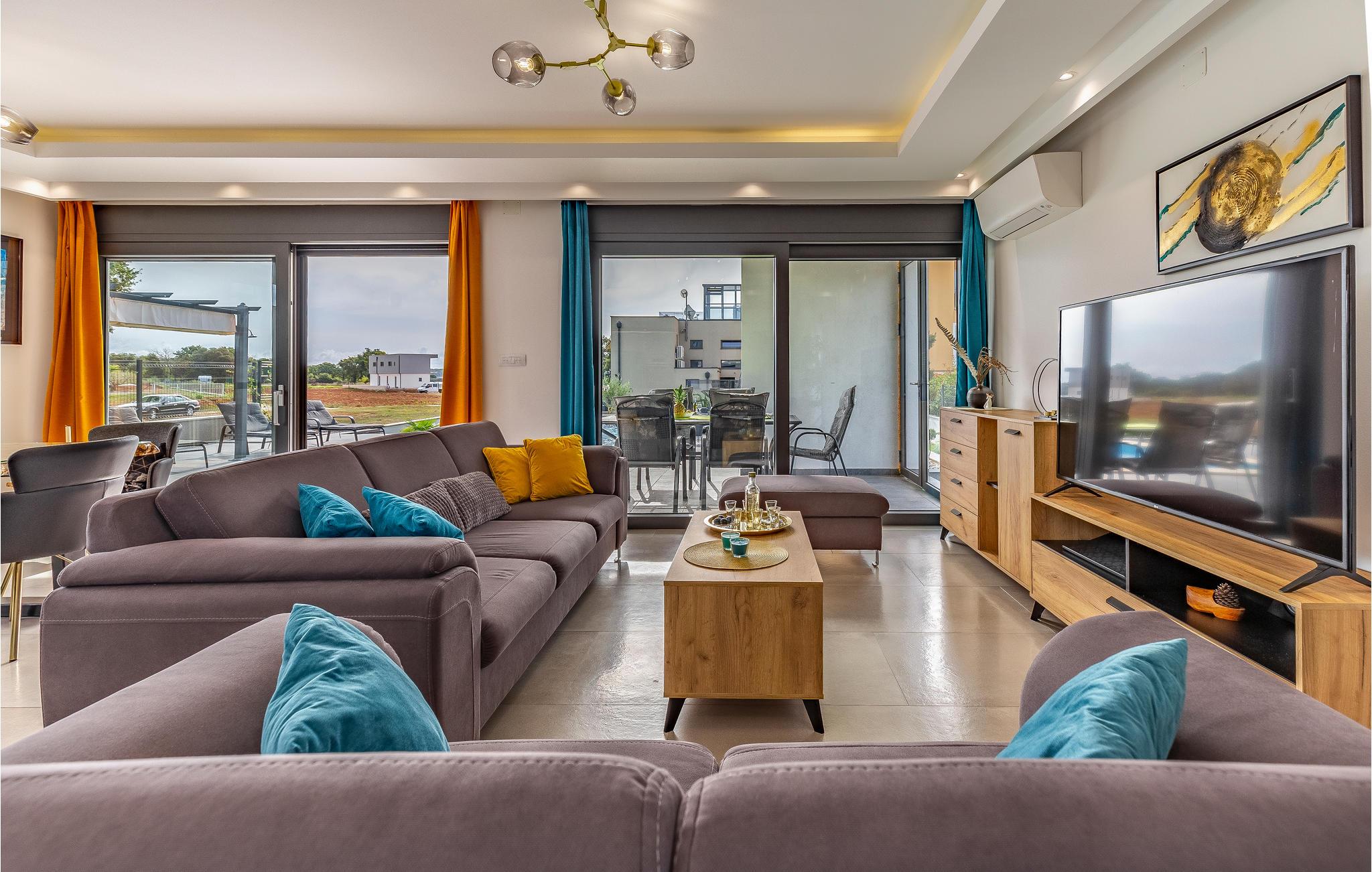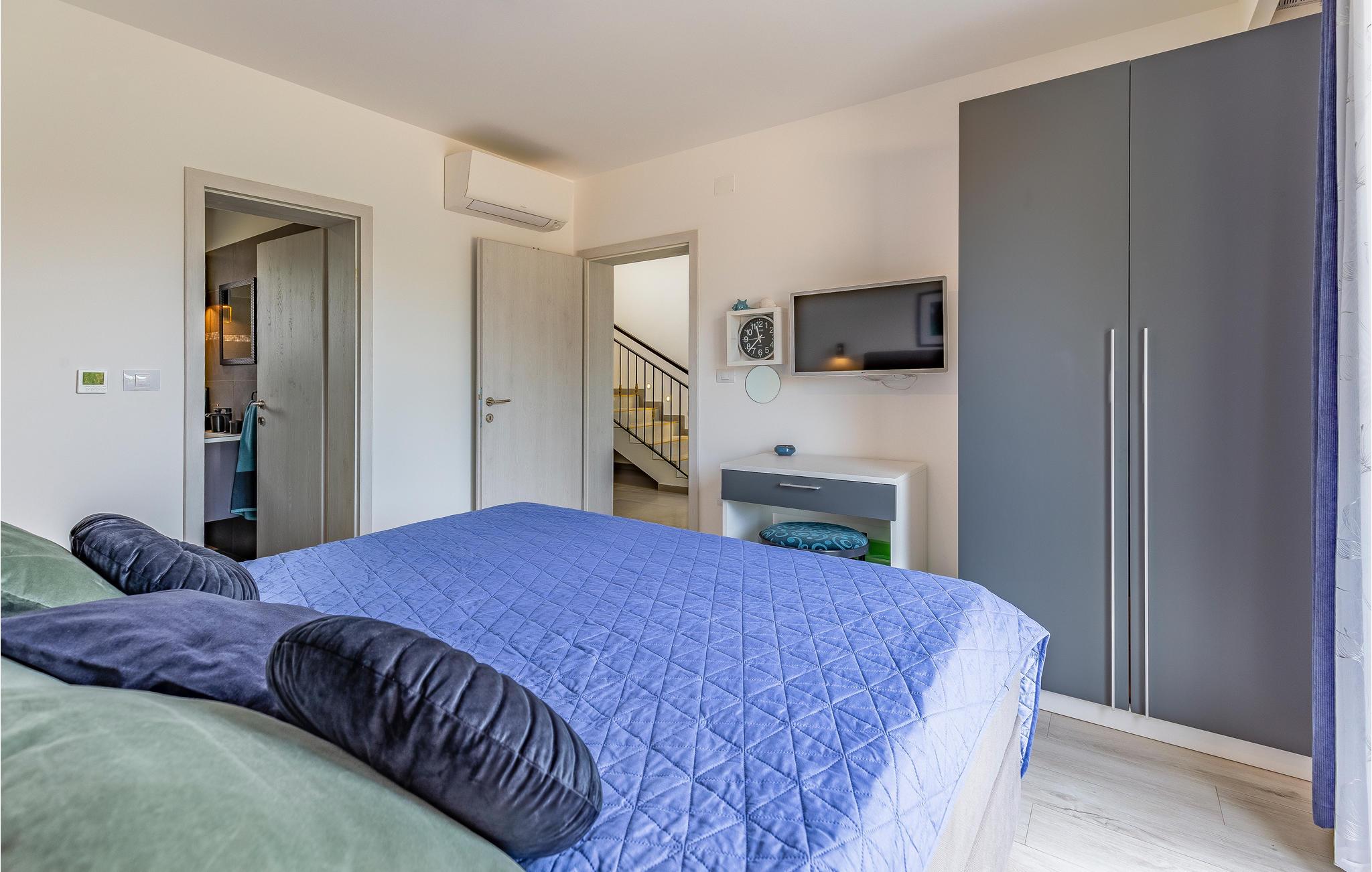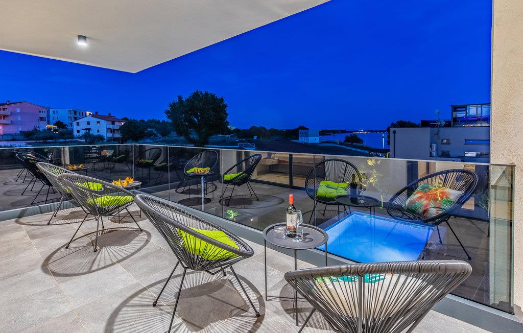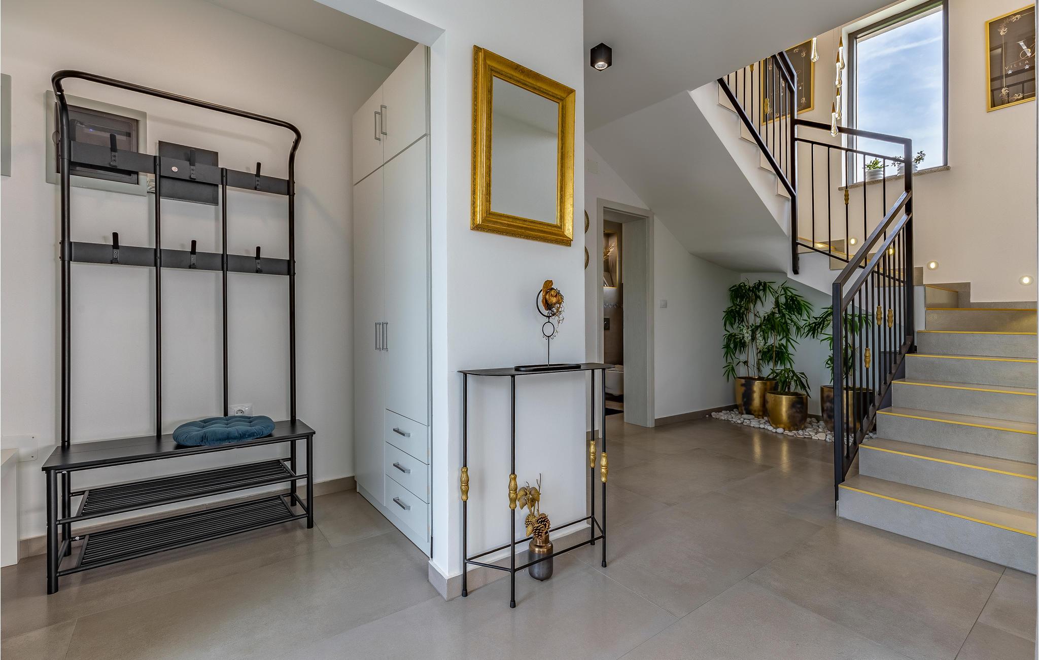 Udearealet omfatter en meget flot overdækket terrasse med solterrasse. Derudover fører en udvendig trappe langs den rummelige altan på 1. sal op til tagterrassen. Herfra kan I nyde en fantastisk udsigt til bugten Pomer og Medulin. jeres børn vil finde en græsplæne at lege i haven, men I vil helt sikkert tilbringe mange timer i vandet i den store pool. Et andet højdepunkt er udekøkkenet, hvor I kan lave mad og grille efter hjertens lyst og spise jeres måltider under åben himmel.