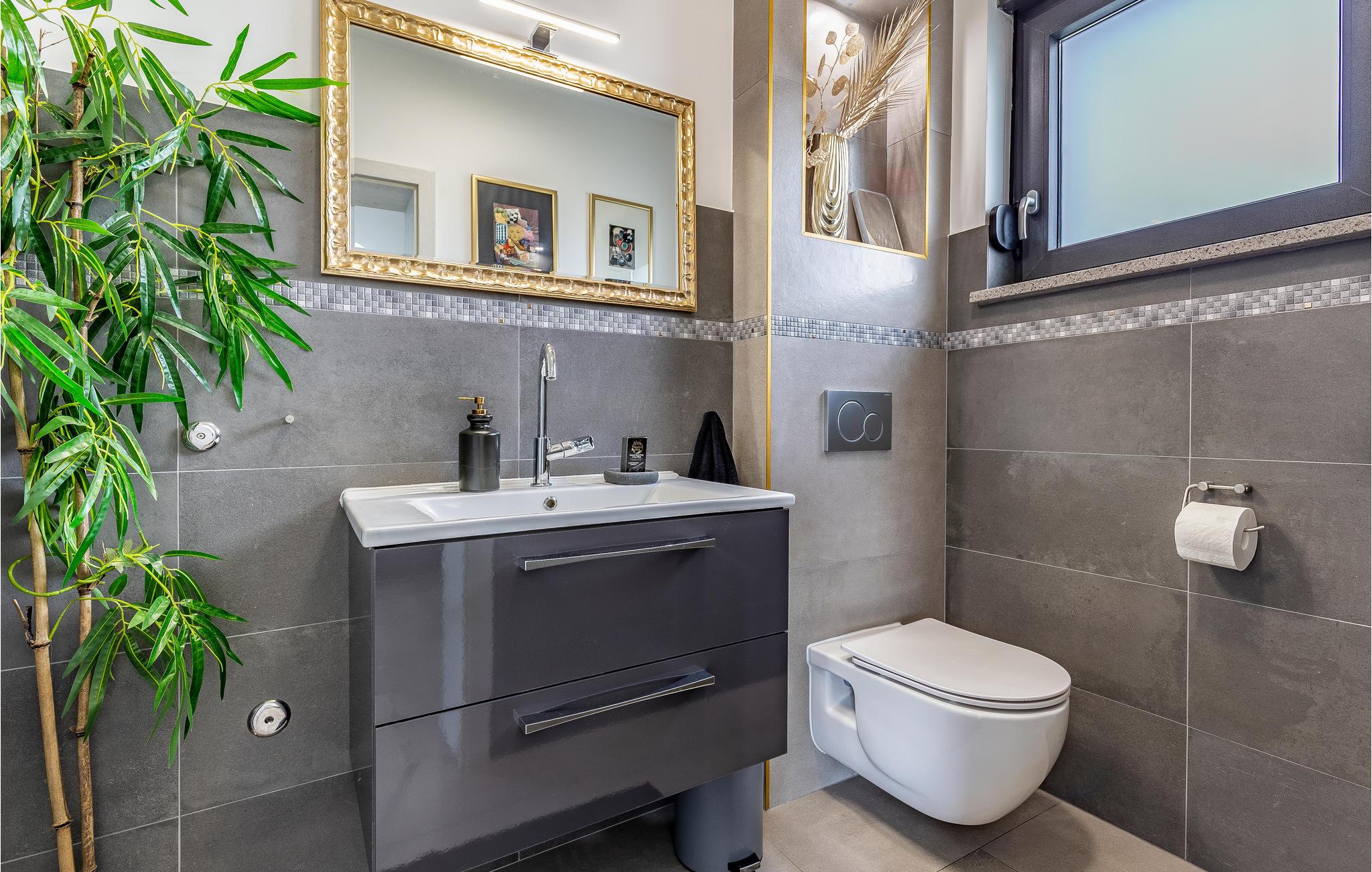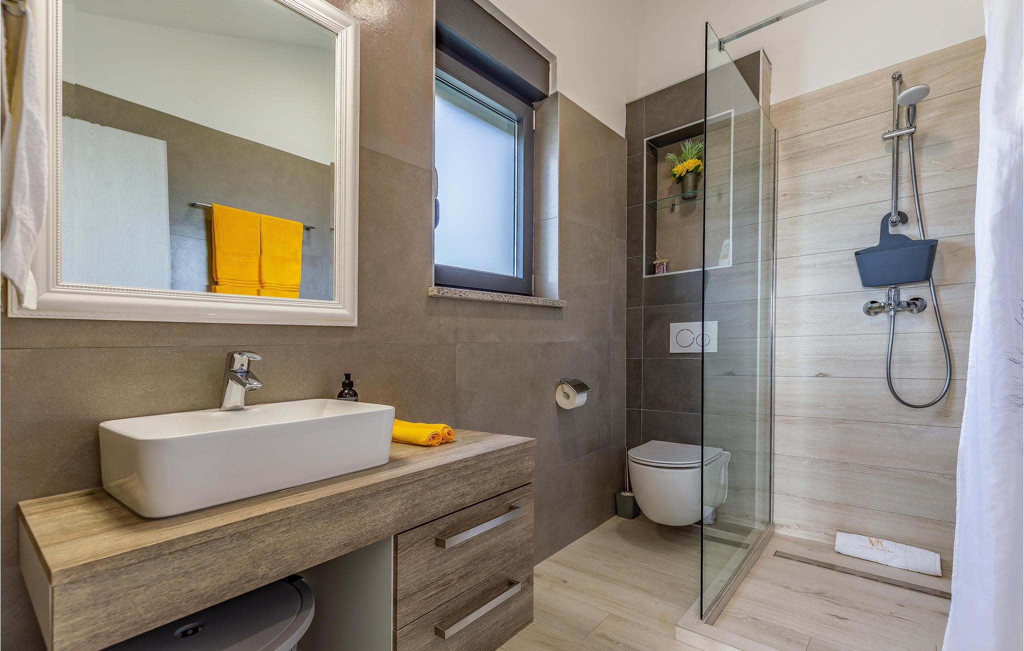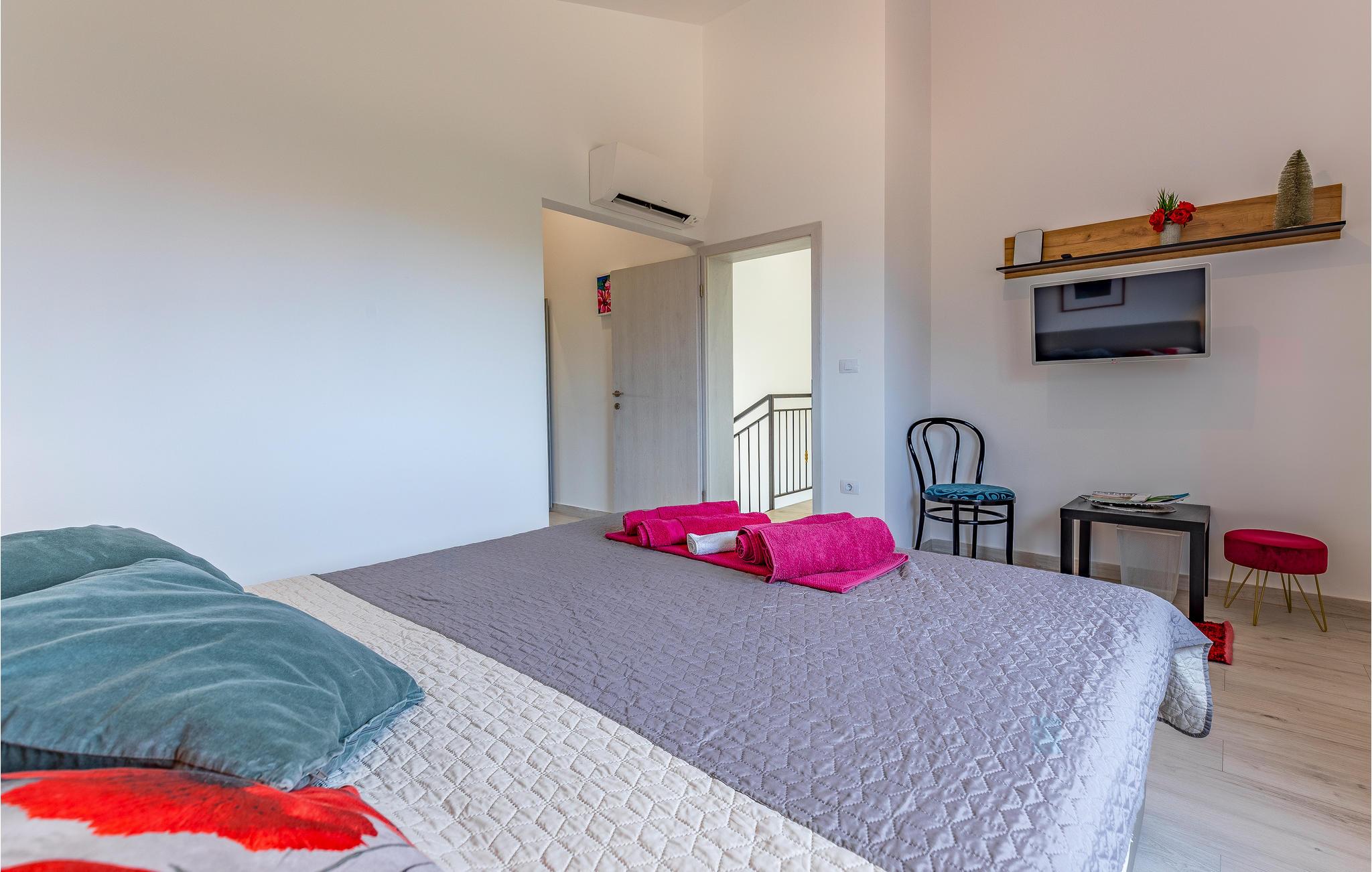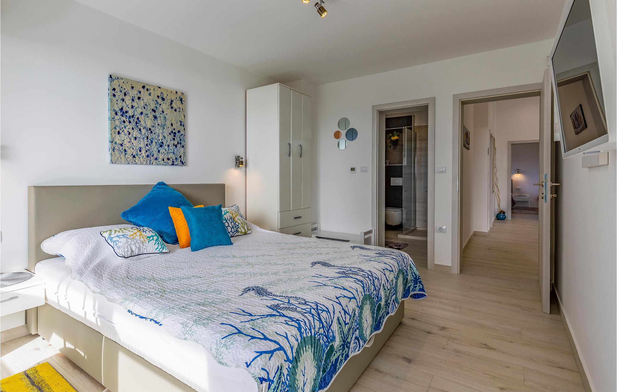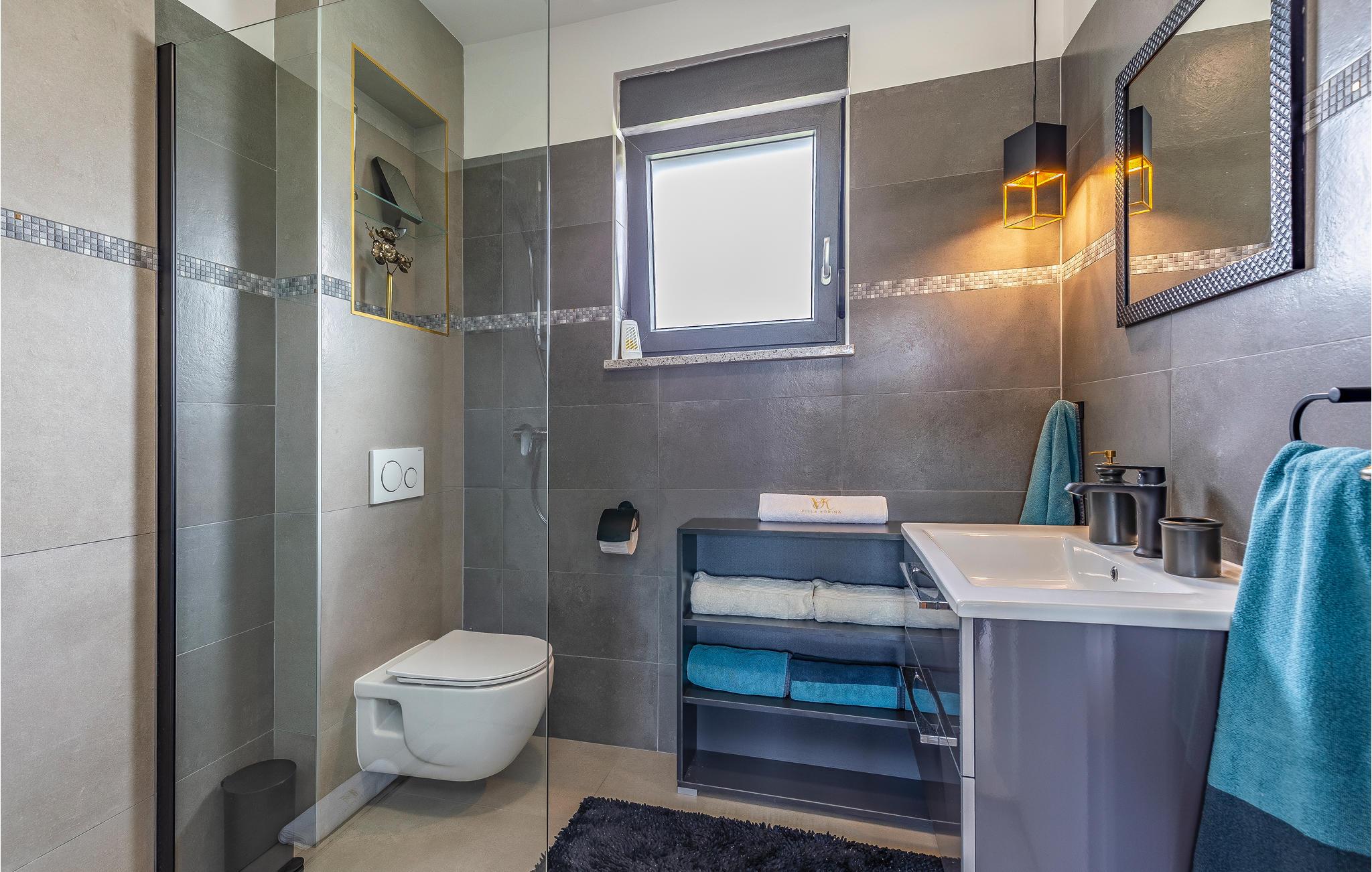 Udearealet omfatter en meget flot overdækket terrasse med solterrasse. Derudover fører en udvendig trappe langs den rummelige altan på 1. sal op til tagterrassen. Herfra kan I nyde en fantastisk udsigt til bugten Pomer og Medulin. jeres børn vil finde en græsplæne at lege i haven, men I vil helt sikkert tilbringe mange timer i vandet i den store pool. Et andet højdepunkt er udekøkkenet, hvor I kan lave mad og grille efter hjertens lyst og spise jeres måltider under åben himmel.
