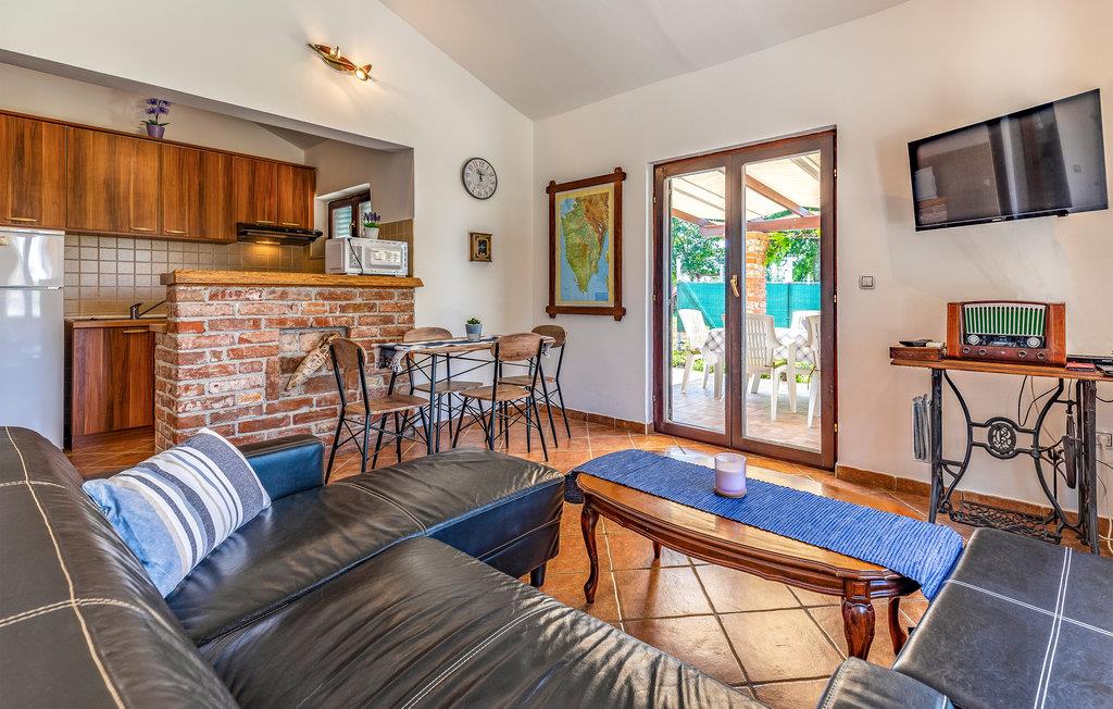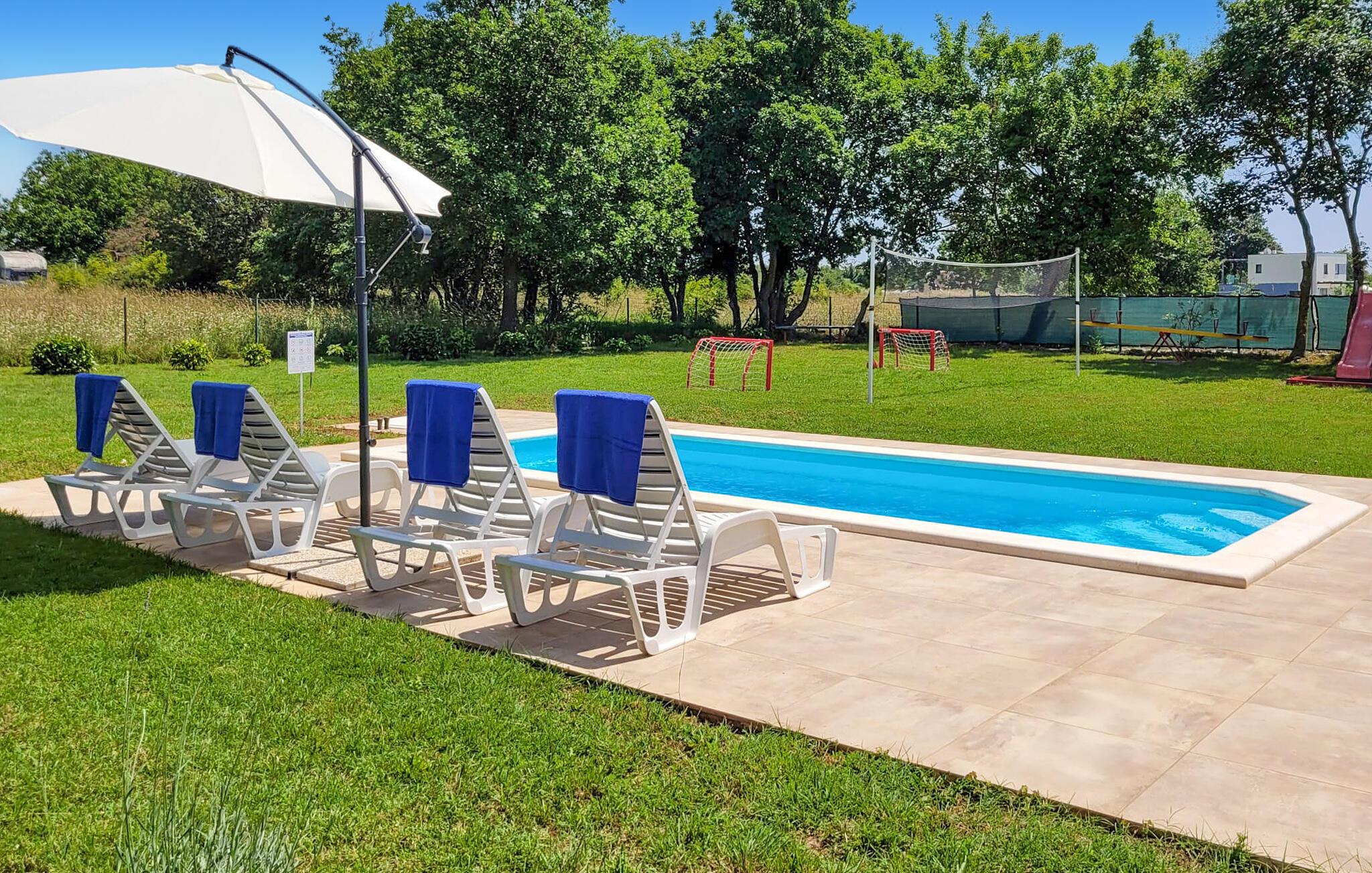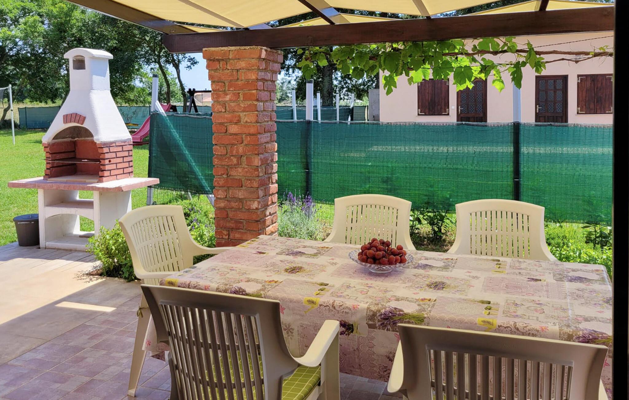 Dette charmerende feriehus ligger i en stor have og er helt ideelt til en familieferie i rolige og grønne omgivelser. Grunden er indhegnet og haven meget velplejet, her kan I slappe af i haven, mens børnene leger på gyngen, rutsjebanen og i sandkassen eller I kan spille badminton eller volleyball. Huset er hyggeligt indrettet og terrassen lægger op til afslapning omkring grillen. Nærmeste strande ligger i de populære feriebyer Pula og Medulin, hvor der er mange former for underholdning om sommeren.