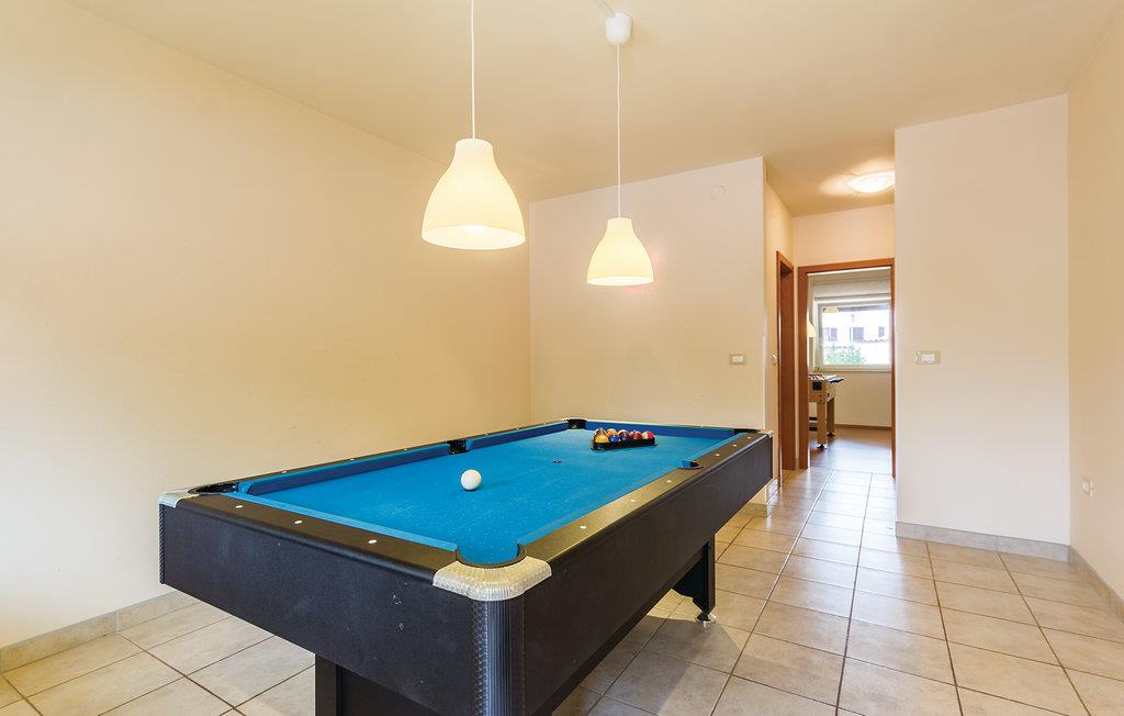 Feriehuset imponerer med sin rummelighed og praktiske grundplan. Gulvene er forbundet med udvendige trapper. På første sal er der et fitnessrum og et spillerum med billard. Det er garanteret ikke kedeligt her. Feriehuset er udstyret med i alt fire soveværelser og fem badeværelser og muliggør et afslappet og afslappet ophold.