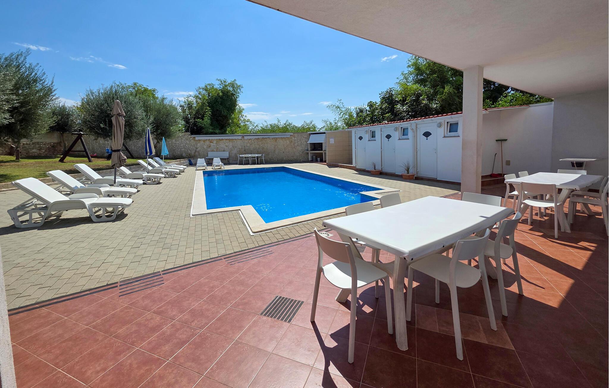 Hold ferie i dette dejlige feriehus med en herlig pool. Huset består af komfortable boligenheder. I stueetagen er der to lejligheder med adskilt indgang og en stor overdækket terrasse foran. Den øverste bolig, som I når ad en udvendig trappe, består af to etager med indvendige trapper og udgang til tre åbne terrasser hhv. balkoner, hvoraf en ligger på taget og giver jer en fabelagtig udsigt over havet. Nyd den komplet indhegnede grund med parkeringsplads og udendørs grill samt to wc'er ved poolen. Til de mindste er der også en gynge. Dette hus ligger i nærheden af havet og stranden og vil helt sikkert leve op til jeres krav.