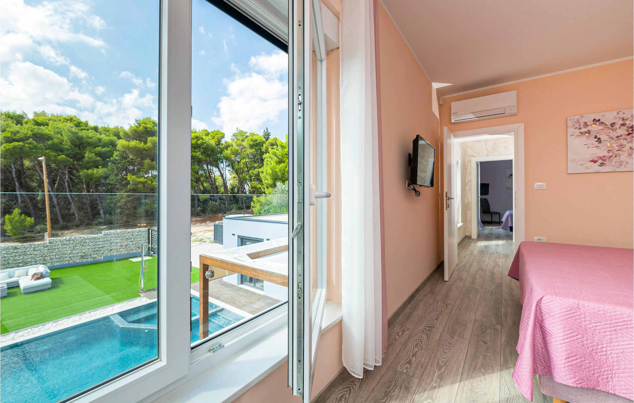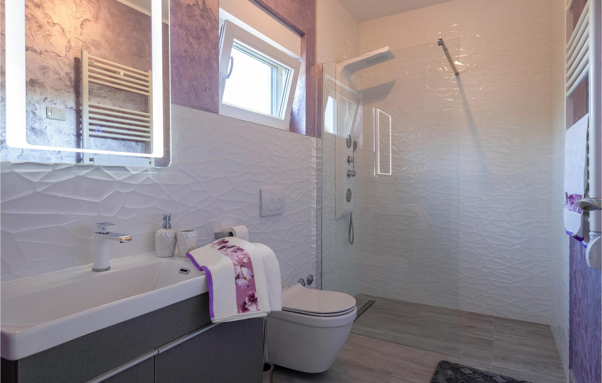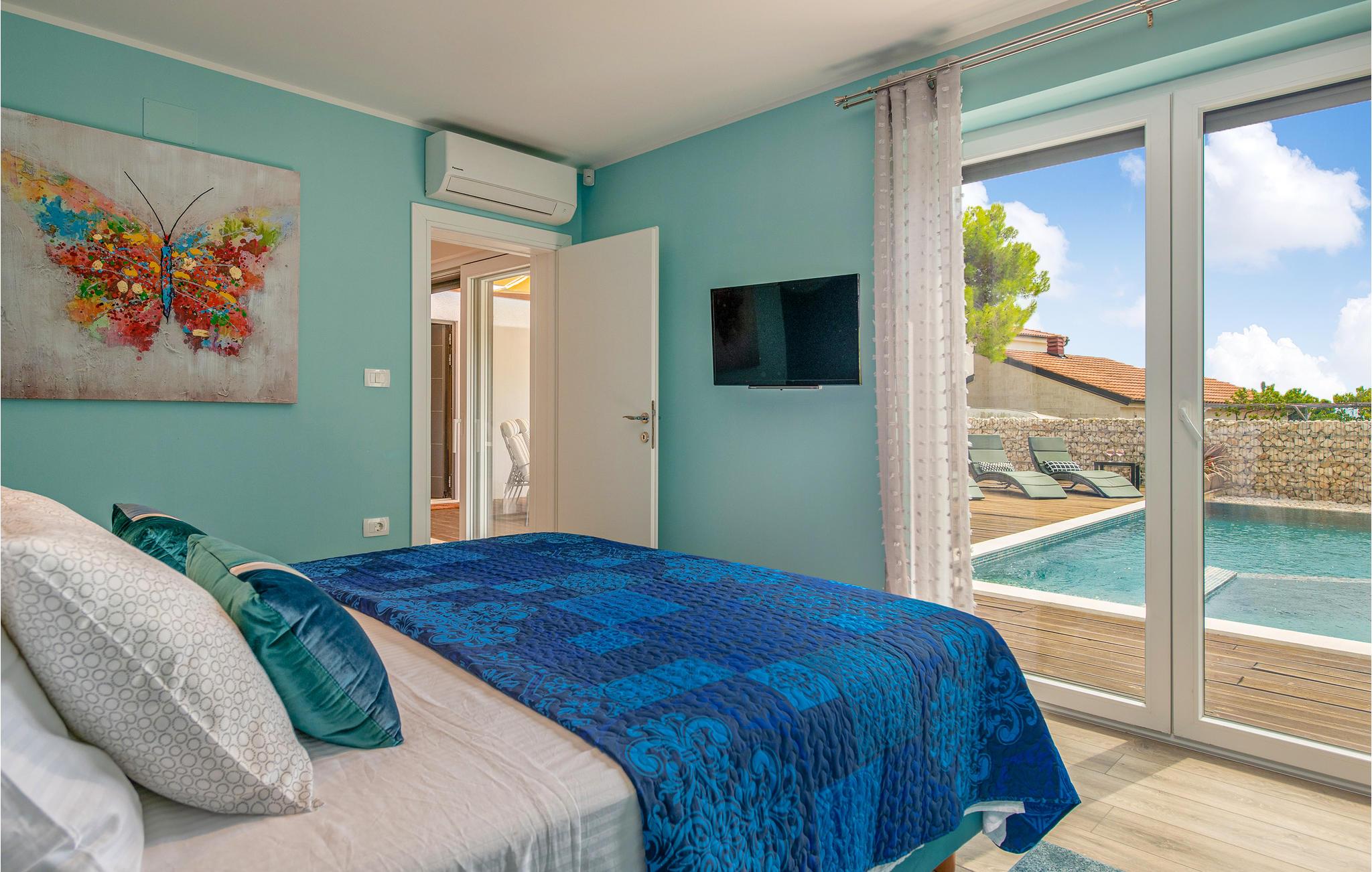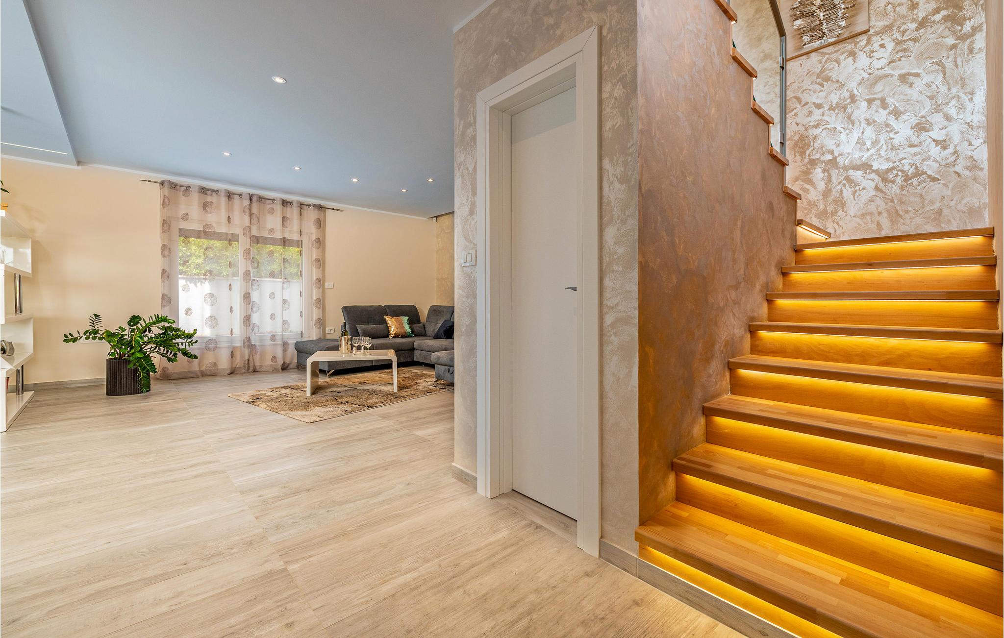 Interiøret er smukt og moderne med komfortable møbler og tilbyder jer alt, hvad I behøver til en afslappende ferie. Huset består af to etager, som er forbundet via en intern trappe. Stueetagen består af et åbent rum med køkken, spisestue og stue og to soveværelser med badeværelser. På første sal, der tilbyder en smuk udsigt over havet og Medulin-bugten, er der to soveværelser med eget badeværelse.