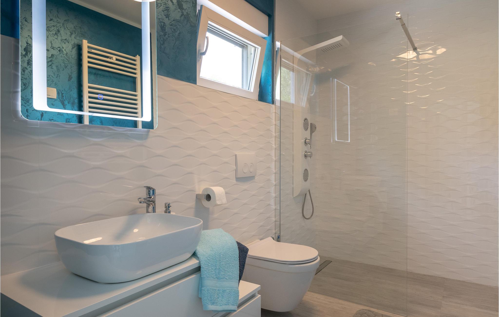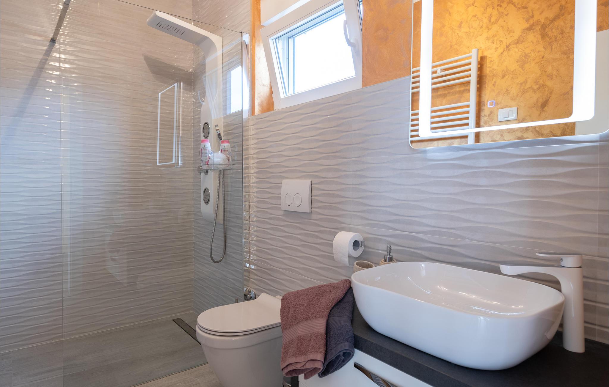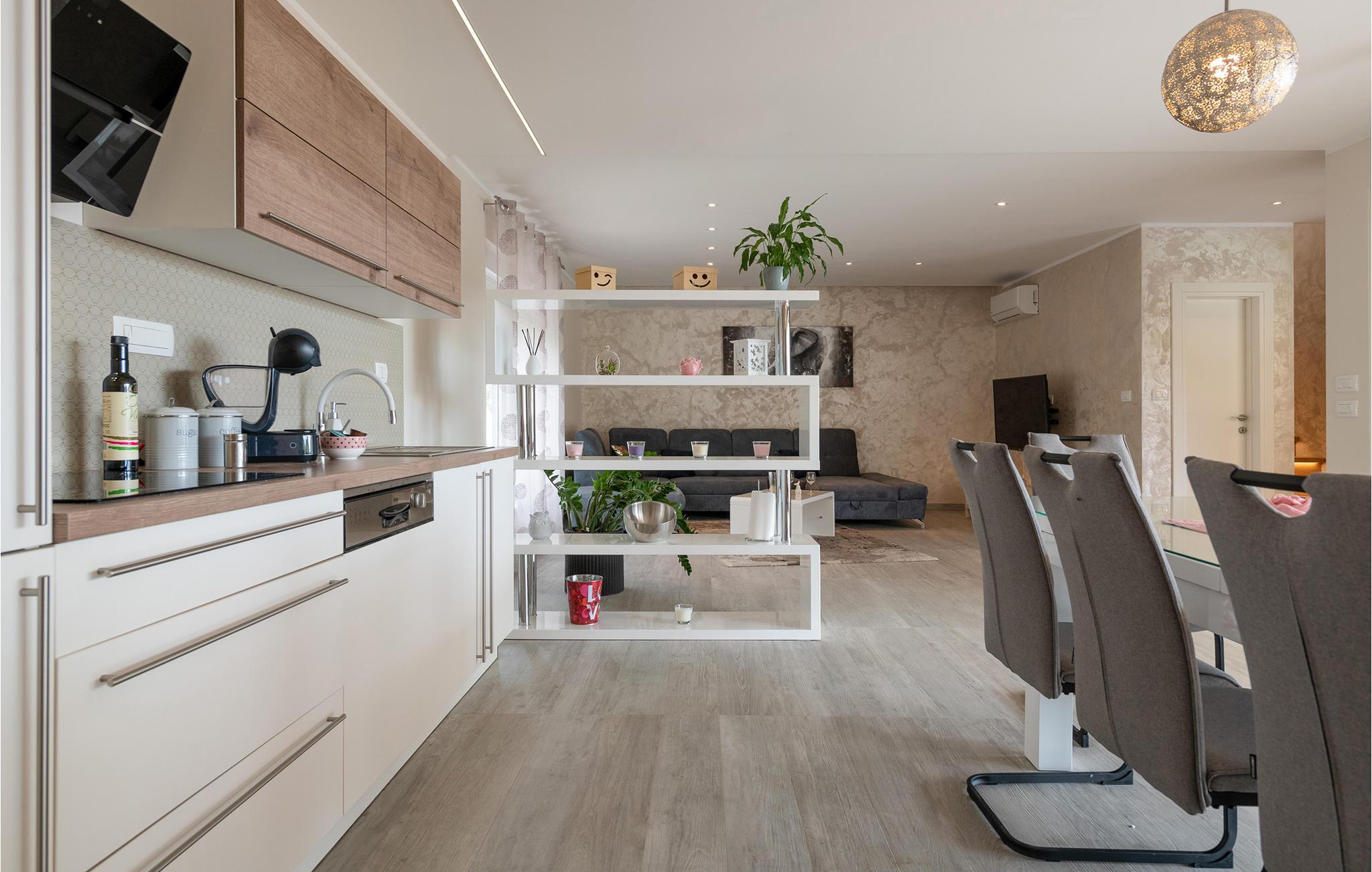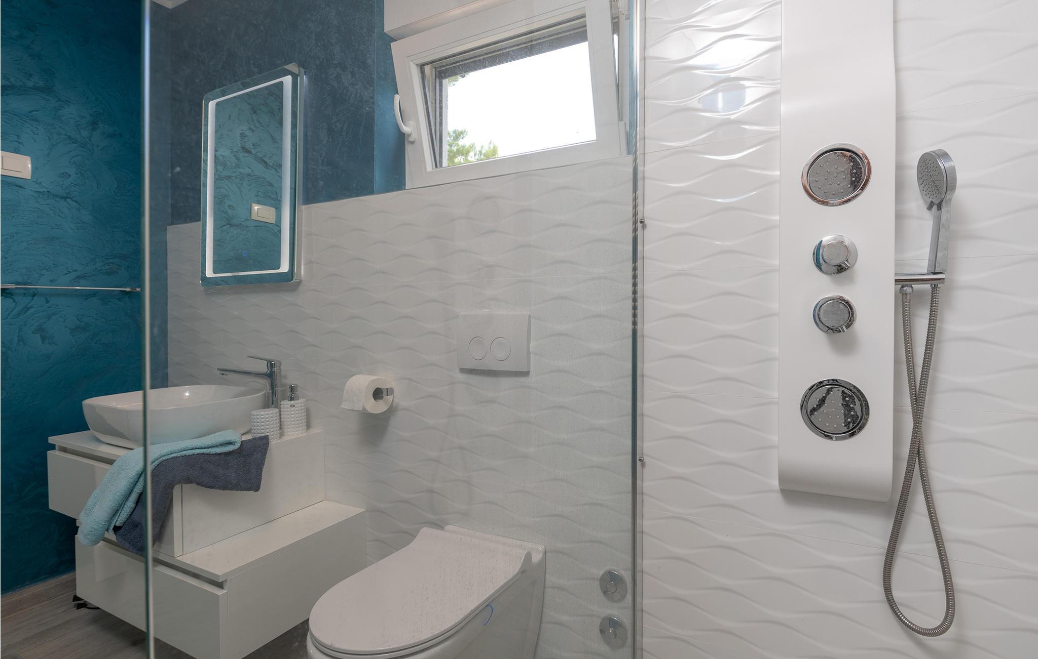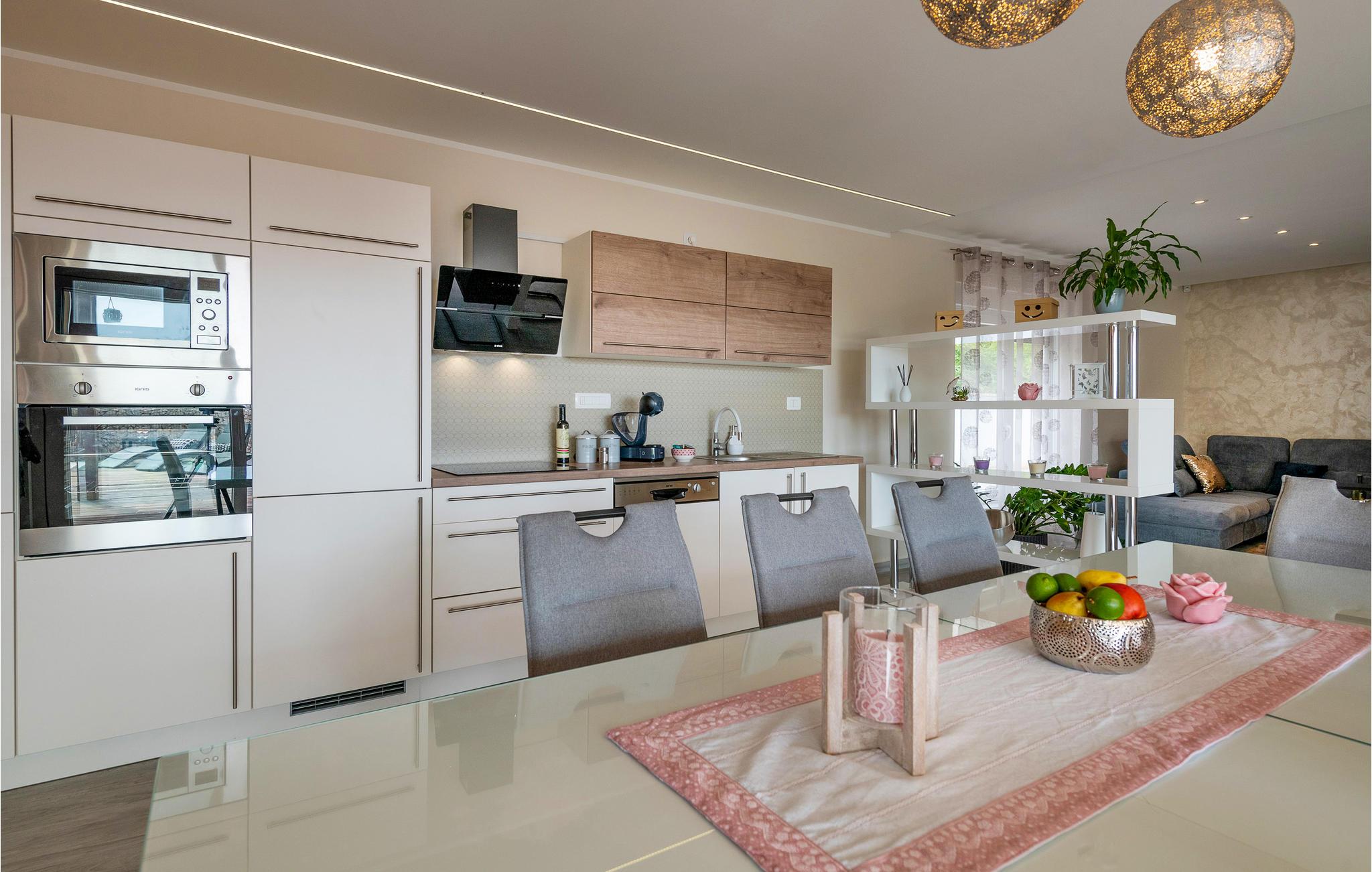 Interiøret er smukt og moderne med komfortable møbler og tilbyder jer alt, hvad I behøver til en afslappende ferie. Huset består af to etager, som er forbundet via en intern trappe. Stueetagen består af et åbent rum med køkken, spisestue og stue og to soveværelser med badeværelser. På første sal, der tilbyder en smuk udsigt over havet og Medulin-bugten, er der to soveværelser med eget badeværelse.