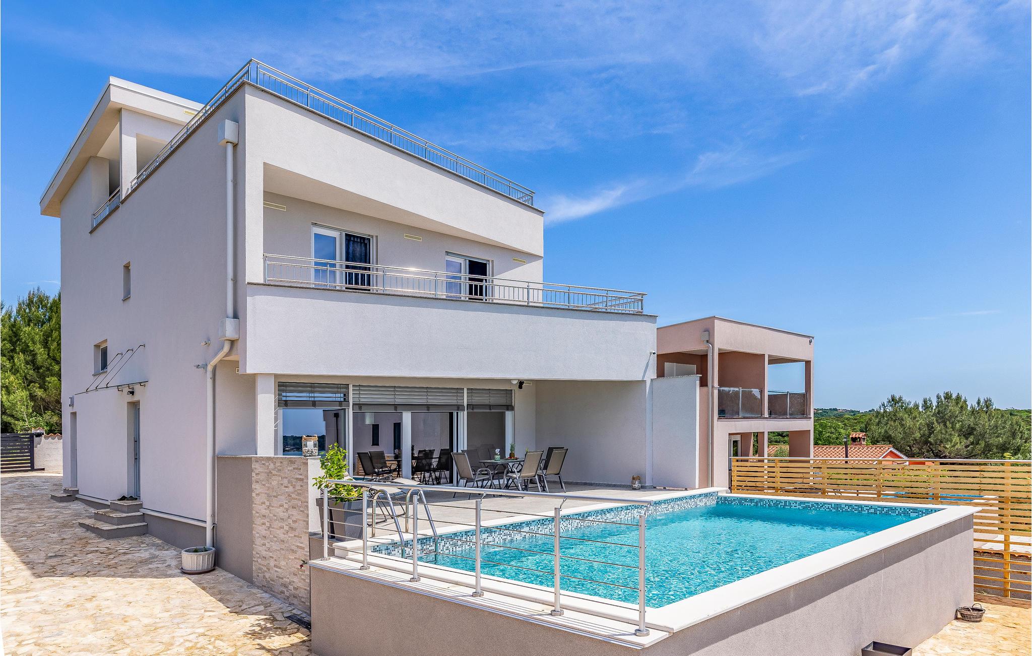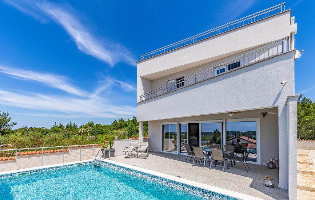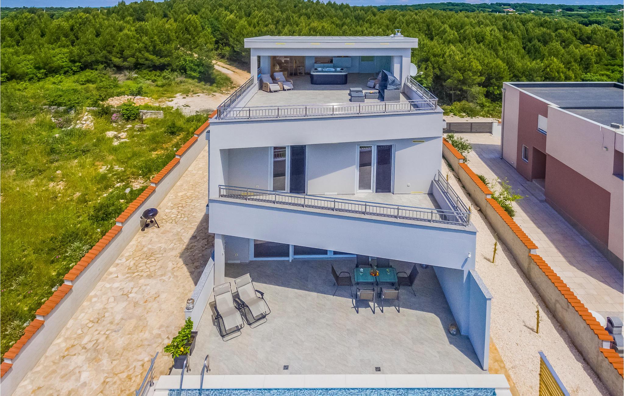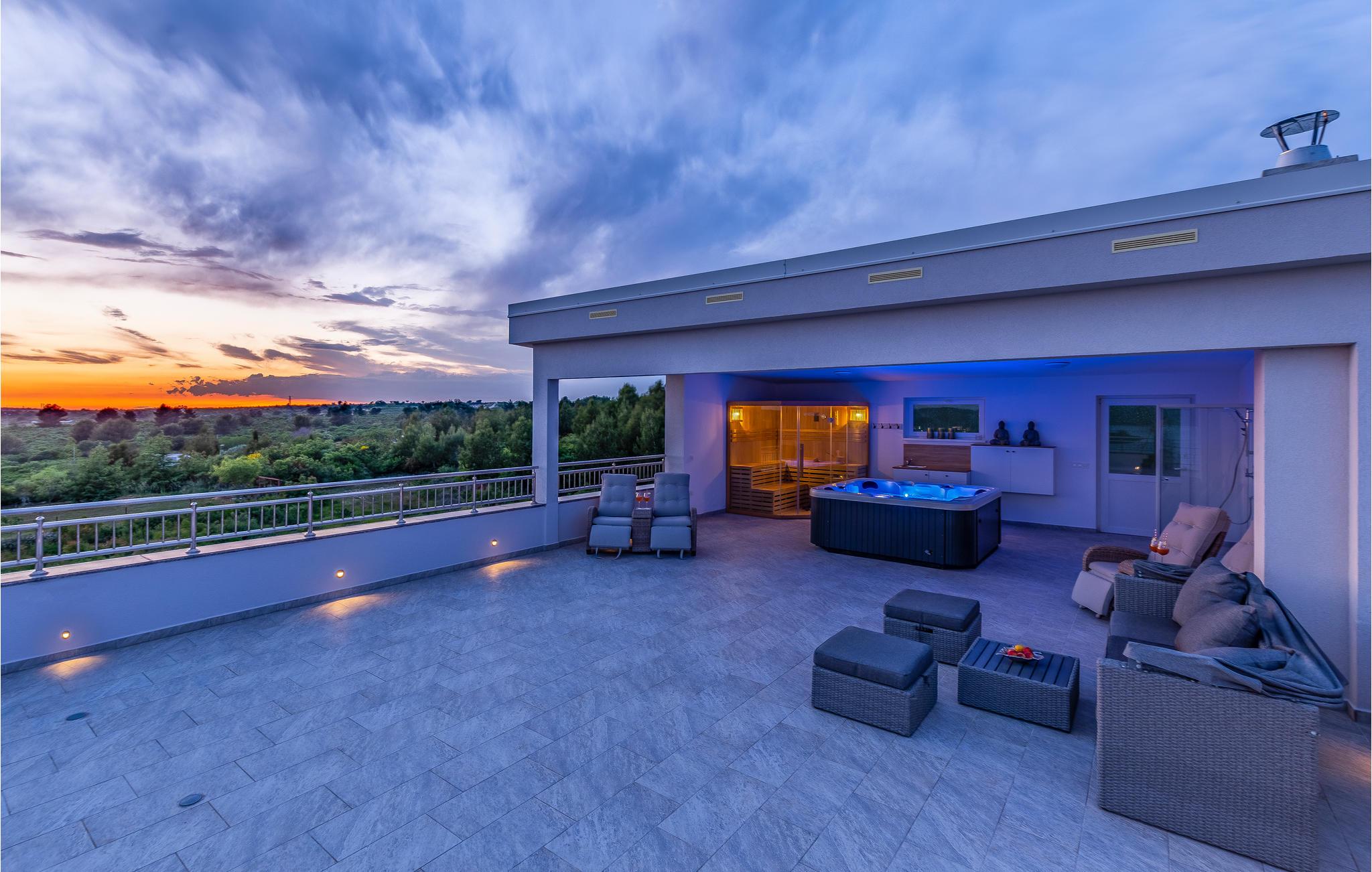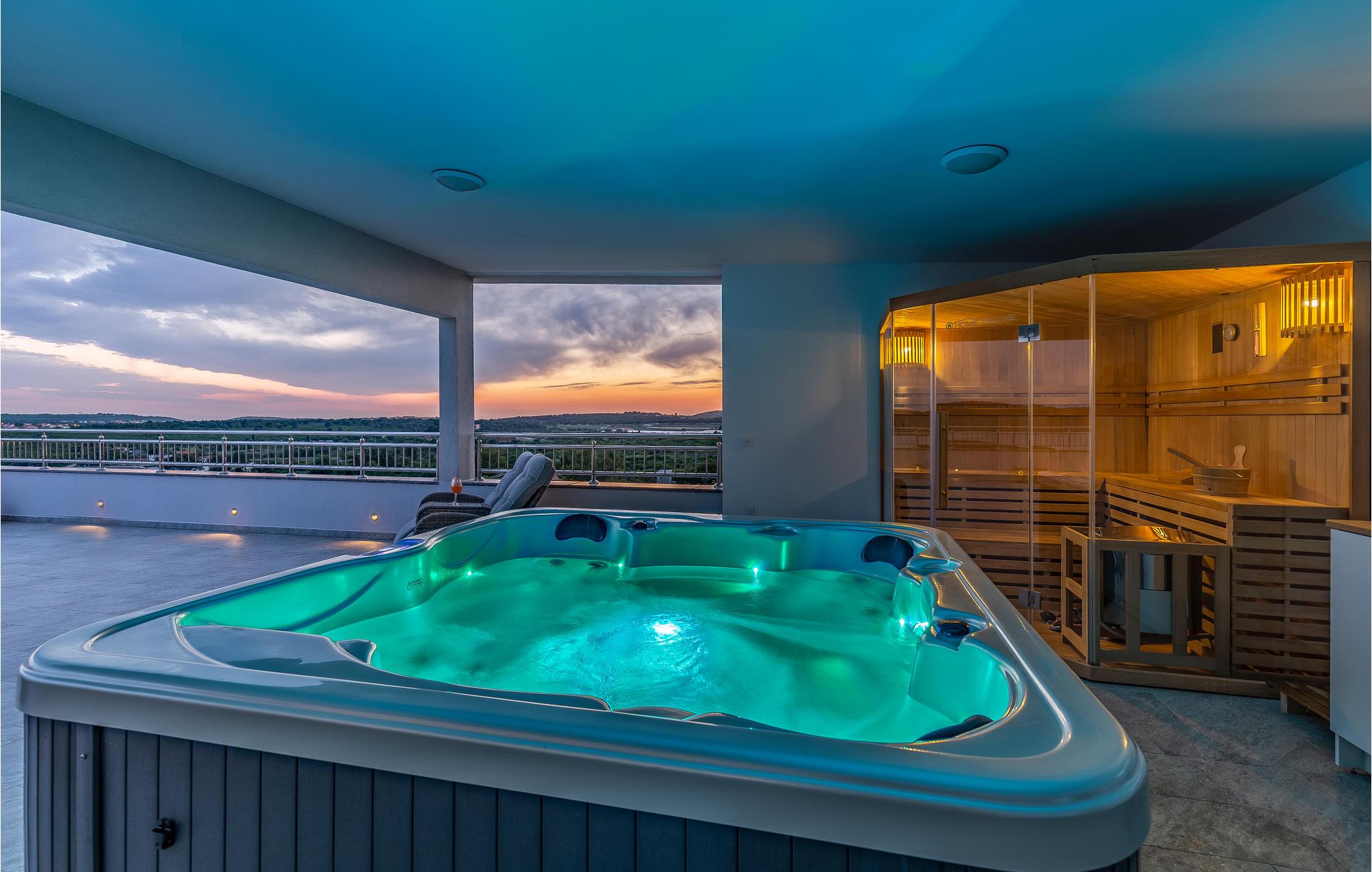 Dette komfortable feriehus er ideelt til en familieferie med sol, strand og hav. Takket være boblebad, sauna og stor pool kan du slappe af vidunderligt i dette hus og glemme hverdagen. Komfortable og stilfulde møbler venter dig inde i huset på flere etager.