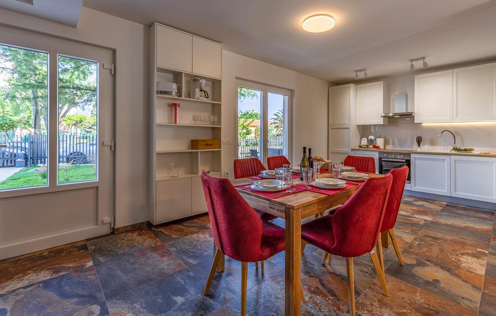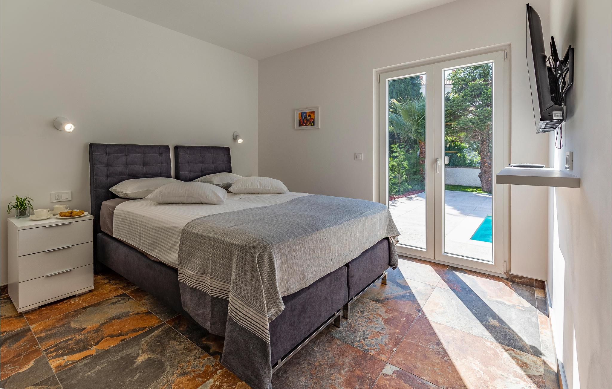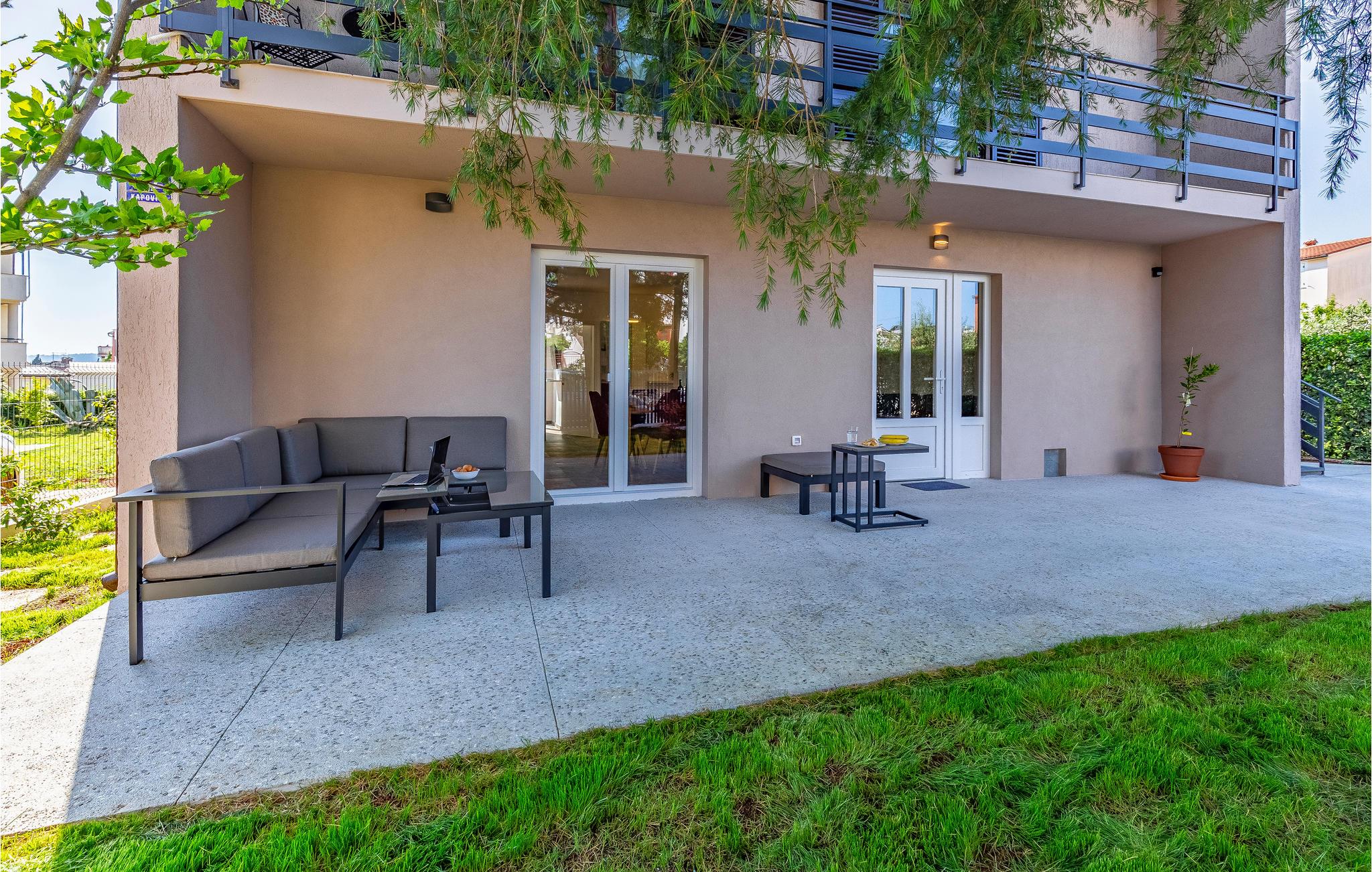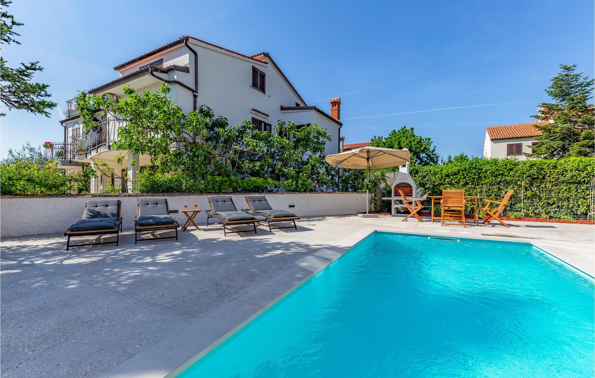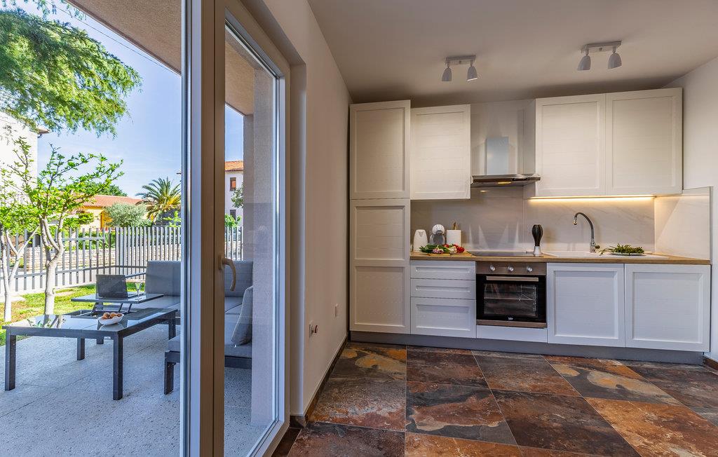 Kom til Medulin til denne smukke ferielejlighed og se frem til en fantastisk ferie med sol, strand og hav. Den moderne og luksuriøse indretning byder på alt, hvad I har brug for til en afslappende ferie. Det naturlige samlingspunkt er det dejlige køkkenalrum, hvor I kan nyde måltiderne sammen. Herfra I adgang til udendørsarealet med privat pool. Tag en forfriskende dukkert og lad solen tørre jer på en af liggestolene. Om aftenen kan I tilberede lækker grillmad på stengrillen.