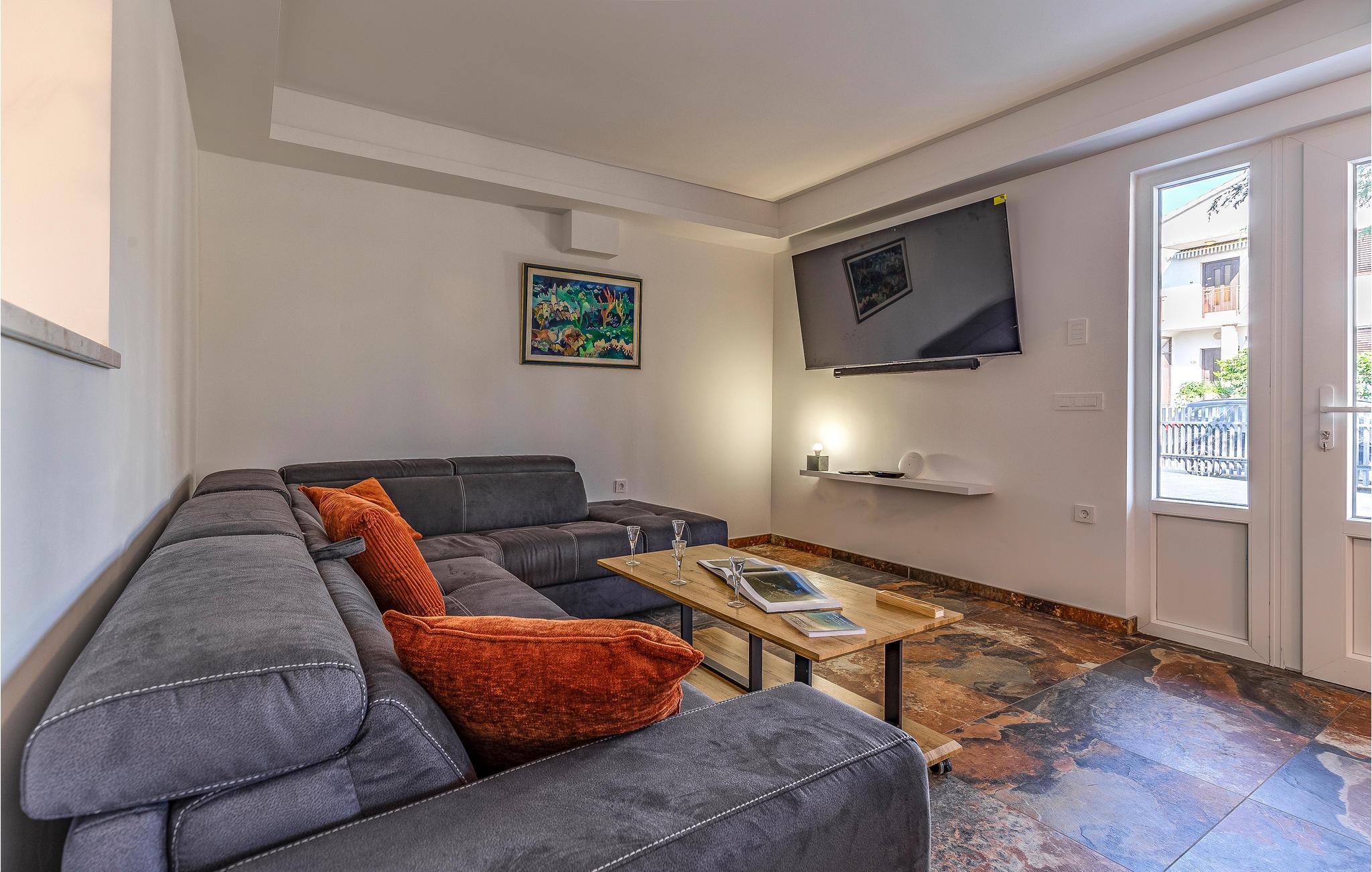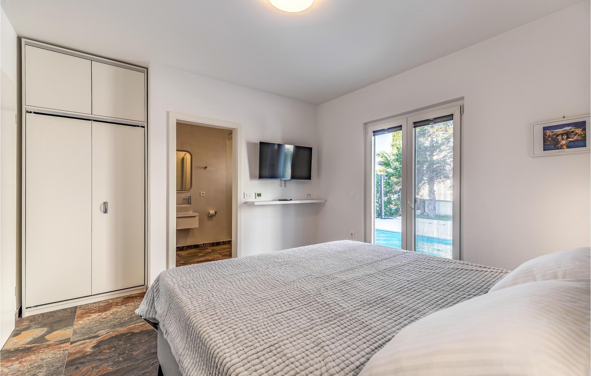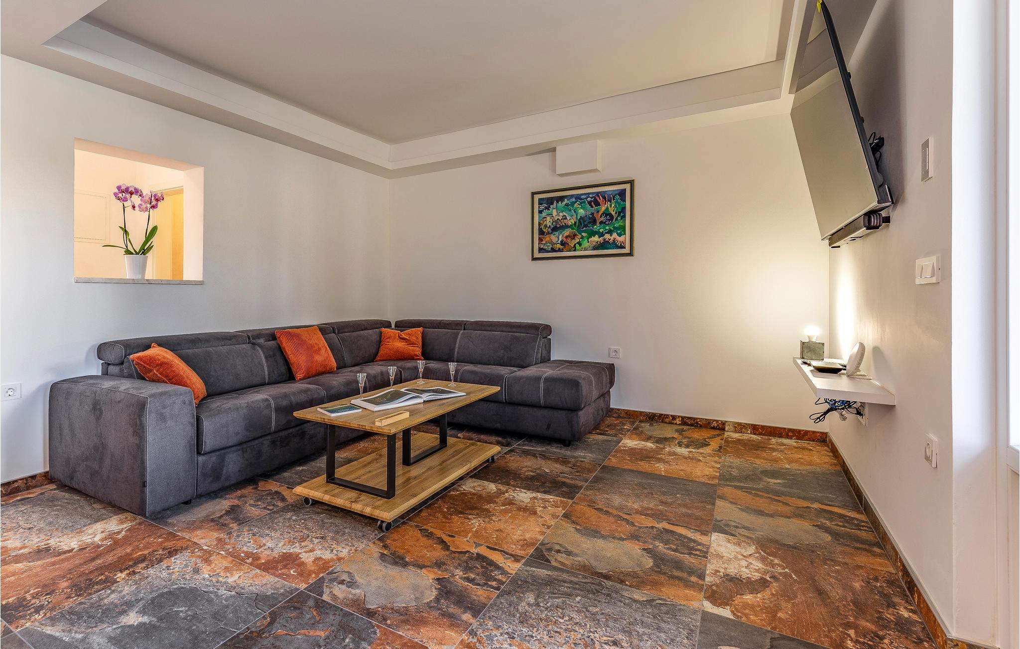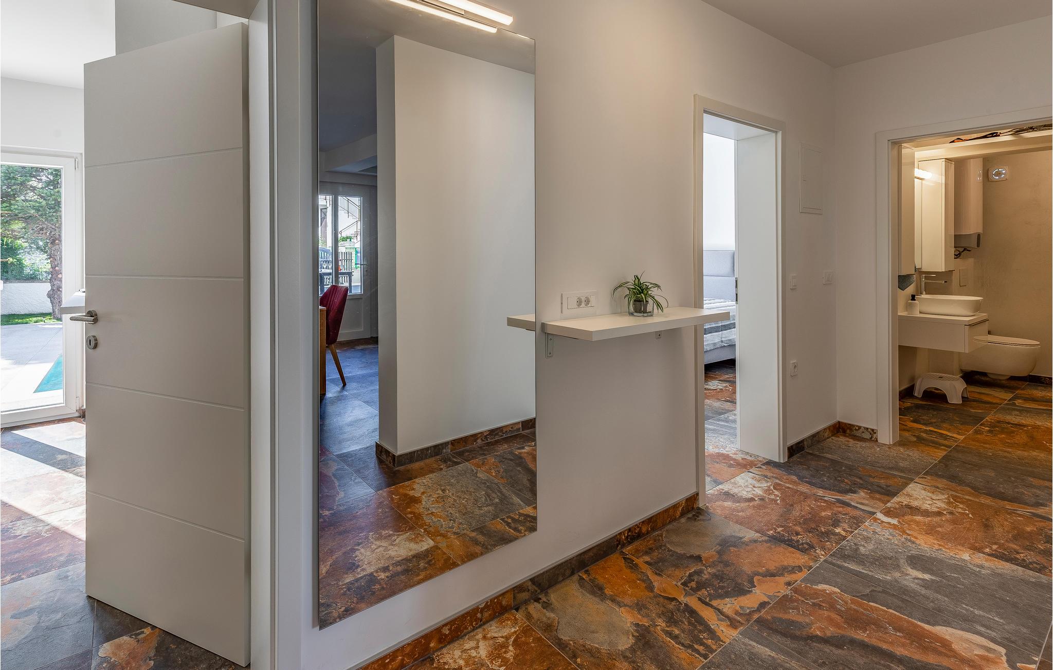 Kom til Medulin til denne smukke ferielejlighed og se frem til en fantastisk ferie med sol, strand og hav. Den moderne og luksuriøse indretning byder på alt, hvad I har brug for til en afslappende ferie. Det naturlige samlingspunkt er det dejlige køkkenalrum, hvor I kan nyde måltiderne sammen. Herfra I adgang til udendørsarealet med privat pool. Tag en forfriskende dukkert og lad solen tørre jer på en af liggestolene. Om aftenen kan I tilberede lækker grillmad på stengrillen.
