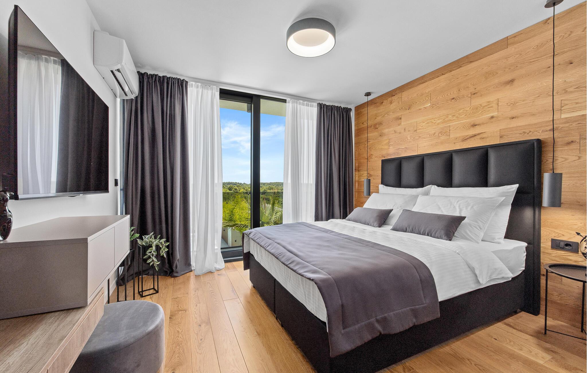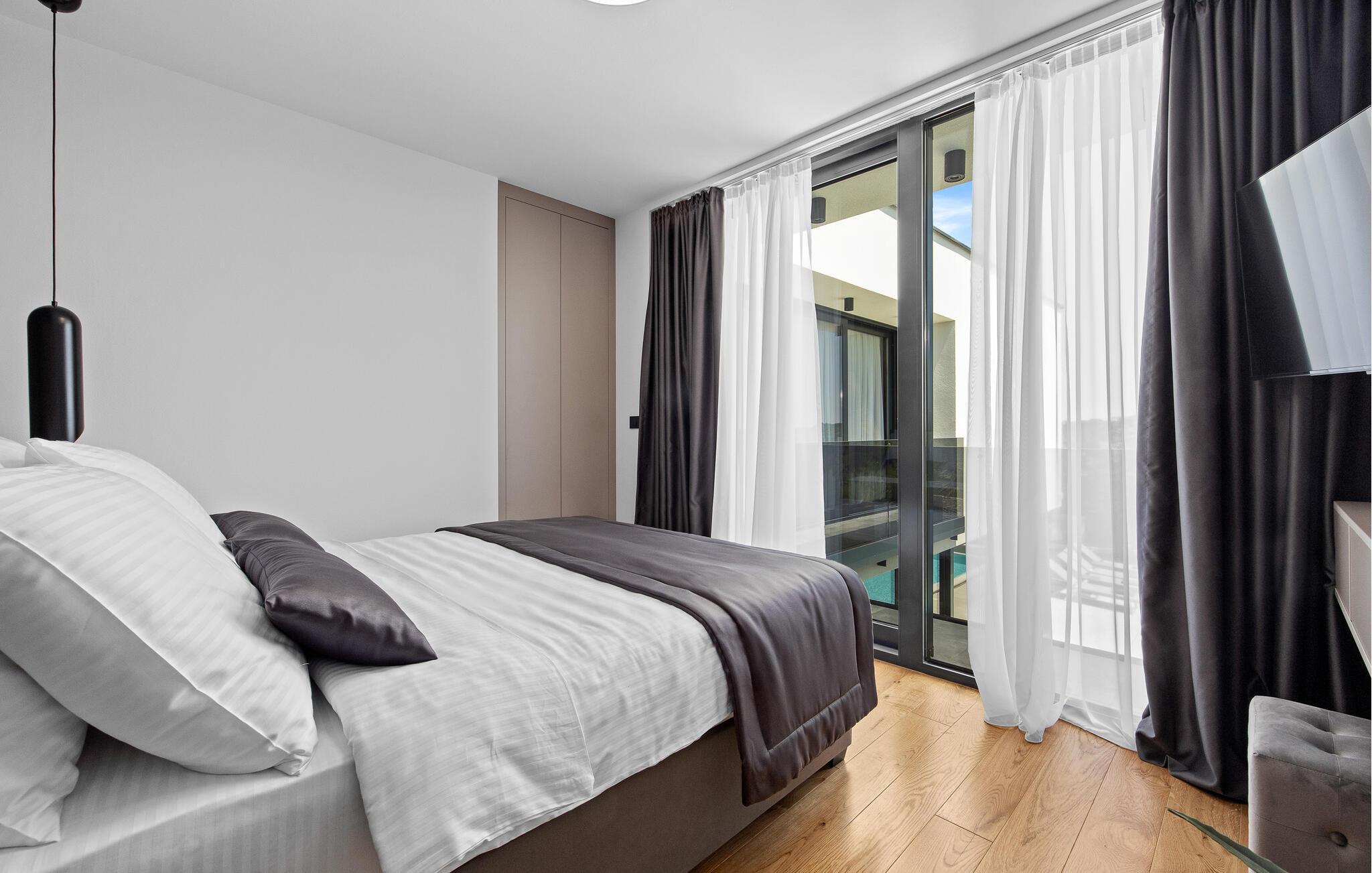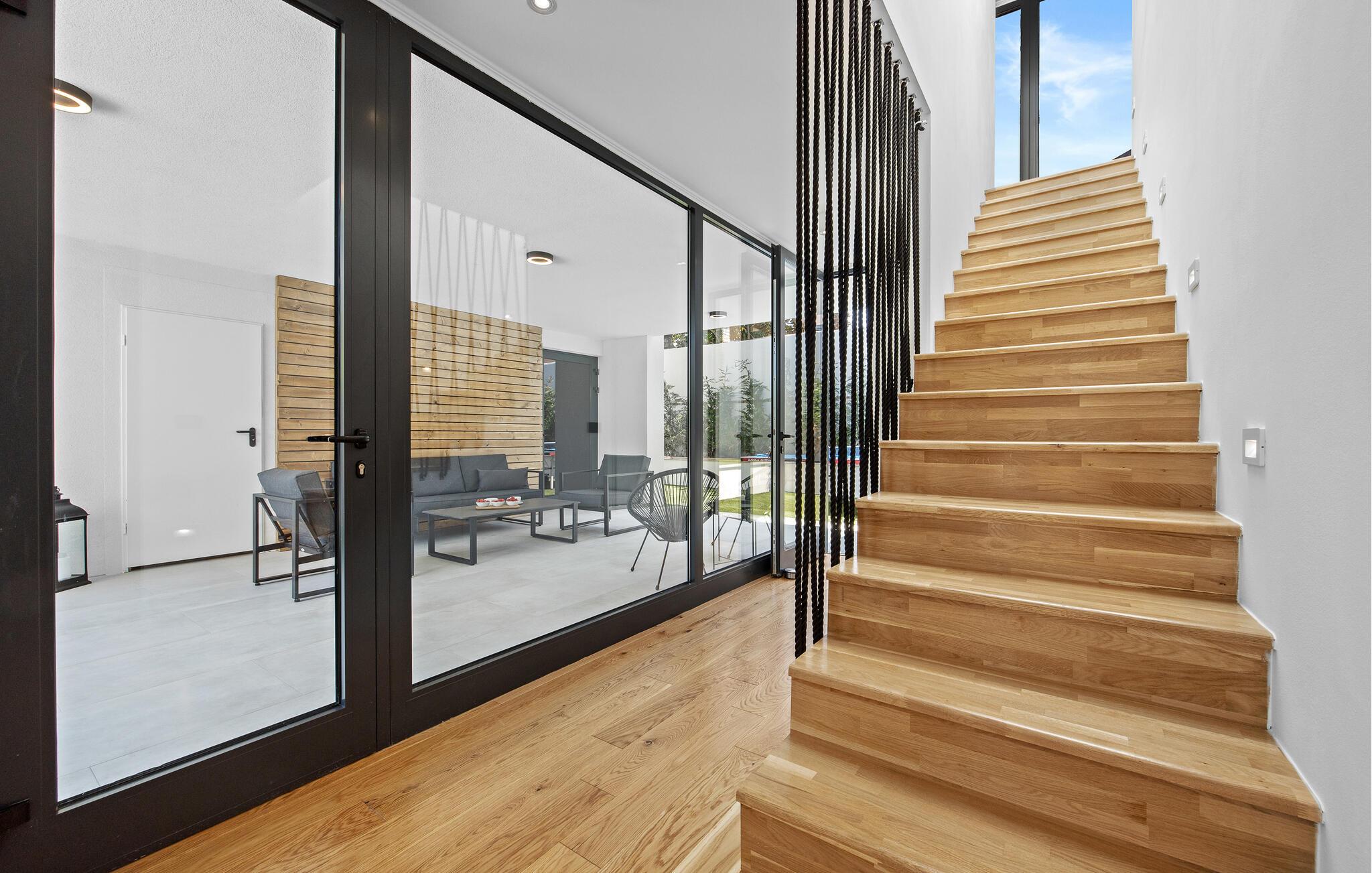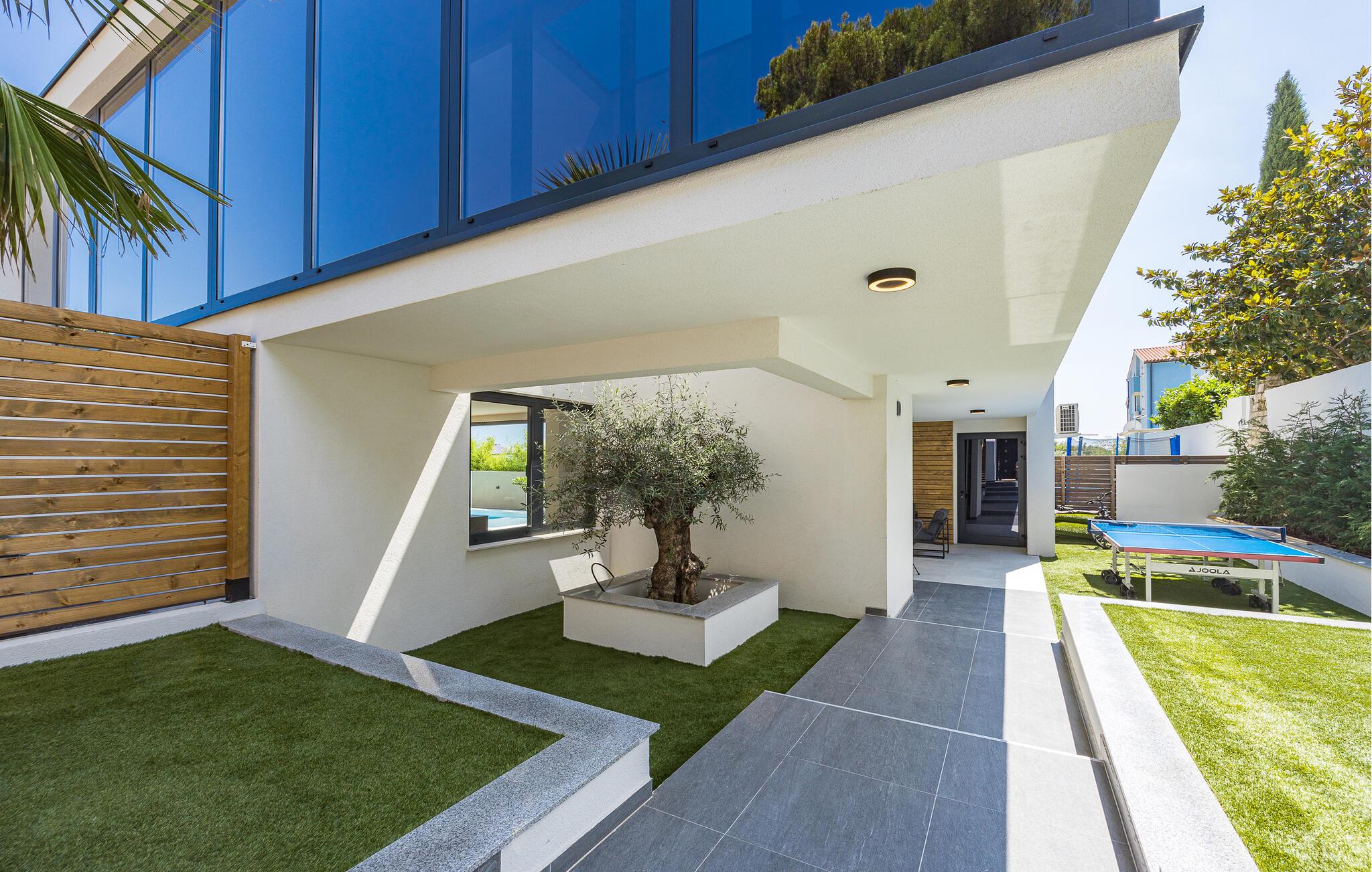 Dette moderne designerhjem vil glæde jer med sin enestående arkitektur, elegante møbler og adskillige faciliteter. Hold at tilberede lækre måltider i køkkenet af høj kvalitet med et glas vin, tænd brændeovnen og tag plads i den stilfulde spiseplads. Tilbring afslappende stunder i saunaen og glæd jer til afslappende filmaftener i den store stue, hvor rummelige vinduesfronter giver udsigt til den stemningsfuldt oplyste pool.