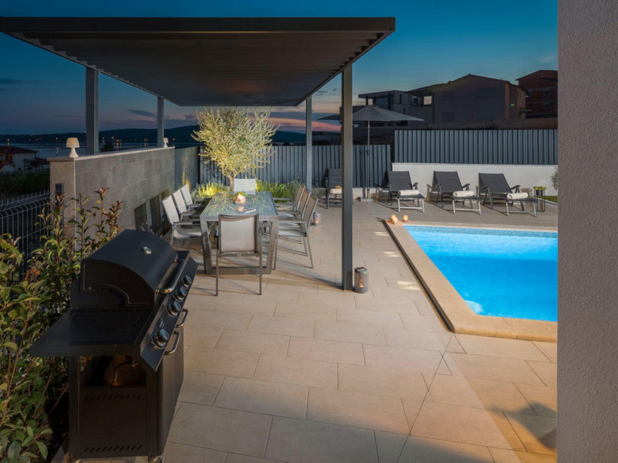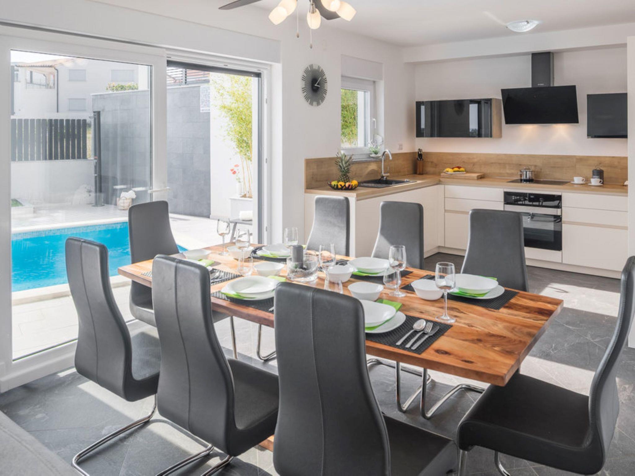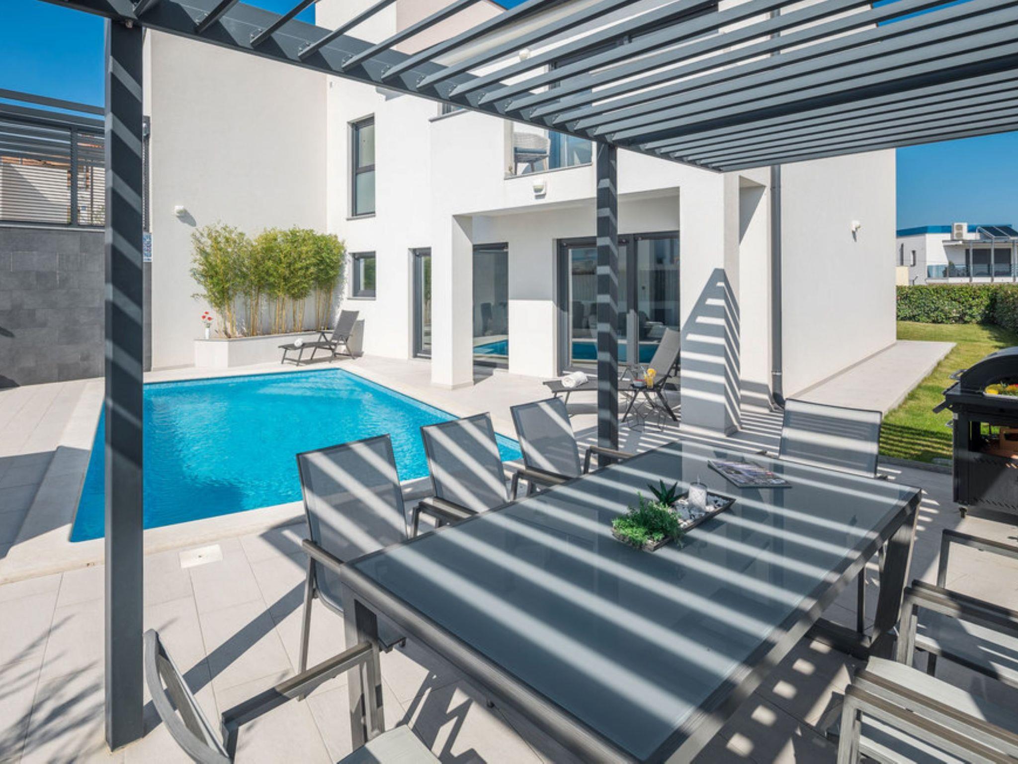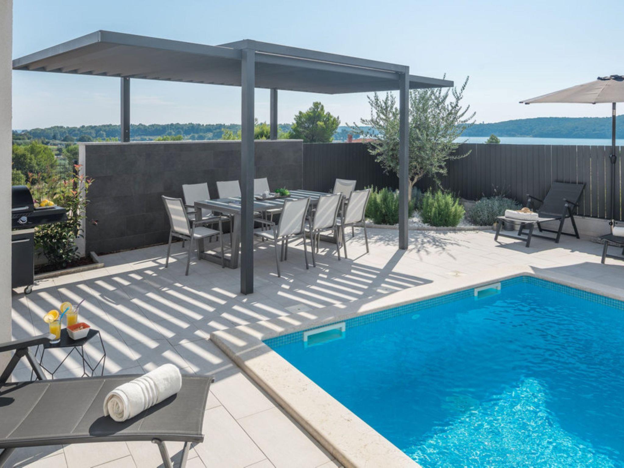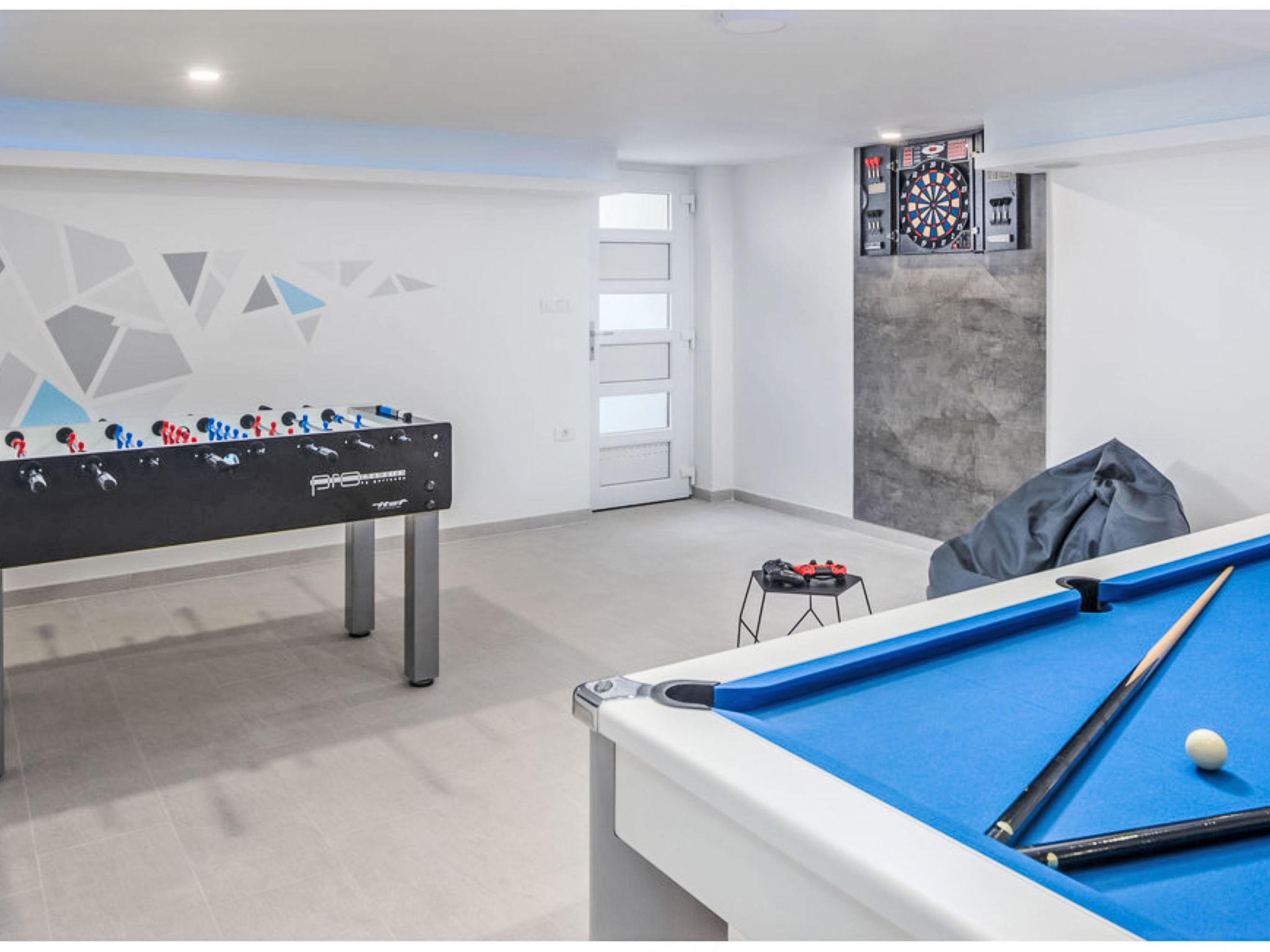 Villa "Freya", 2 storeys. 1 km from the centre of Medulin, 12 km from the centre of Pula, 150 m from the sea, 150 m from the beach. Private: property 570 m2 (fenced) with lawn, swimming pool angular (7 x 4 m, 28 m2, depth 140 cm, seasonal availability: 01.May. - 01.Oct.). Outdoor shower, terrace (20 m2), garden furniture, barbecue (swing). In the house: internet access, table tennis, billiard table, playroom, washing machine. Parking (for 3 cars) at the house on the premises. Grocery 500 m, supermarket 1 km, restaurant 300 m, bus stop 1 km, pebble beach, shingle beach 150 m. Marina 1.5 km. Please note: airfield 9 km from the property.