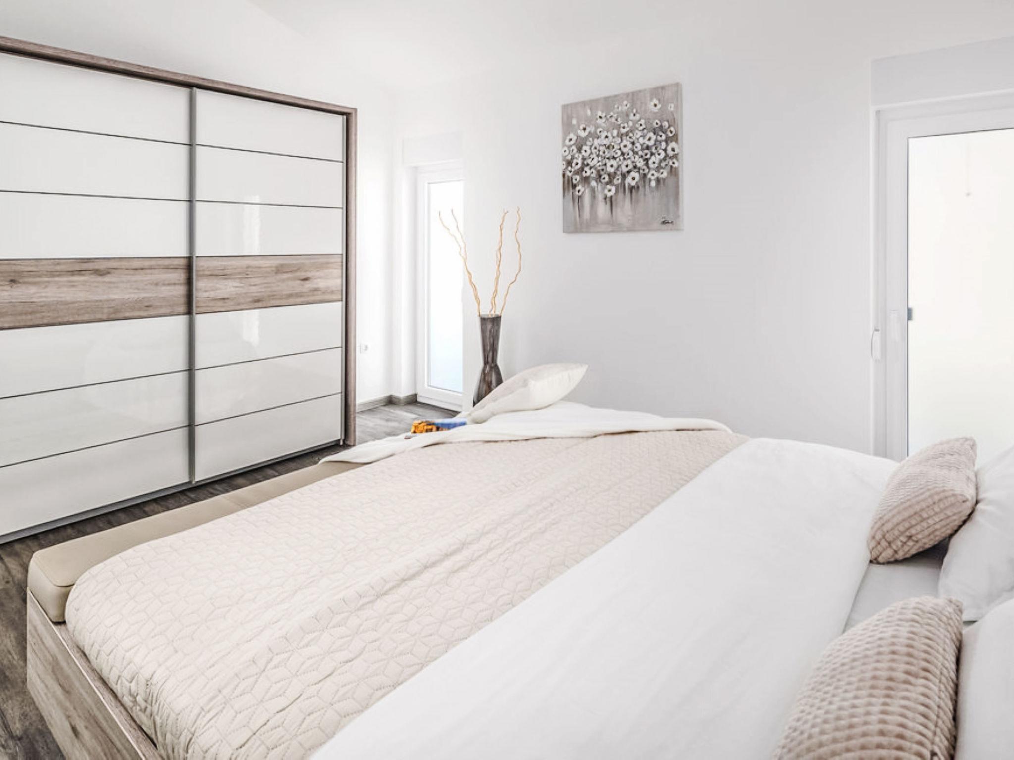 5-room villa 195 m2 on 2 levels. Modern and luxurious furnishings: living/dining room with satellite TV (flat screen), air conditioning. Exit to the terrace, to the swimming pool. Open kitchen (oven, dishwasher, 4 ceramic glass hob hotplates, toaster, kettle, microwave, freezer, electric coffee machine). Shower/WC. Upper floor: 1 room with 1 french bed (180 cm, length 200 cm), shower/WC and satellite TV (flat screen), air conditioning. Exit to the balcony. 1 room with 1 french bed (180 cm, length 200 cm), shower/WC and satellite TV (flat screen), air conditioning. 1 room with 1 french bed (180 cm, length 200 cm), air conditioning. 1 room with 2 beds (90 cm, length 200 cm), air conditioning. Entrance hall with air conditioning. Shower/WC. Forced-air heating. Balcony 4 m2. Terrace furniture, balcony furniture, deck chairs. Beautiful view of the sea. Facilities: Internet (WiFi, free). Maximum 2 pets/ dogs allowed.