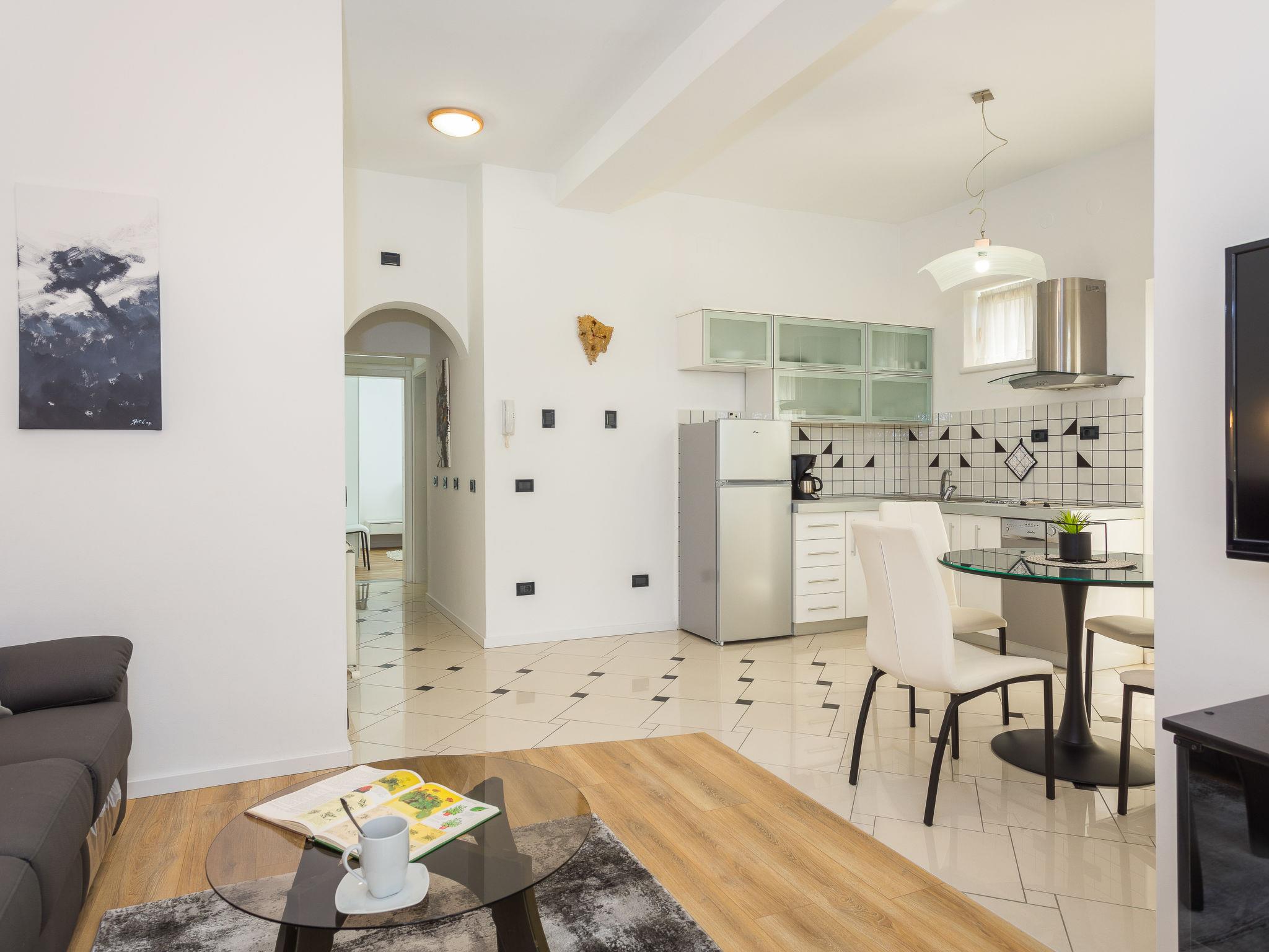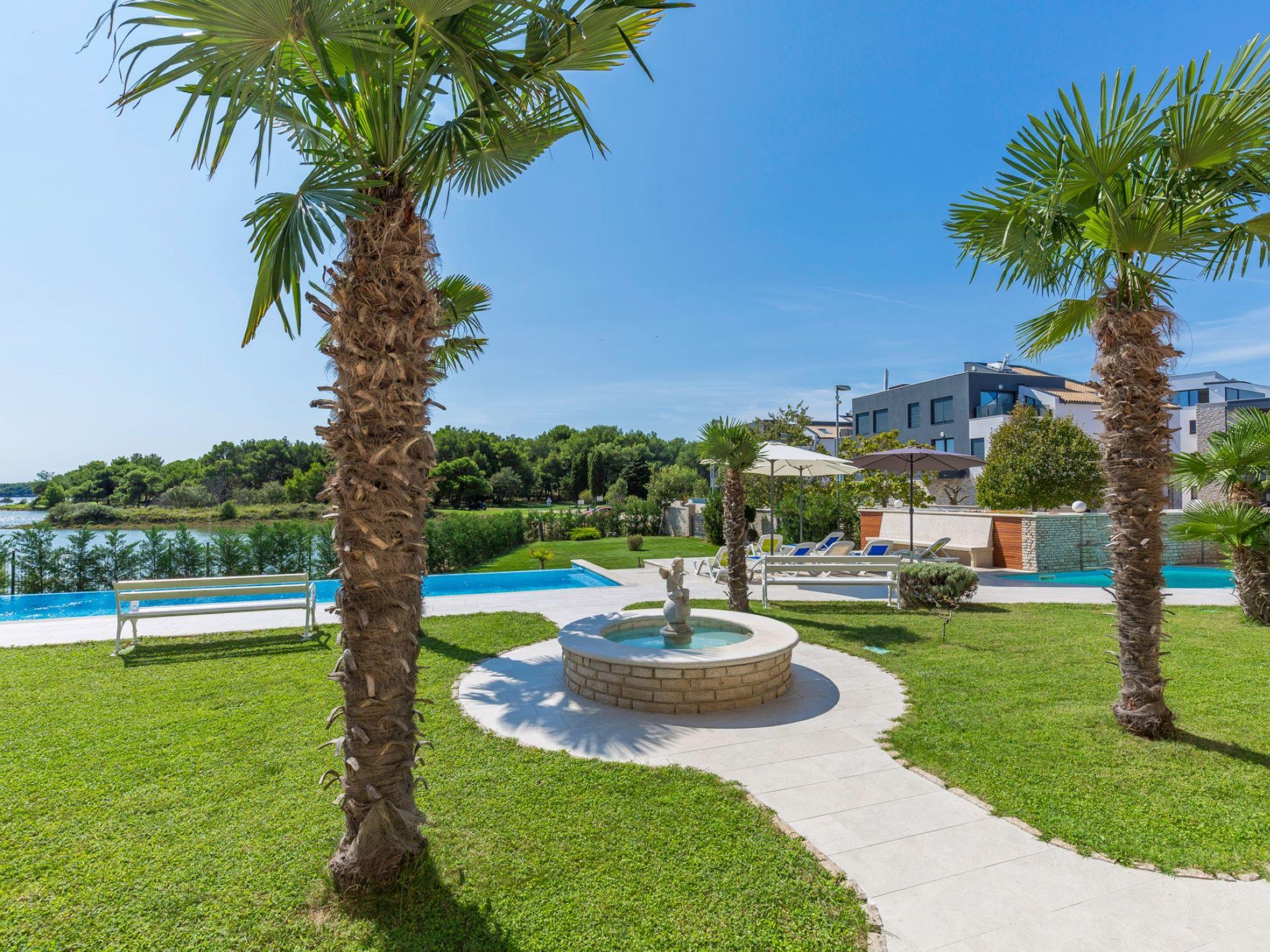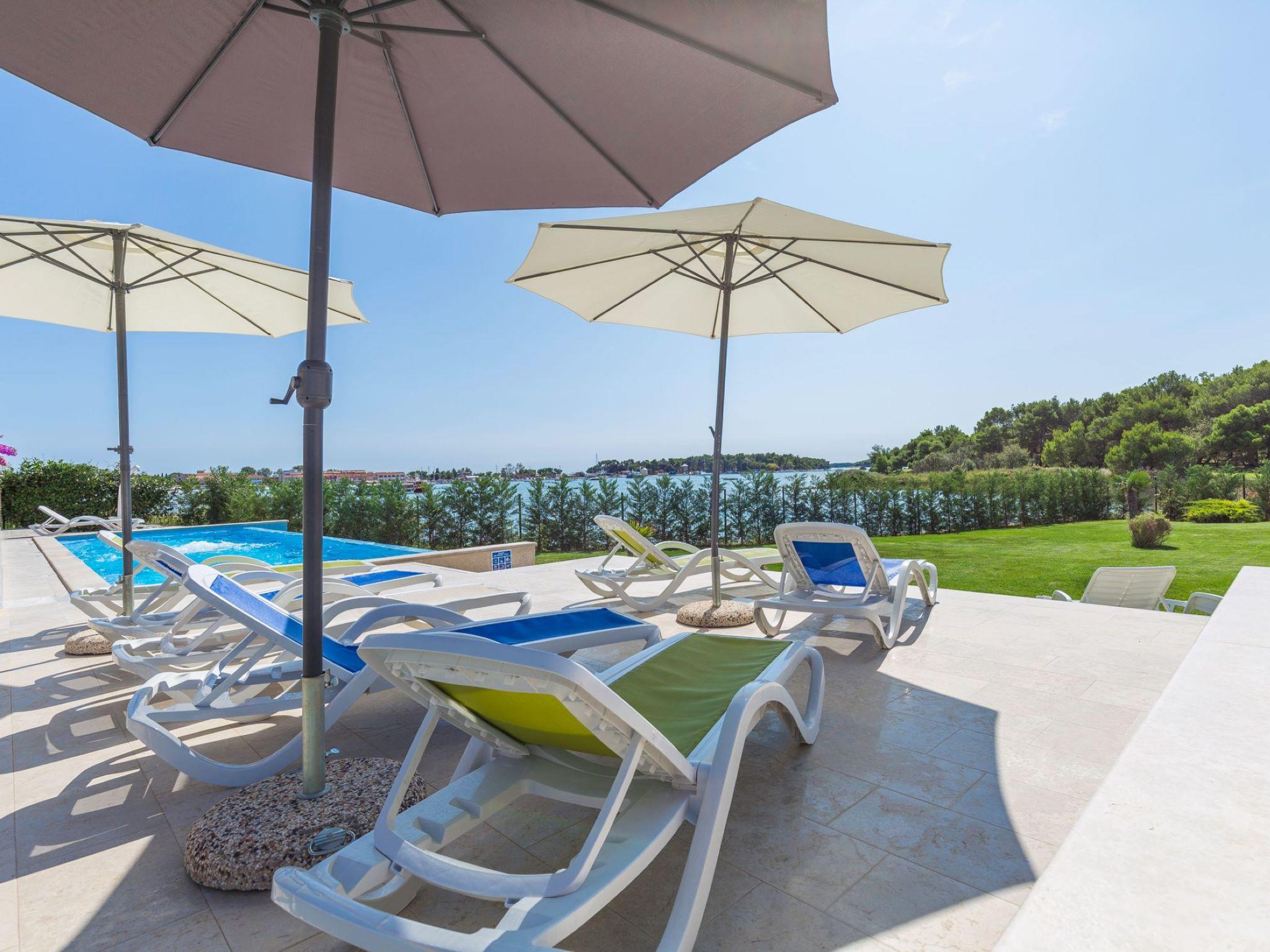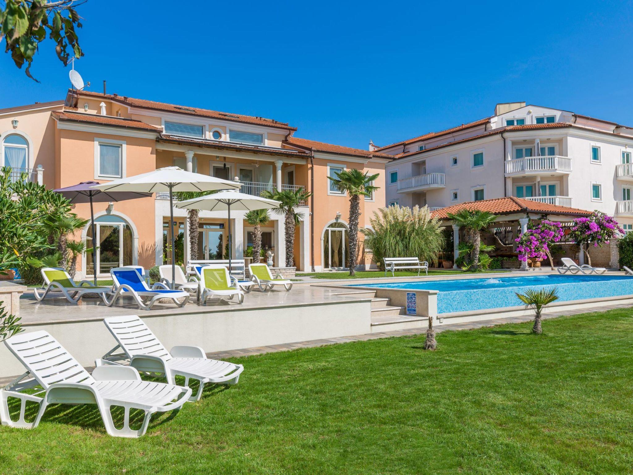 Beautiful, cosy apartment block "Villa Vizula", 3 storeys. 500 m from the centre of Medulin, in a sunny position, 10 m from the sea, 250 m from the beach. For shared use: property 1'000 m2 (fenced), swimming pool angular (11 x 4 m, 40 m2, depth 140 cm, seasonal availability: 01.Jun. - 01.Oct.). Outdoor shower, terrace (20 m2), garden furniture, barbecue. In the house: internet access. Parking at the house on the premises. Supermarket 200 m, restaurant 150 m, bar 200 m, bus stop 100 m, sandy beach 900 m pebble beach 300 m, rocky beach 250 m. Surf school 2 km, tennis 2 km, riding stable 2 km, sports centre 700 m, walking paths from the house 100 m, cycle lane 200 m.