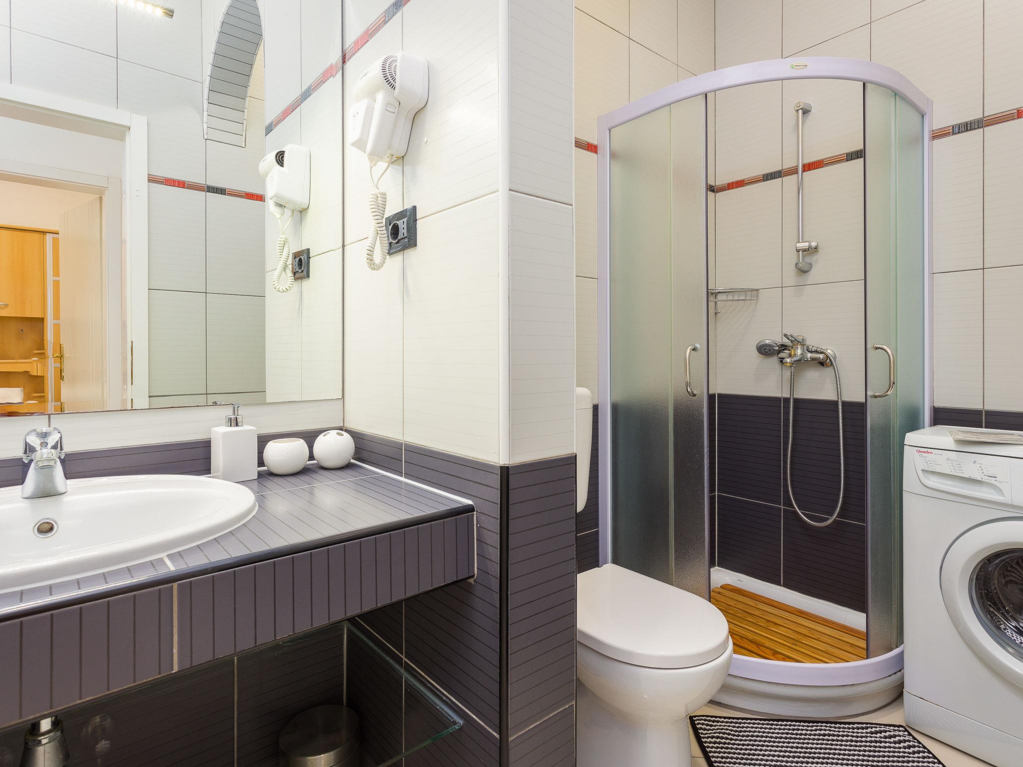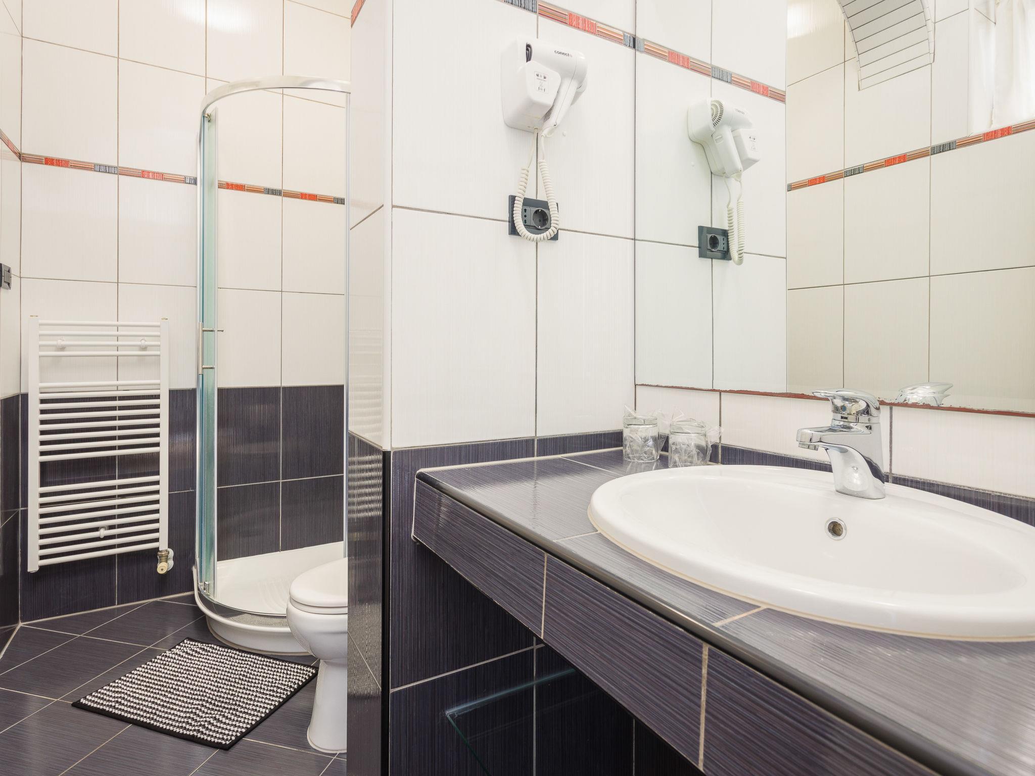 "Black&White", 3-room apartment 70 m2. Beautiful and cosy furnishings: living/dining room with satellite TV (flat screen), air conditioning. 1 room with 1 bed (80 cm, length 200 cm). 1 room with 1 french bed (160 cm, length 200 cm). Open kitchen (dishwasher, 2 ceramic glass hob hotplates, toaster, kettle, microwave, freezer, electric coffee machine). 2 showers/WC. Forced-air heating. Marvellous view of the swimming pool and the ocean. Facilities: washing machine, safe. Internet (WiFi, free).