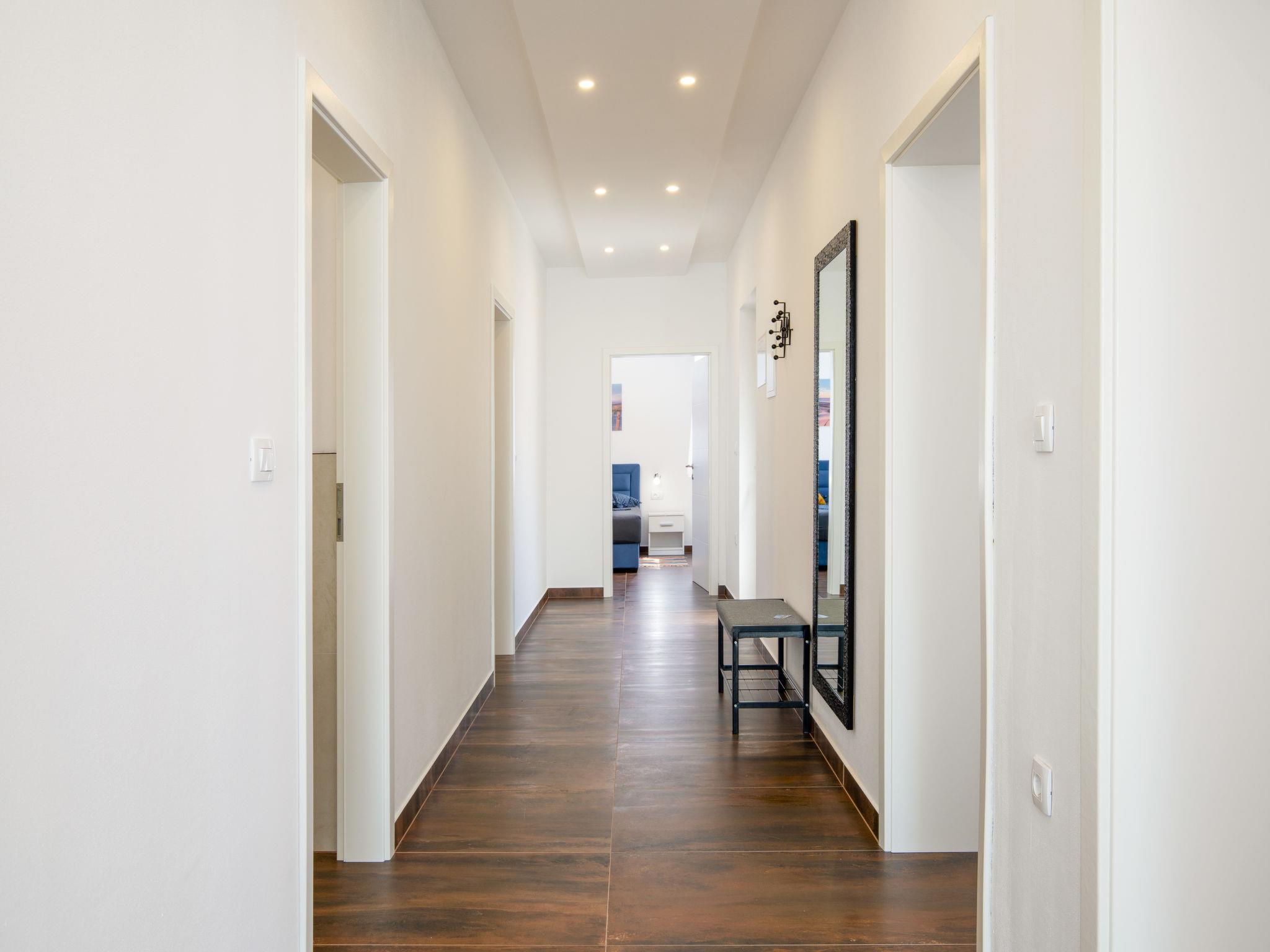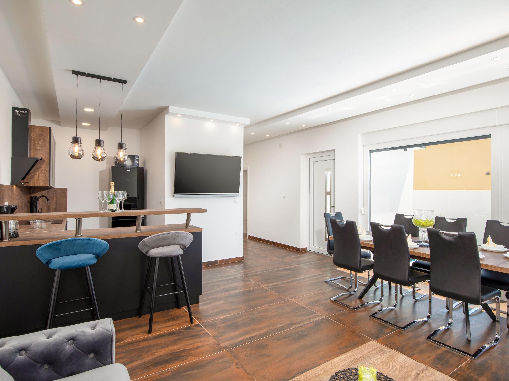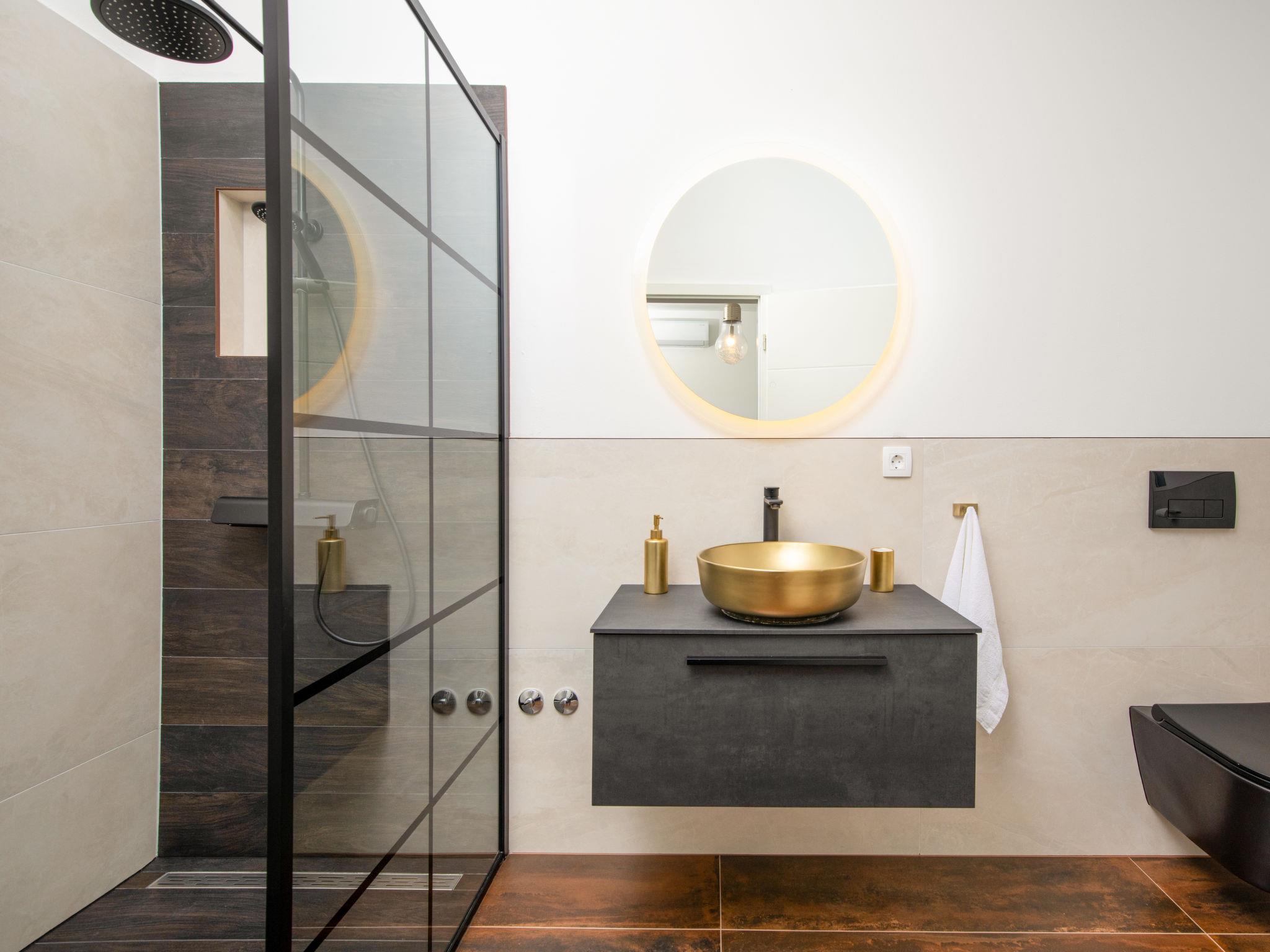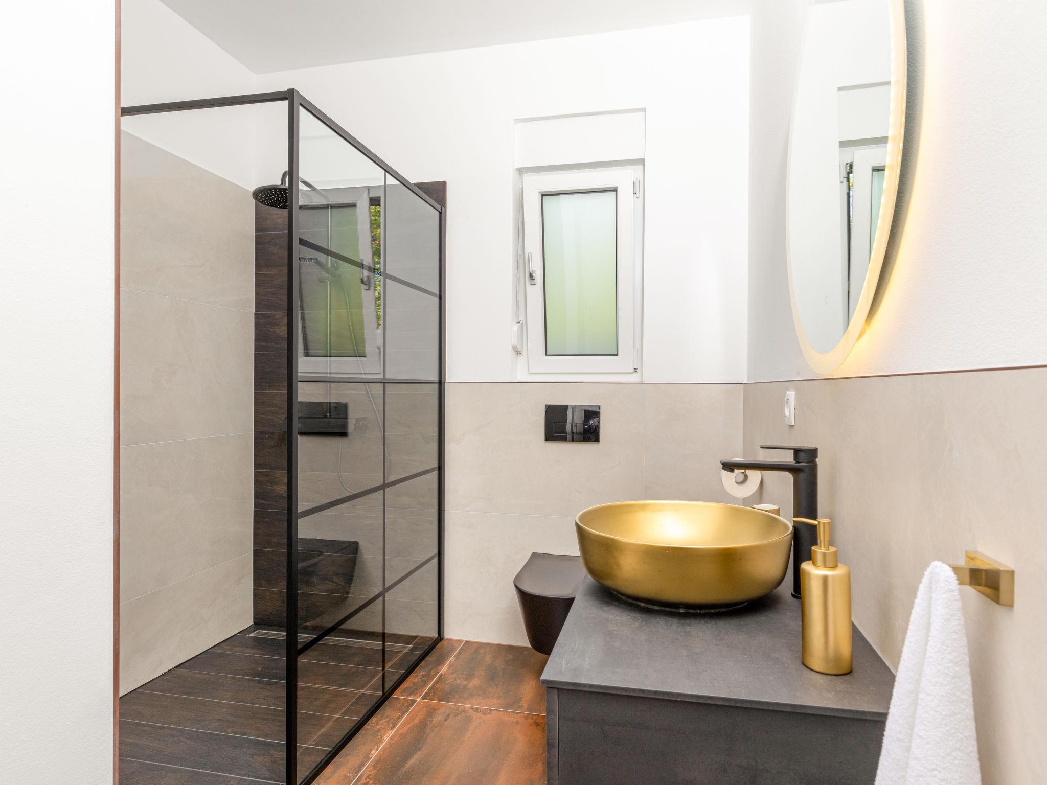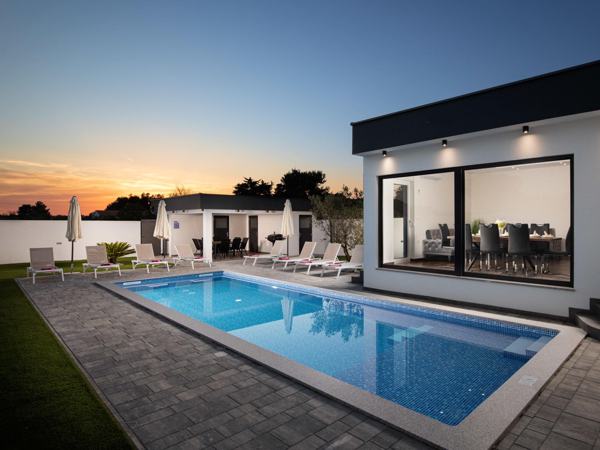 Modern house "L&L". 1.5 km from the centre of Medulin, 10 km from the centre of Pula, in a sunny position, 1.3 km from the sea, 1.3 km from the beach. Private: property 450 m2 (fenced), swimming pool angular, heated (35 m2, depth 140 cm, seasonal availability: 01.May. - 01.Nov.) with internal staircase and salt-electrolysis pool-cleaning system. Outdoor shower, pool house with WC, terrace (20 m2), garden furniture, barbecue. In the house: internet access, air conditioning, washing machine. Parking (for 3 cars) at the house on the premises. Shop 600 m, supermarket 1 km, restaurant 700 m, bus stop 750 m, sandy beach 2 km pebble beach 1.3 km. Surf school 2 km, riding stable 1 km, walking paths from the house 500 m, cycle lane 300 m. Nearby attractions: Amphitheater 10 km. The owner does not accept any youth groups. Swimming pool heated (extra). It is necessary to announce 7 days in advance if the pool heating is required.