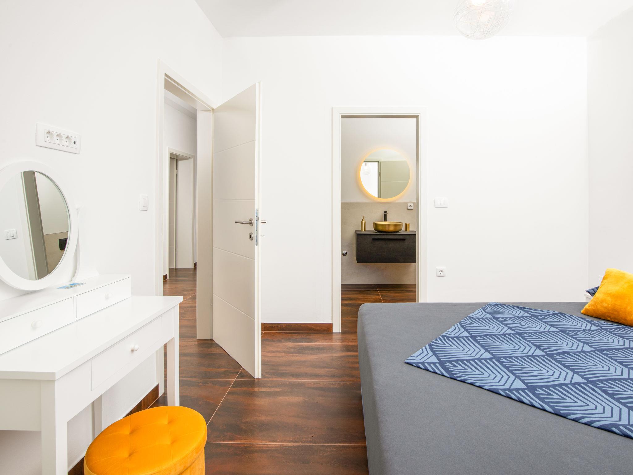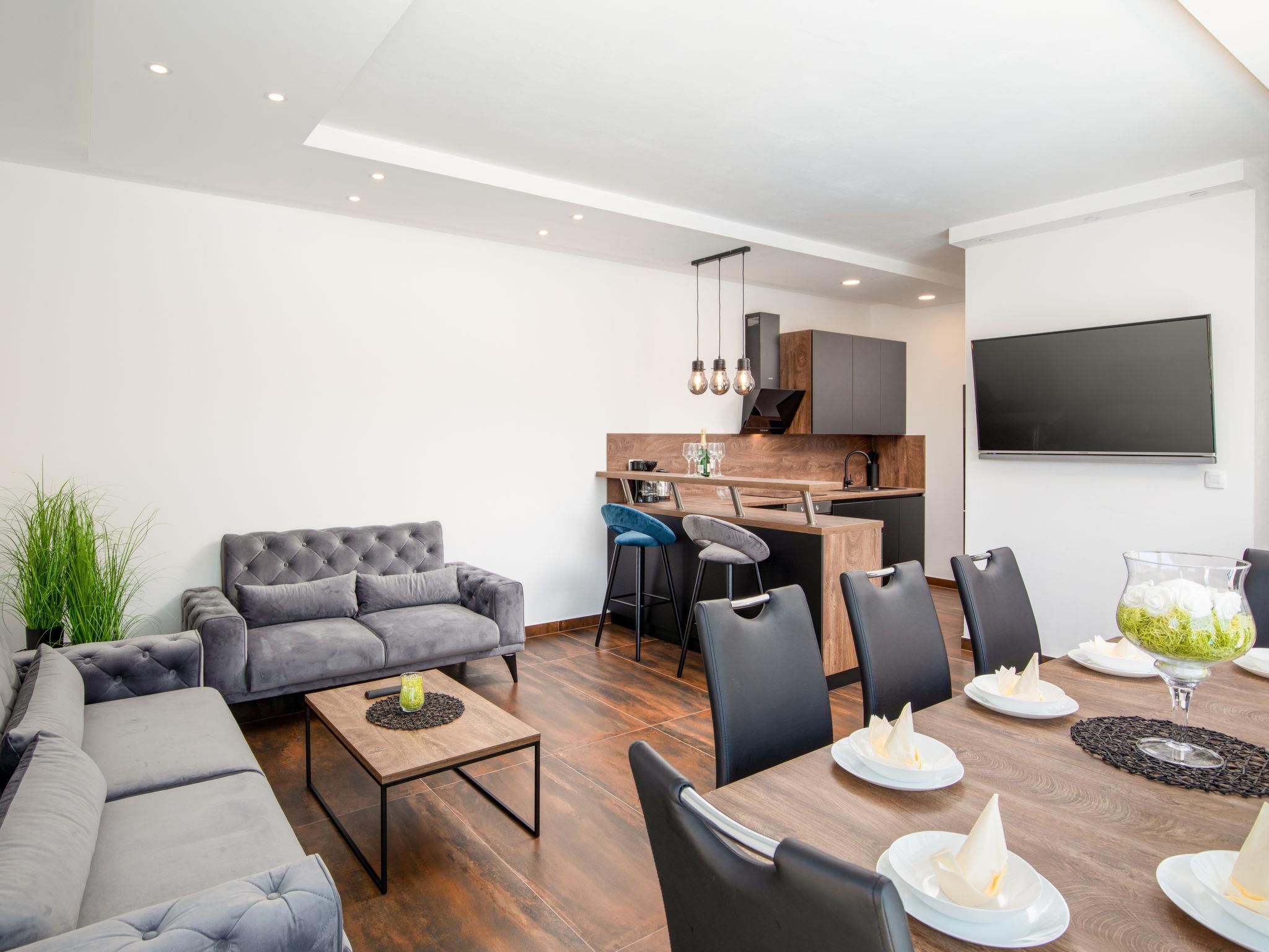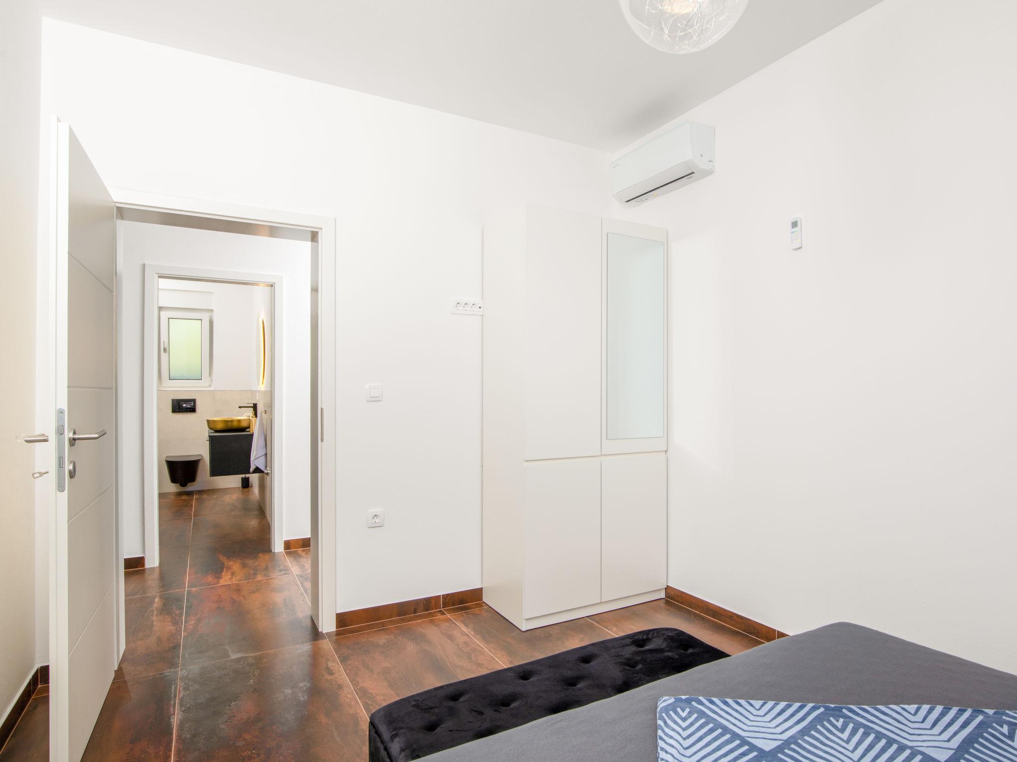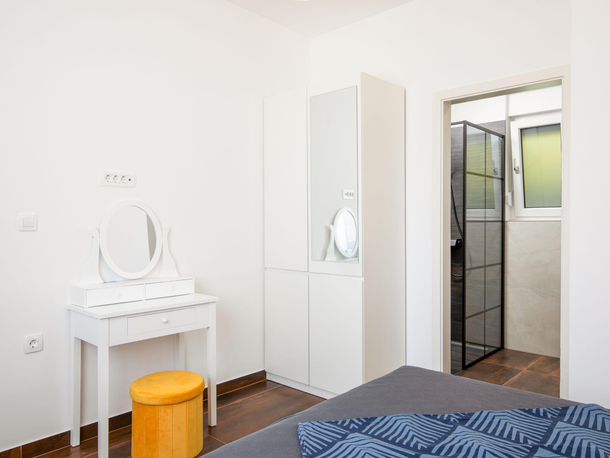 Modern house "L&L". 1.5 km from the centre of Medulin, 10 km from the centre of Pula, in a sunny position, 1.3 km from the sea, 1.3 km from the beach. Private: property 450 m2 (fenced), swimming pool angular, heated (35 m2, depth 140 cm, seasonal availability: 01.May. - 01.Nov.) with internal staircase and salt-electrolysis pool-cleaning system. Outdoor shower, pool house with WC, terrace (20 m2), garden furniture, barbecue. In the house: internet access, air conditioning, washing machine. Parking (for 3 cars) at the house on the premises. Shop 600 m, supermarket 1 km, restaurant 700 m, bus stop 750 m, sandy beach 2 km pebble beach 1.3 km. Surf school 2 km, riding stable 1 km, walking paths from the house 500 m, cycle lane 300 m. Nearby attractions: Amphitheater 10 km. The owner does not accept any youth groups. Swimming pool heated (extra). It is necessary to announce 7 days in advance if the pool heating is required.