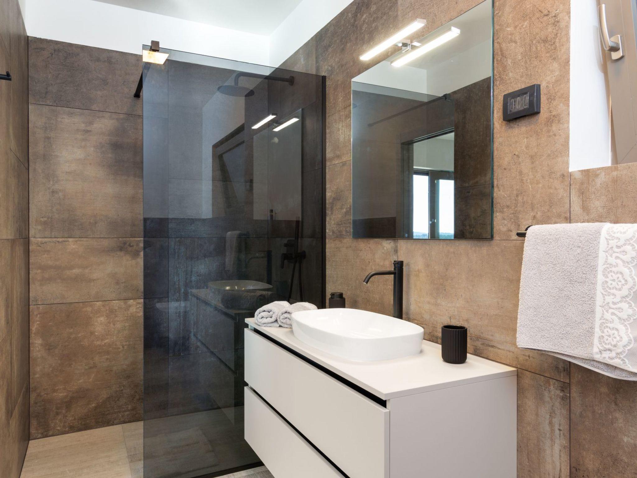 On the high first floor there is a laundry room and three more comfortable bedrooms - all with double beds (180x200), its own bathroom and balcony with partial sea-view.