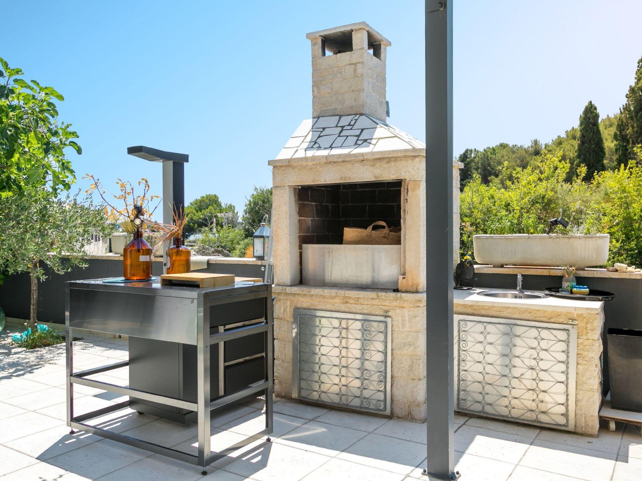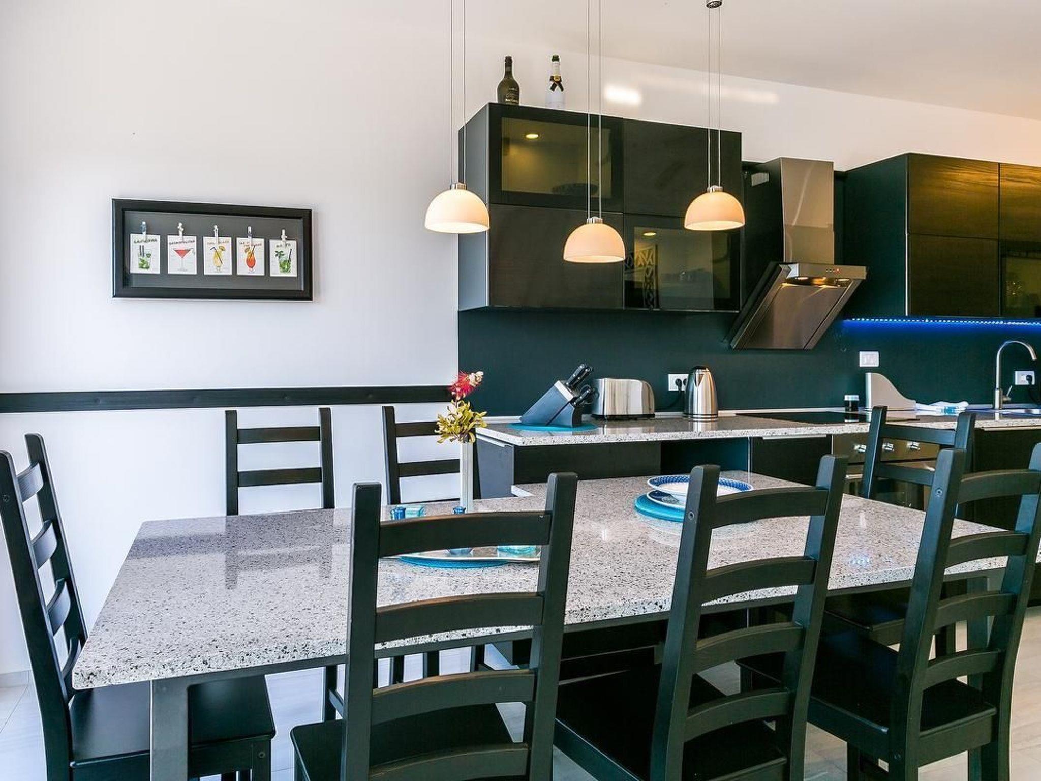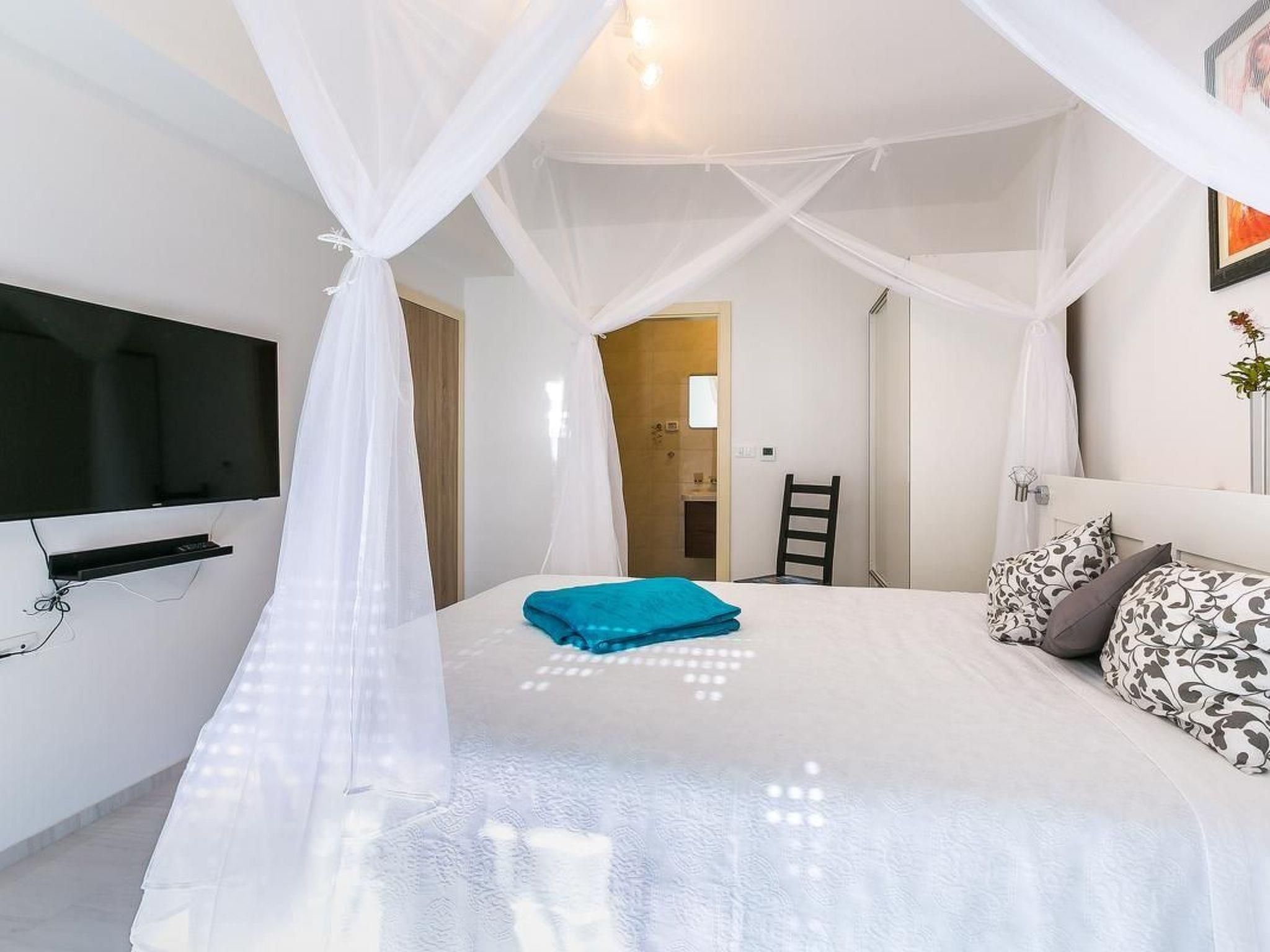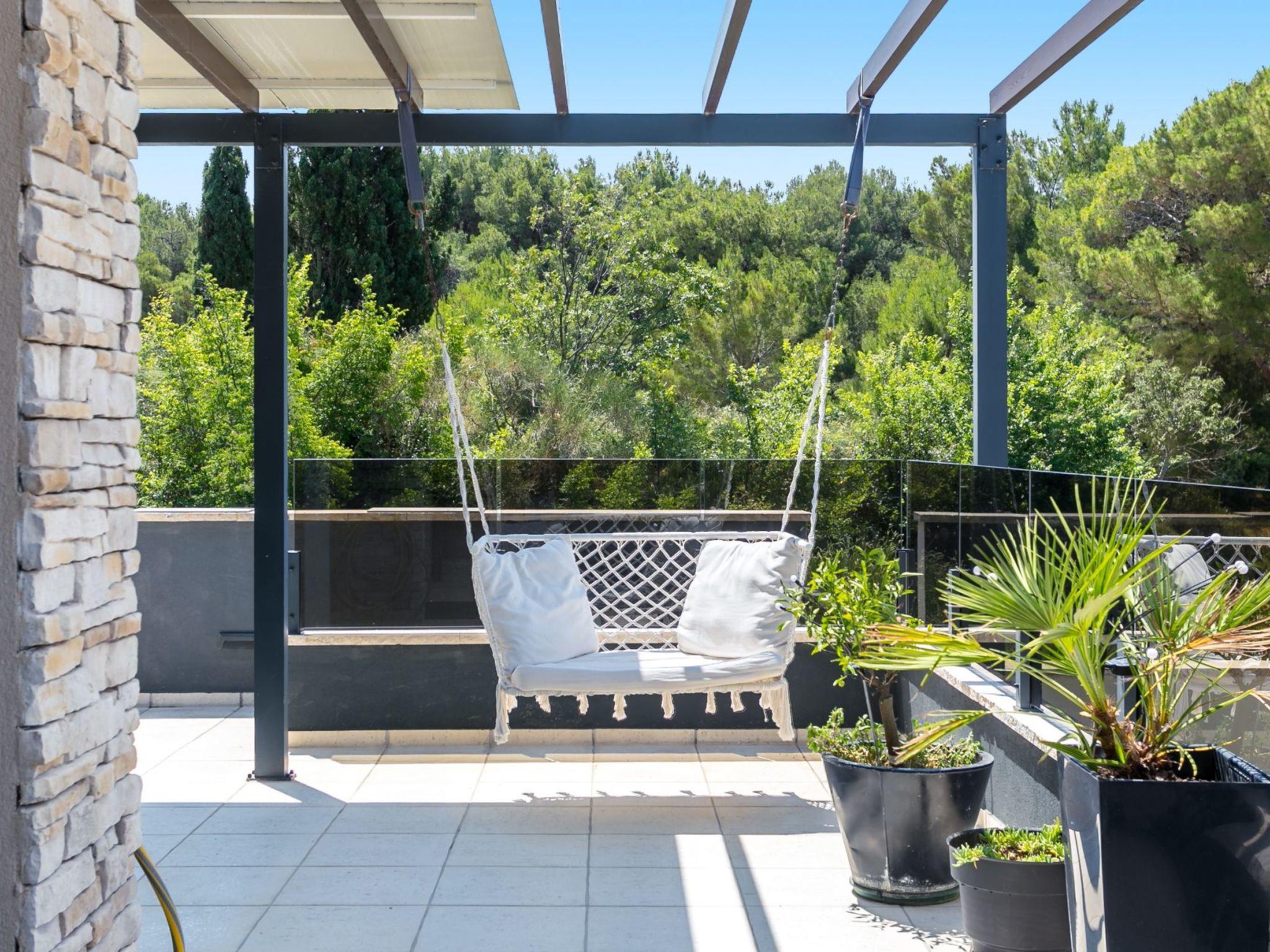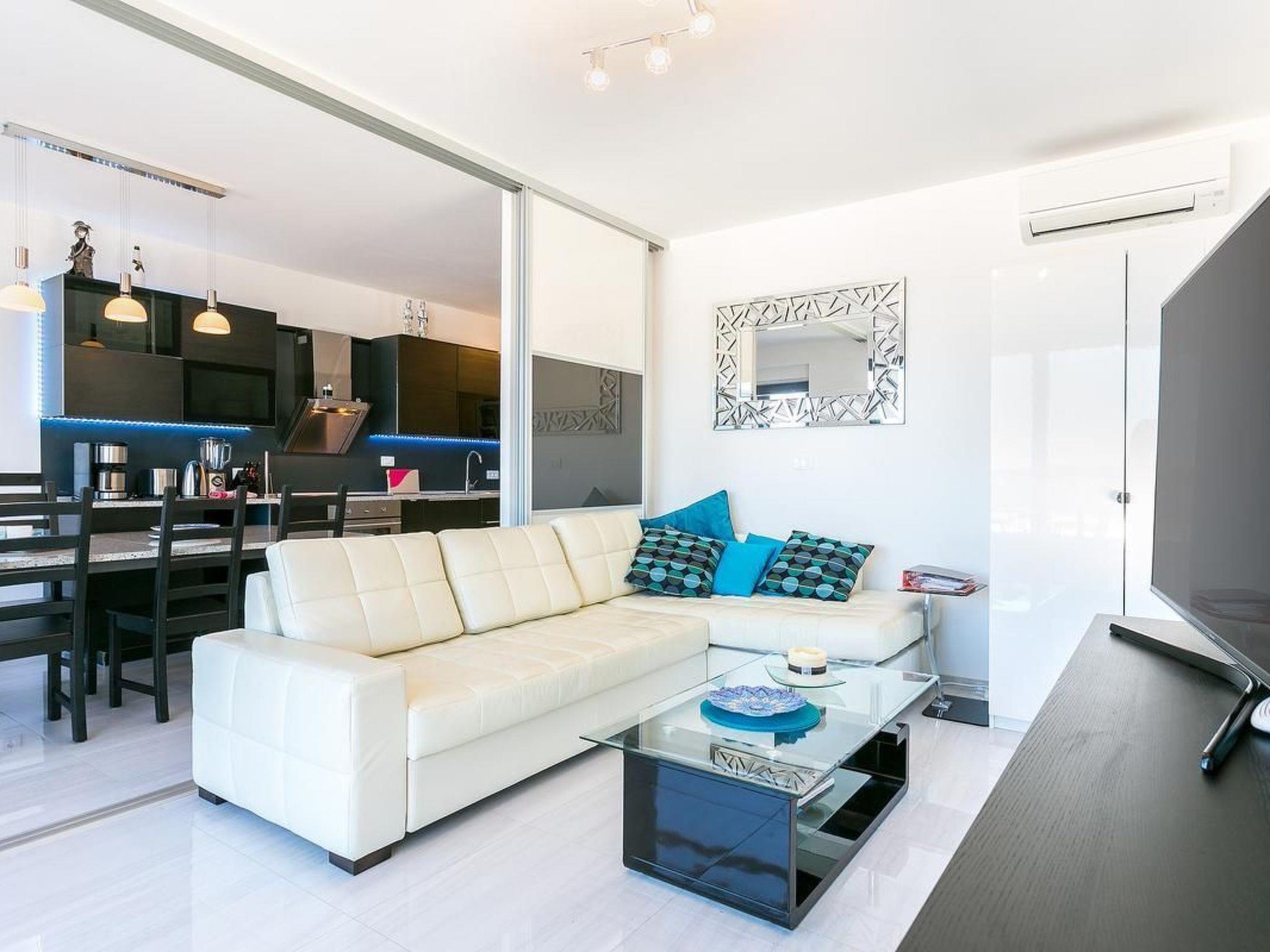 The kitchen has everything necessary for preparing a nice meal: electric stove with oven, microwave, big fridge with freezer, dishwasher, toaster, water heater, filter coffee machine, dishes and cutlery. Highlight of the apartment is the 80 m² big terrace where you will surely enjoy making barbecue with your friends, and bonus is a communal swimming pool where you can freshen' up during those hot summer days. You also have WiFi, washer/dryer and one parking space. Pets are not allowed. Bed sheets and towels are included in the price. From 2025, Clients have direct access to the sea(no bathing area) from terrace. Convenient for those who have a SUP, inflatable boat, rowing boat, canoe etc.