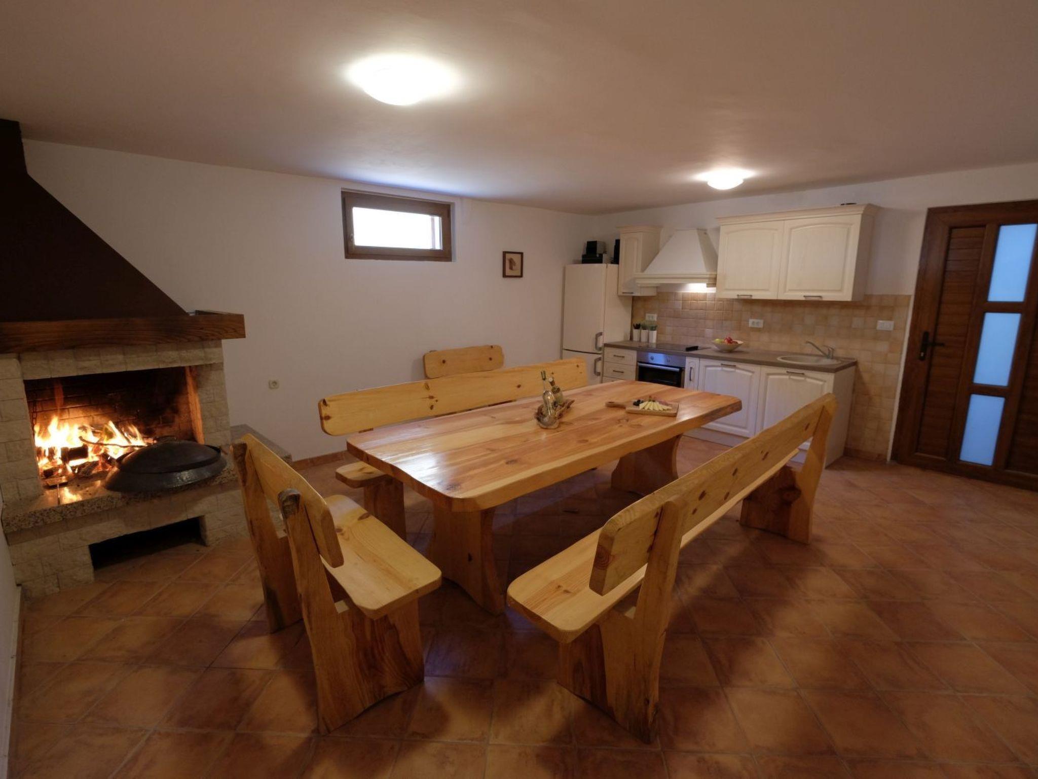 Your private pool is surrounded by sun loungers and a pool umbrella. Not only children will appreciate the play area in the garden, with a slide and swing set, garden trampoline, basketball hoop, darts board and table tennis. Next to it the roofed summer kitchen (30m2) invites you with wooden benches, a large wooden table and a tranditional stone grill for long evenings outside around the barbecue. The pool can be illuminated at night so you can enjoy a swim under the starry sky.