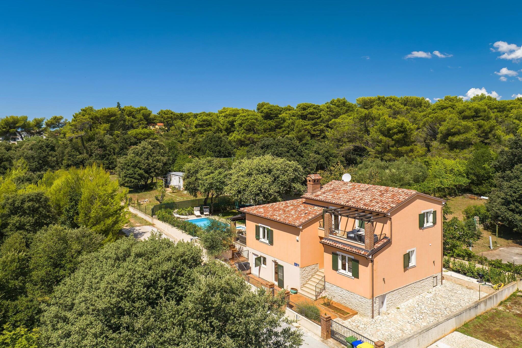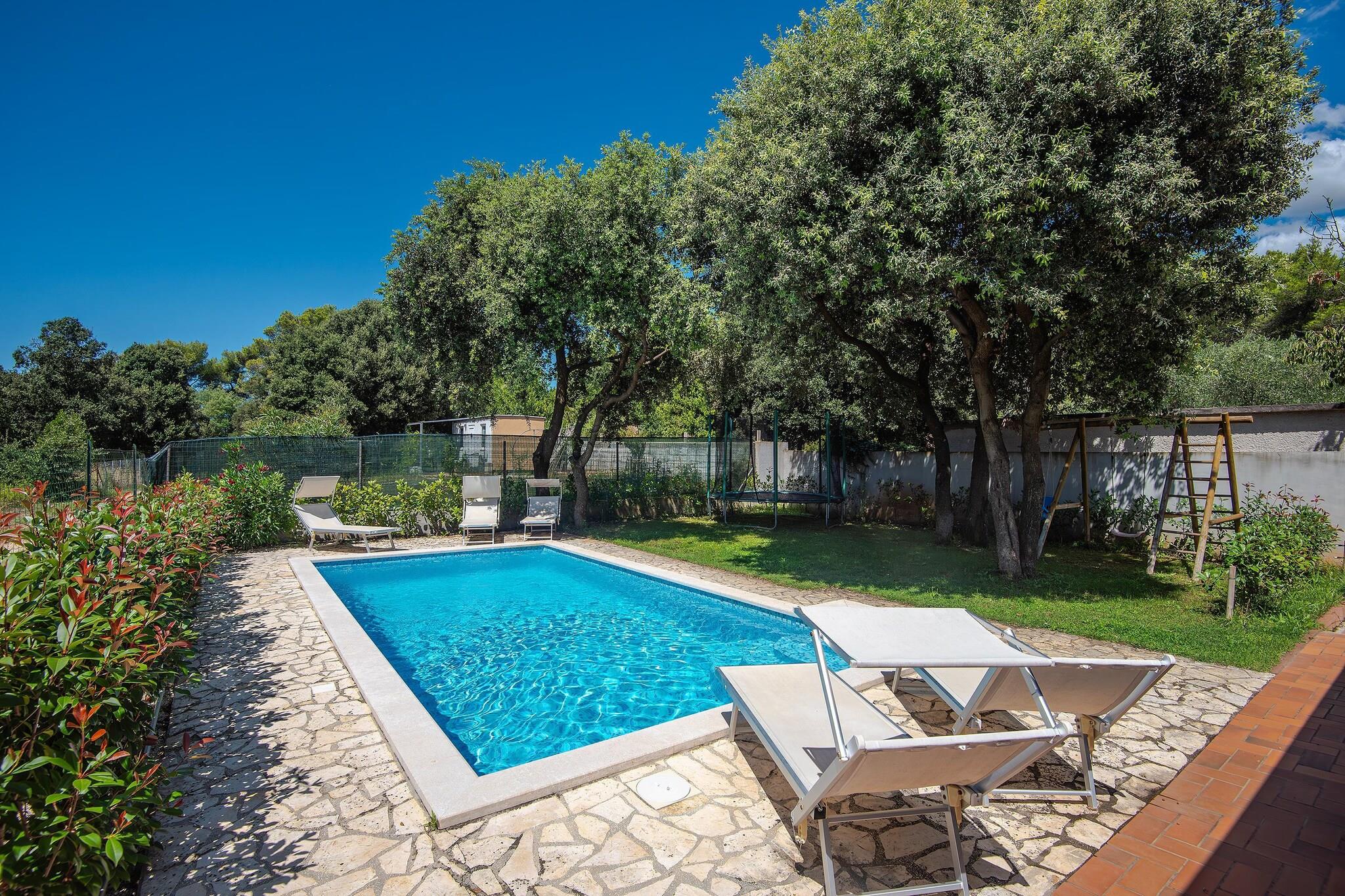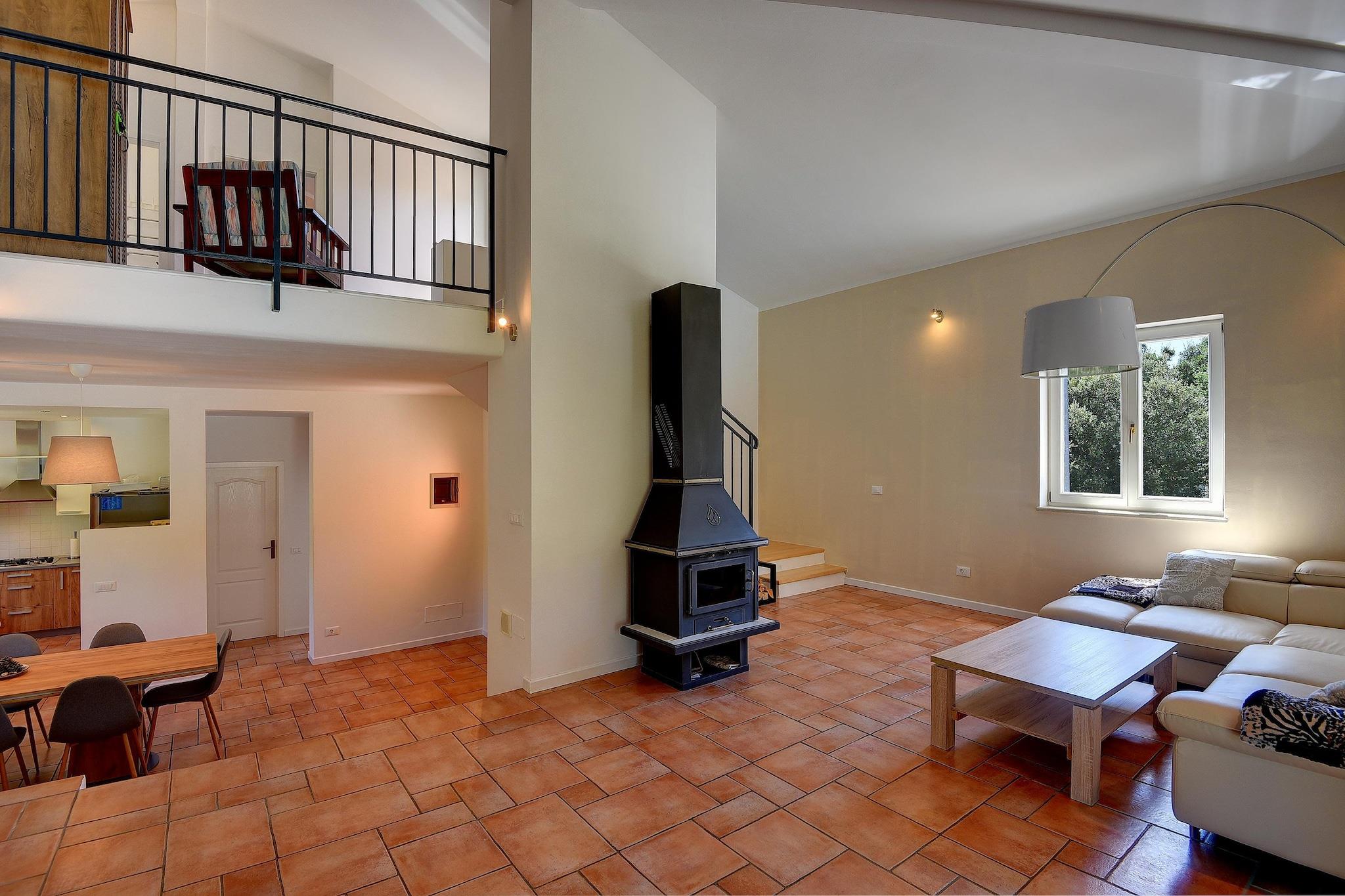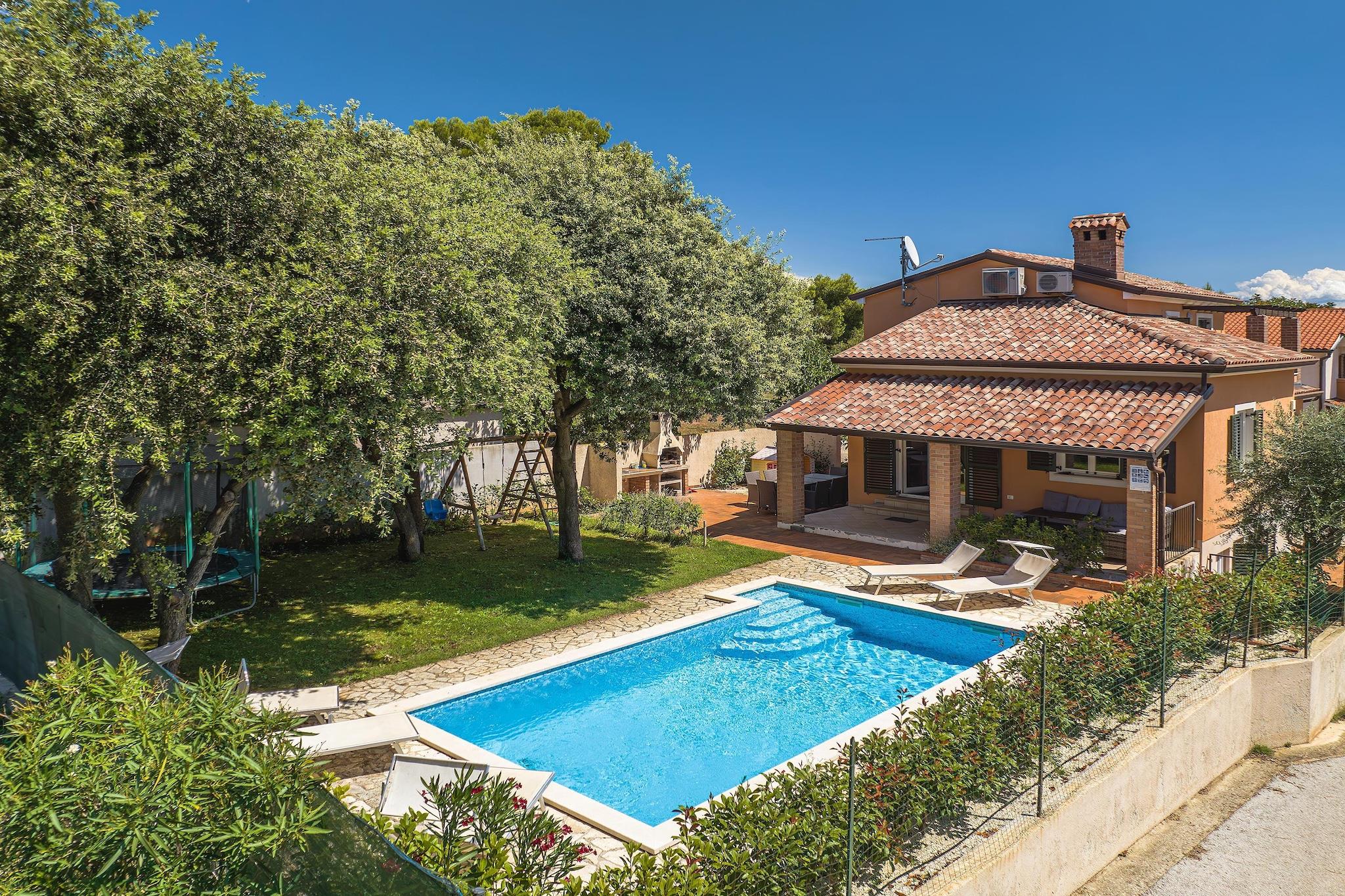 Stueetage: (Stue(Fjernsyn(fladskærm, parabol), sofahjørne), spisestue(spisebord(8 personer)), Køkken(komfur, kaffemaskine, mikrobølgeovn, opvaskemaskine , køle-fryseskab, , Wine glasses), soveværelse(dobbeltseng, Fjernsyn(fladskærm, parabol)), terrasse(privat)) På 1. etage: (soveværelse(dobbeltseng), soveværelse(køjeseng, Fjernsyn(fladskærm, parabol)), badeværelse(bruser, håndvask, toilet)) Loft: (soveværelse(dobbeltseng, Fjernsyn(fladskærm, parabol)), badeværelse(badekar med bruser, håndvask, toilet), balkon) bruser(udendørs), klimaanlæg, terrasse(privat), have(privat), havemøbler, solstole, grill, parkering, liggestole, swimmingpool(privat, opvarmet), legeredskaber, dart, strygebræt, strygejern, loungemøbler,
