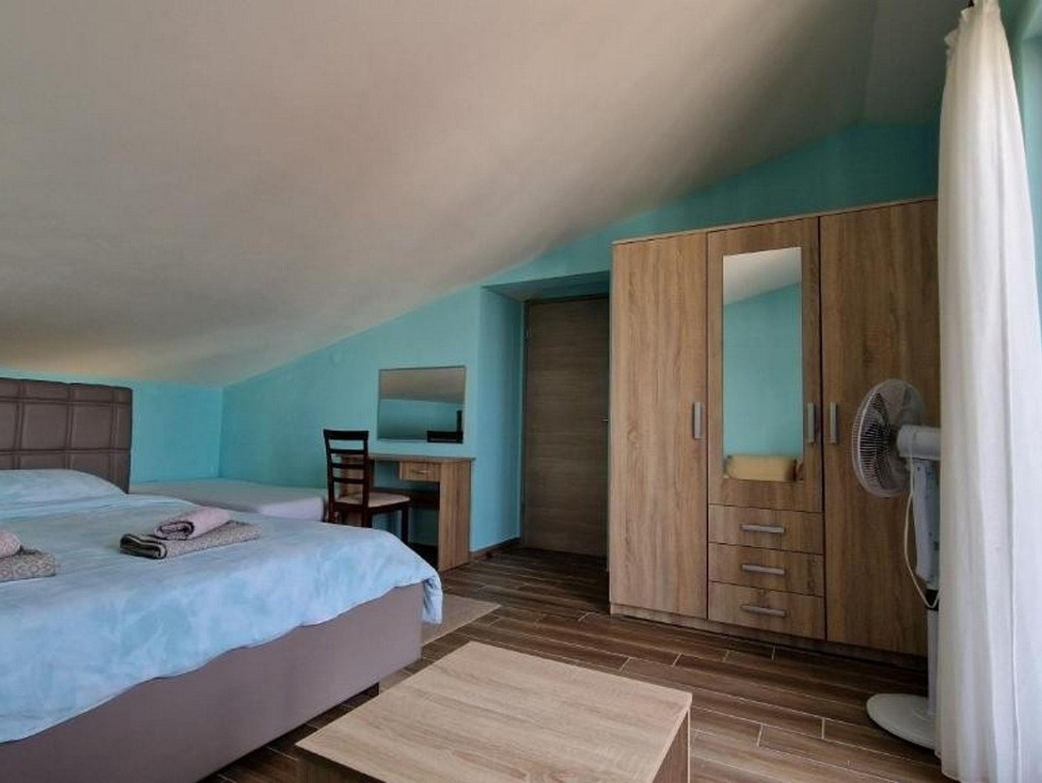 Ferienwohnung bietet Platz für 7 Gäste. Die Betten sind in Schlafzimmern, die es 3 gibt, innerhalb einer Gesamtfläche von 101m2, angeordnet. Die Gäste haben eine eigene Terrasse zur Verfügung, auf der sie in warmen Sommernächten genießen können. Das Apartment bietet Meerblick. Es ist erlaubt, Speisen auf dem Gemeinschafts-Grill vorzubereiten. In der Unterkunftseinheit besteht die Möglichkeit des Mitbringens von Haustieren gegen Aufpreis. In der gebuchten Unterkunftseinheit zahlt man am Ort ein Depositum ( der Preis ist an der Internetseite angeführt ). IM PREIS INBEGRIFFEN: Kurtaxe, Endreinigung, Klimatisierung, Parkplatz, Internet, Zusatzbett, Föhn. VERBINDLICHE ZUSÄTZLICHE KOSTEN: Kaution (100,00 € Einmalzahlung). UNVERBINDLICHE ZUSÄTZLICHE KOSTEN: Haustiere (15,00 € pro Nacht). Die Verfügbarkeit zusätzlicher Dienstleistungen in Ihrem reservierten Termin und die Preise derselben (falls nicht aufgeführt) müssen im Voraus überprüft werden. Zusätzliche Dienstleistungen die in der Zahlungsaufforderung nicht aufgeführt sind werden direkt beim Vermieter bezahlt, angenommen der Gast nutzt auch diese. Ermäßigung auf den Grundpreis: Gratistag 21=19 (bei einem Aufenthalt von 21 Tagen oder mehr erhalten Sie 2 Gratistage für den Aufenthalt bis 31.12.26).