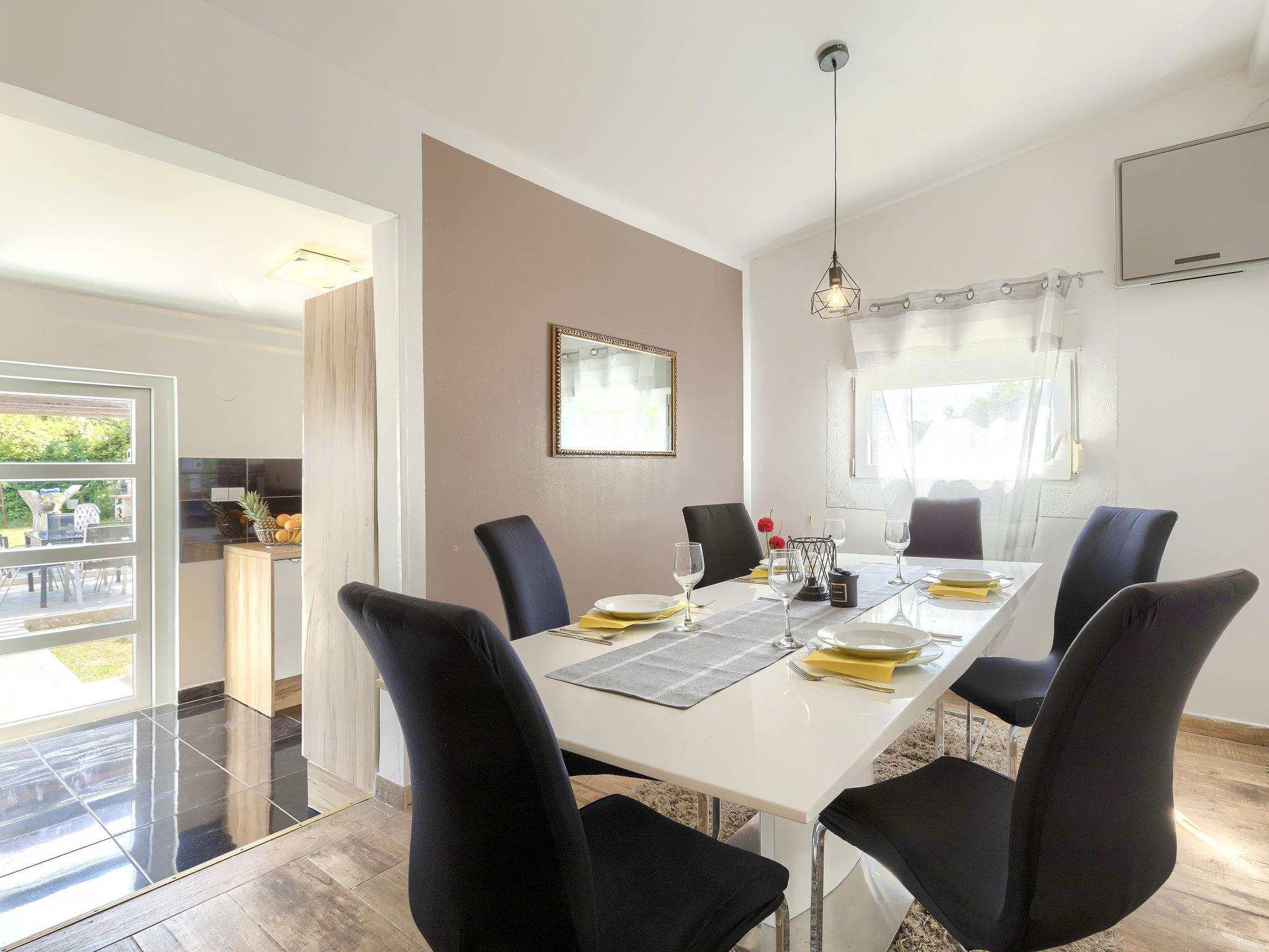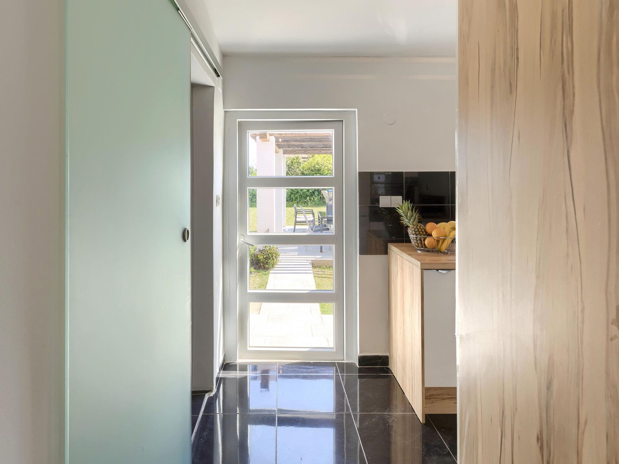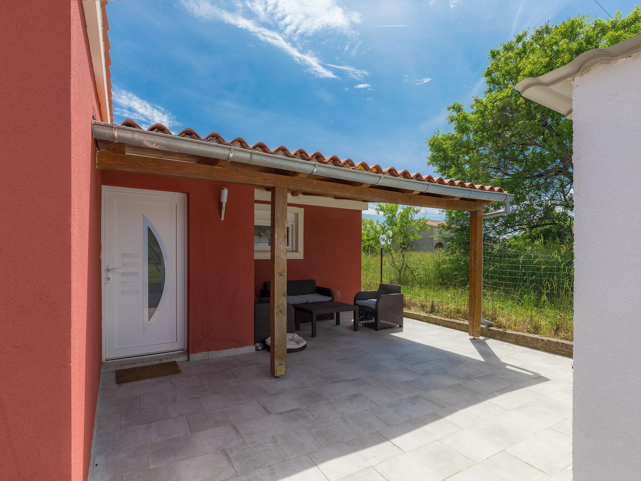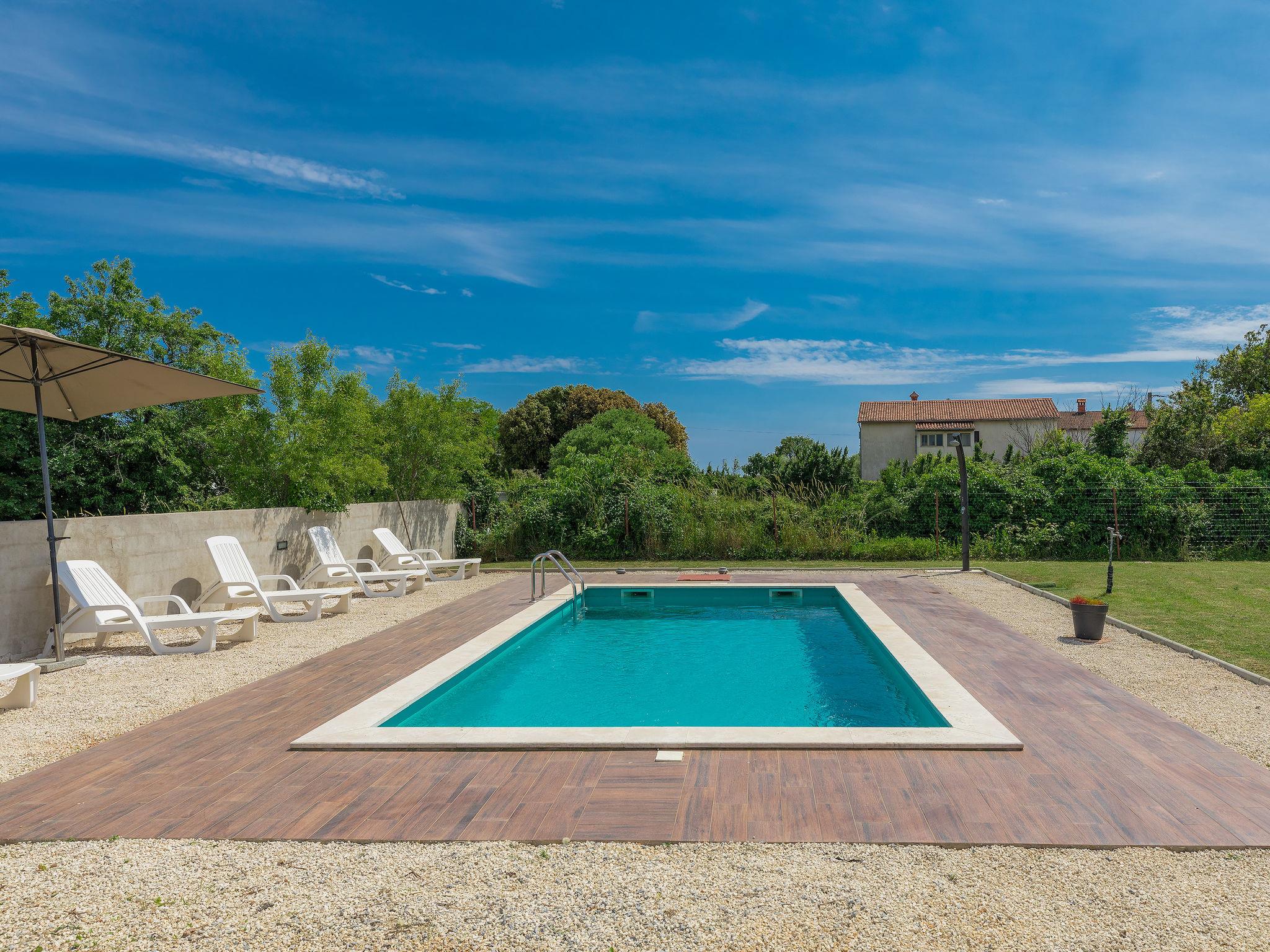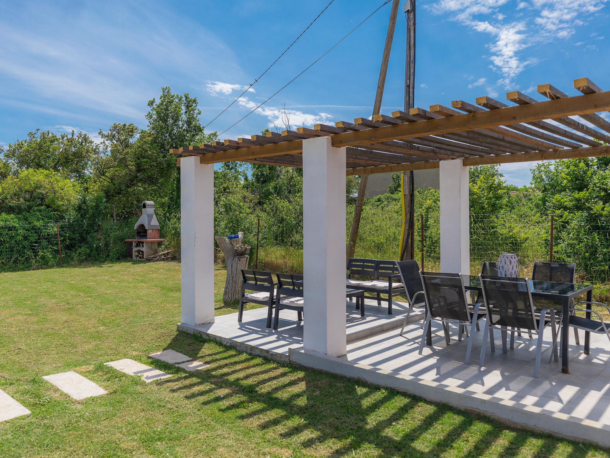 Šišan 4 km from Medulin: Single-family house "Alma". 900 m from the centre of Šišan, 8 km from the centre of Pula, in a quiet, sunny position, 2 km from the sea, 2 km from the beach. Private: property 1'500 m2 (fenced), garden with lawn, swimming pool angular (6 x 4 m, depth 150 cm, seasonal availability: 27.Apr. - 28.Sep.). Outdoor shower, terrace (20 m2), garden furniture, barbecue, children's playground (swing). In the house: internet access, washing machine. Motor access to the house (100 m via unmade road). Parking (for 3 cars) at the house on the premises. Shop 800 m, supermarket 6 km, restaurant, bus stop 650 m, pebble beach 2 km, rocky beach 2 km. Surf school 4 km, sailing school 4 km, tennis 6 km, riding stable 1 km, walking paths from the house 100 m, cycle lane 150 m. Available: jet ski scooter (on request, extra).