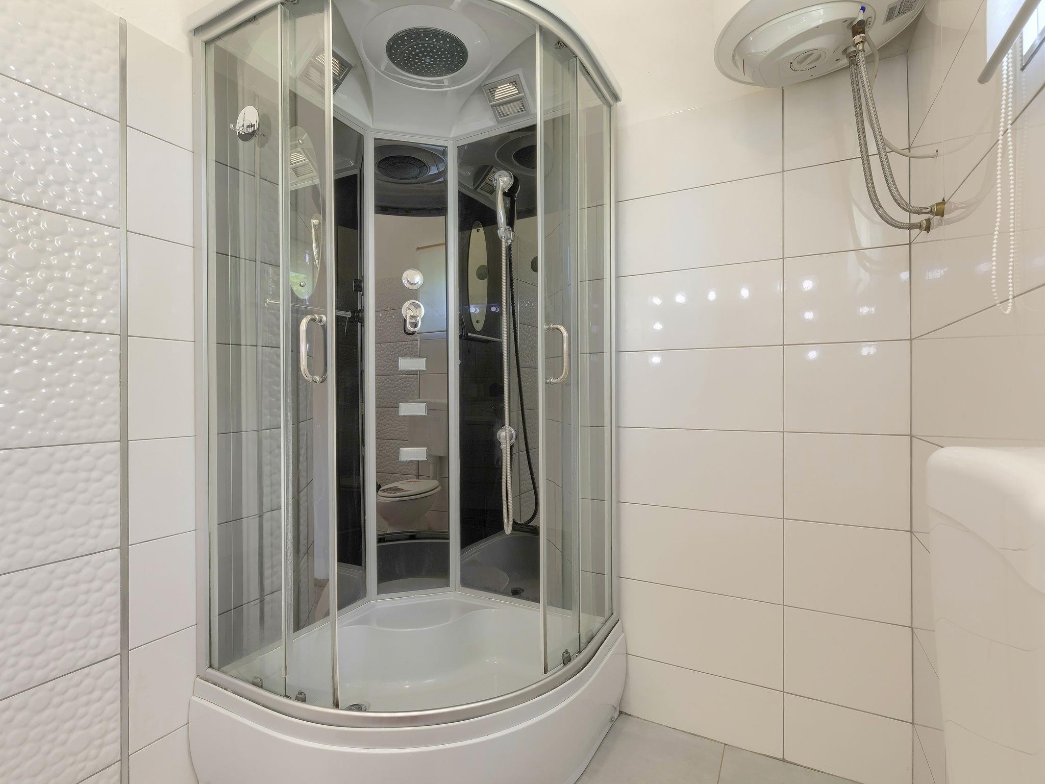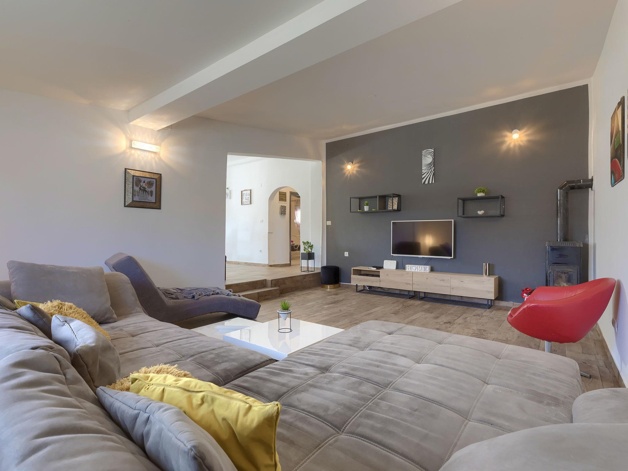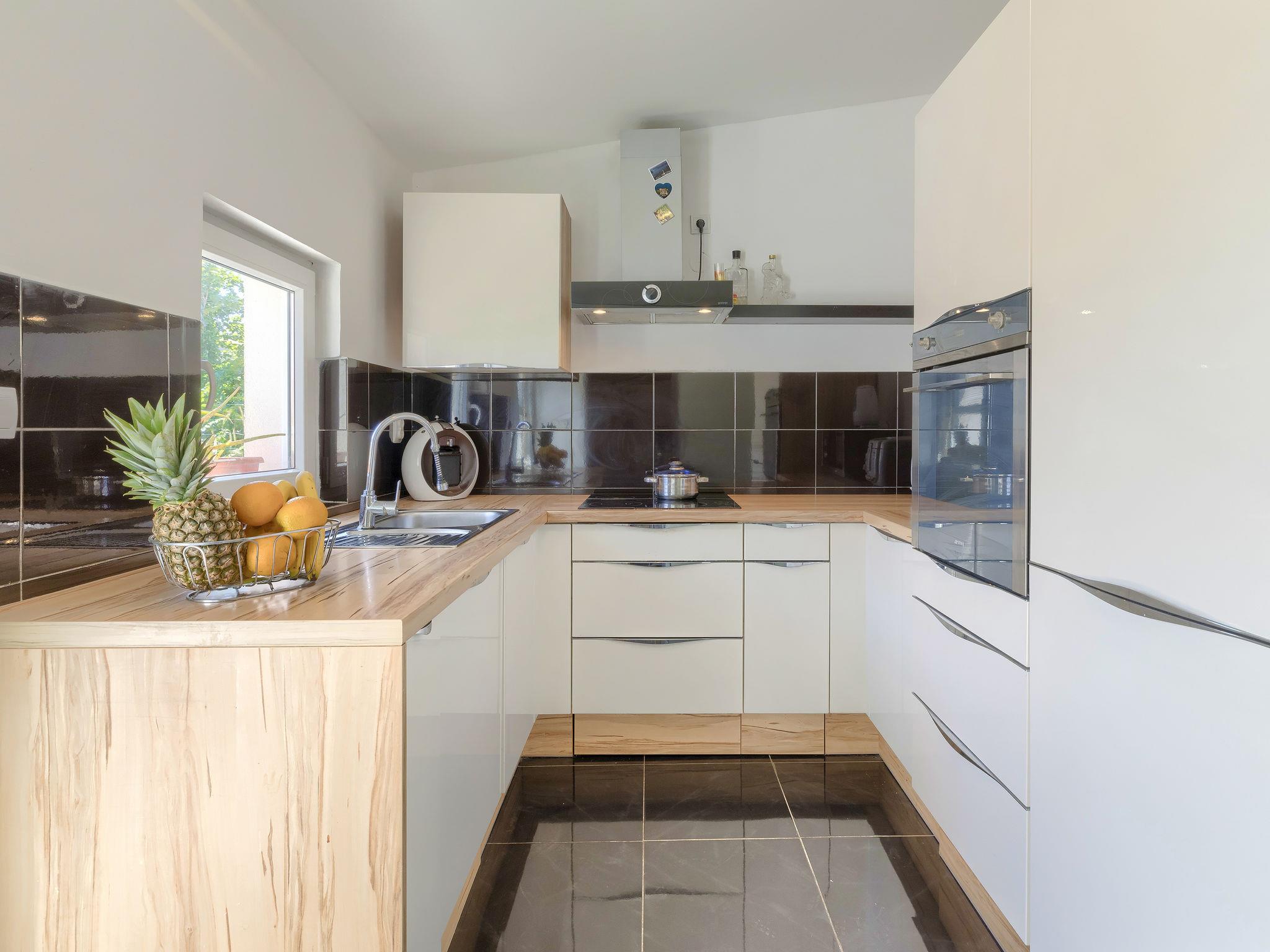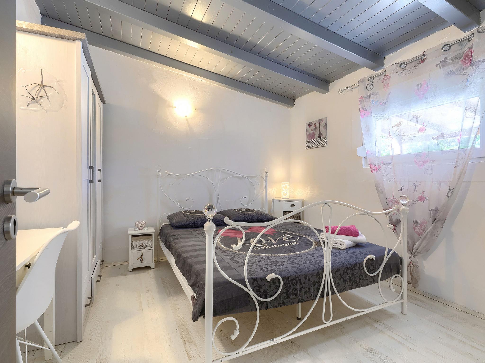 Šišan 4 km from Medulin: Single-family house "Alma". 900 m from the centre of Šišan, 8 km from the centre of Pula, in a quiet, sunny position, 2 km from the sea, 2 km from the beach. Private: property 1'500 m2 (fenced), garden with lawn, swimming pool angular (6 x 4 m, depth 150 cm, seasonal availability: 27.Apr. - 28.Sep.). Outdoor shower, terrace (20 m2), garden furniture, barbecue, children's playground (swing). In the house: internet access, washing machine. Motor access to the house (100 m via unmade road). Parking (for 3 cars) at the house on the premises. Shop 800 m, supermarket 6 km, restaurant, bus stop 650 m, pebble beach 2 km, rocky beach 2 km. Surf school 4 km, sailing school 4 km, tennis 6 km, riding stable 1 km, walking paths from the house 100 m, cycle lane 150 m. Available: jet ski scooter (on request, extra).