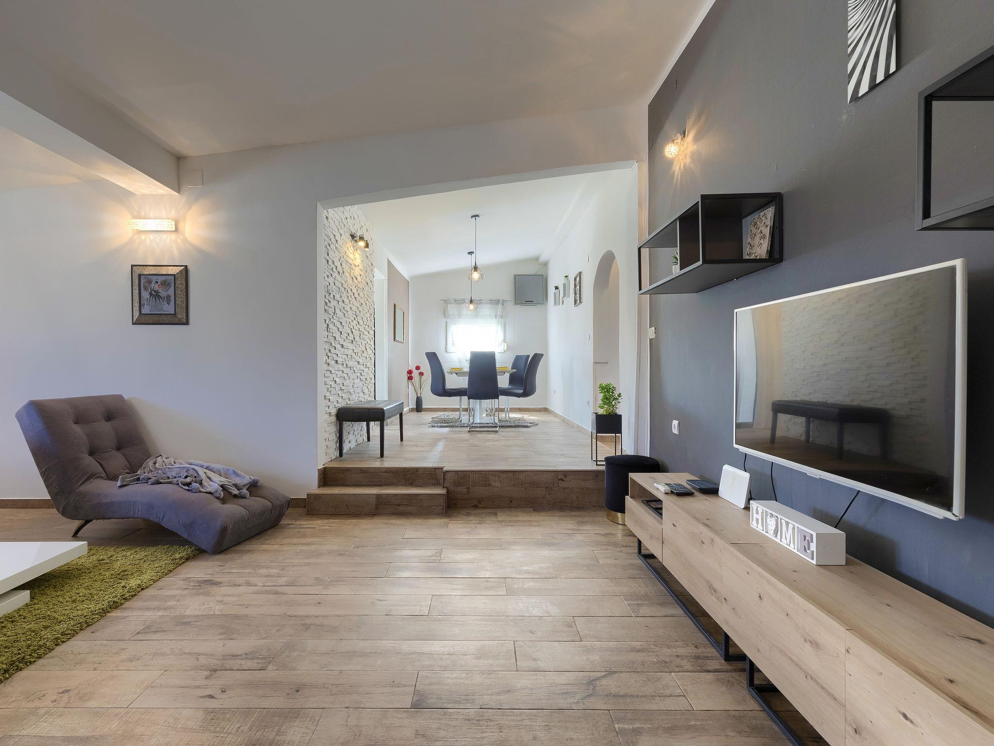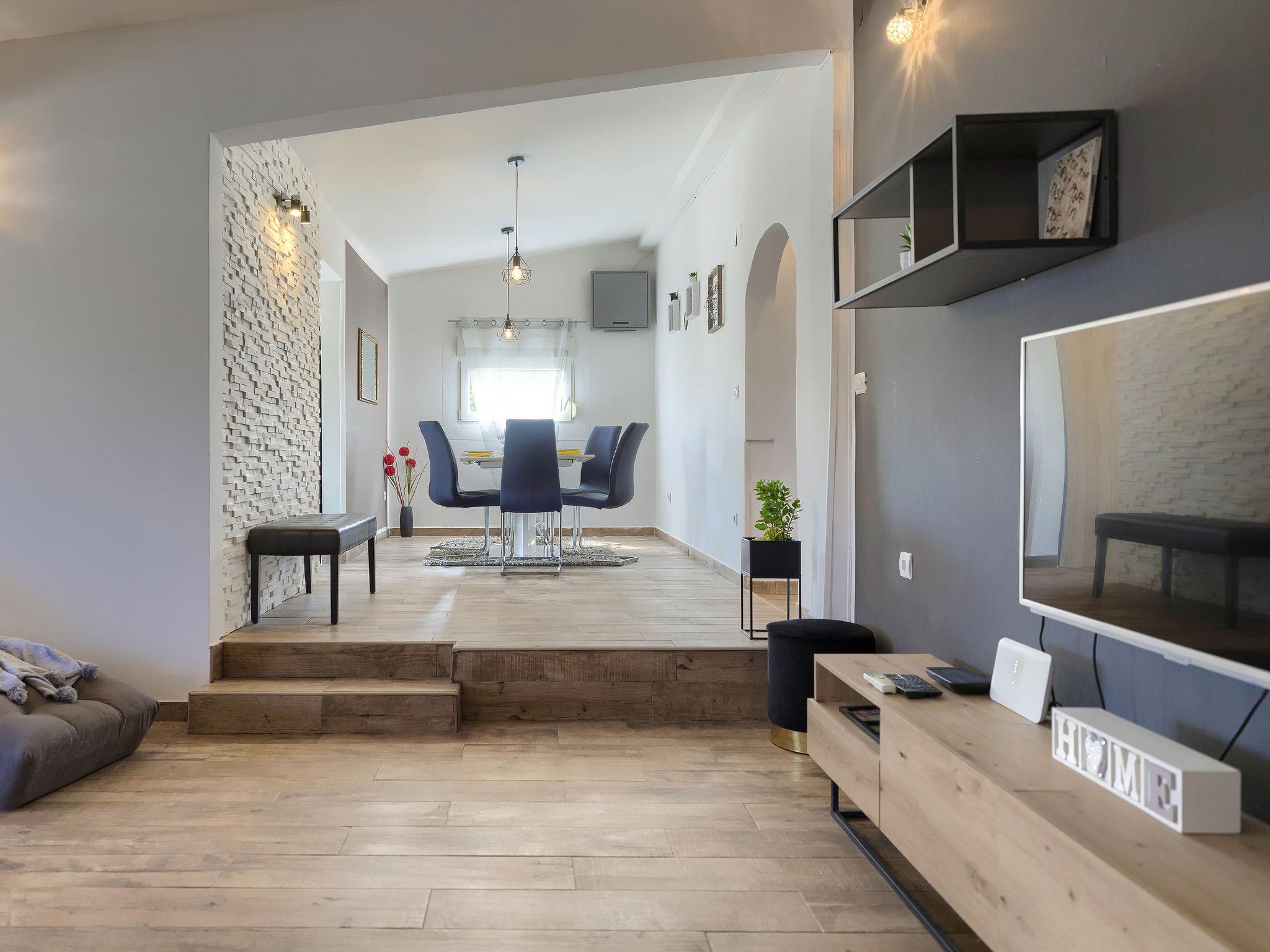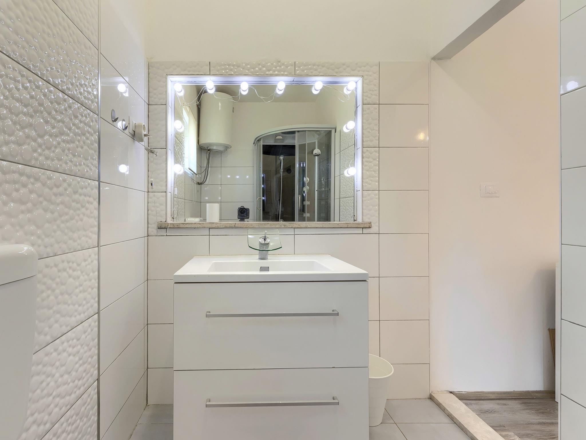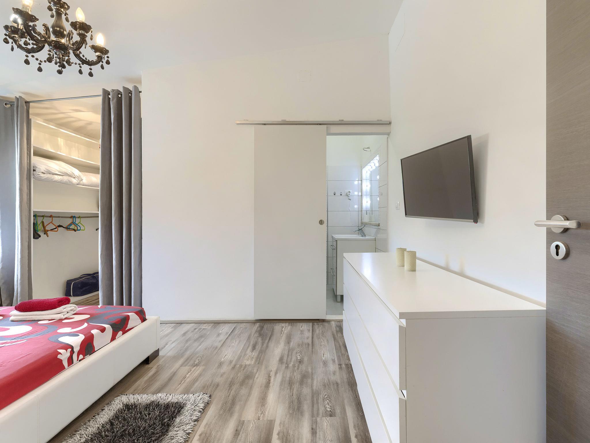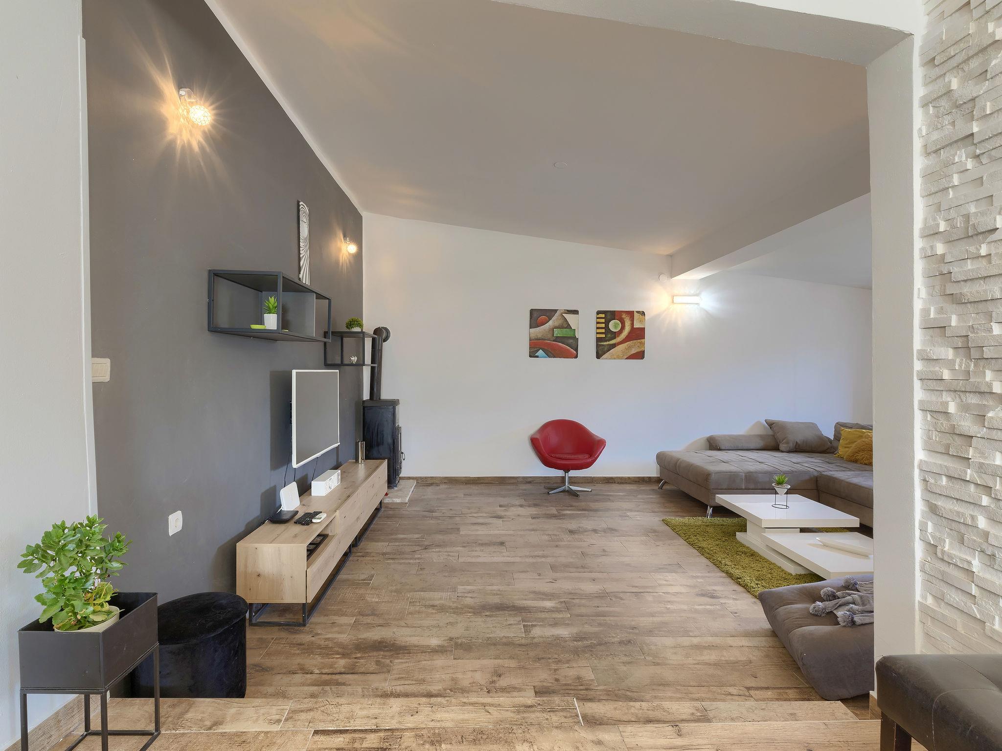 Šišan 4 km from Medulin: Single-family house "Alma". 900 m from the centre of Šišan, 8 km from the centre of Pula, in a quiet, sunny position, 2 km from the sea, 2 km from the beach. Private: property 1'500 m2 (fenced), garden with lawn, swimming pool angular (6 x 4 m, depth 150 cm, seasonal availability: 27.Apr. - 28.Sep.). Outdoor shower, terrace (20 m2), garden furniture, barbecue, children's playground (swing). In the house: internet access, washing machine. Motor access to the house (100 m via unmade road). Parking (for 3 cars) at the house on the premises. Shop 800 m, supermarket 6 km, restaurant, bus stop 650 m, pebble beach 2 km, rocky beach 2 km. Surf school 4 km, sailing school 4 km, tennis 6 km, riding stable 1 km, walking paths from the house 100 m, cycle lane 150 m. Available: jet ski scooter (on request, extra).