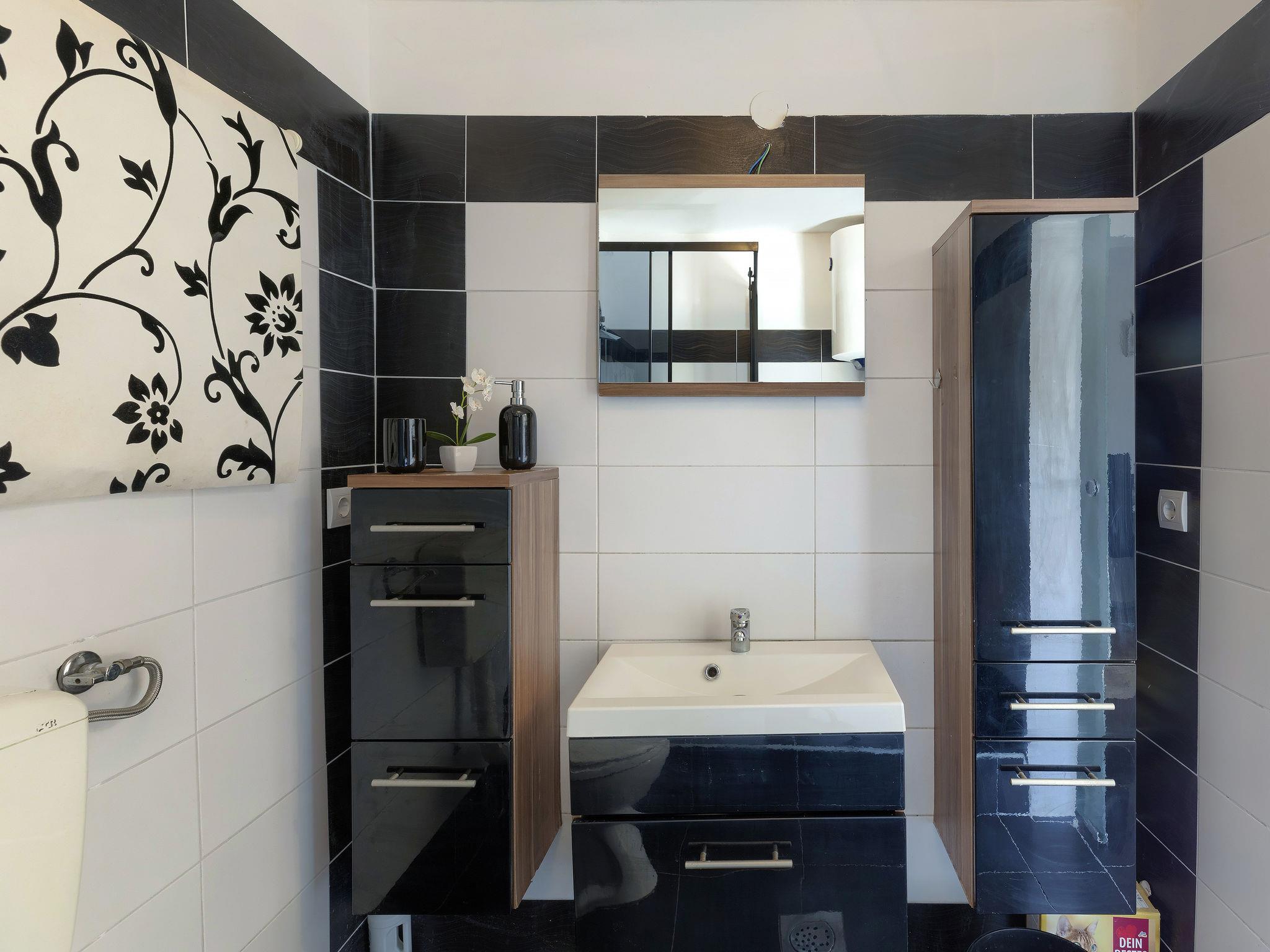 4-room house 120 m2. Beautiful furnishings: living/dining room 42 m2 with cable TV and international TV channels (flat screen), air conditioning. Exit to the garden, to the swimming pool. 2 rooms, each room with 1 french bed (180 cm, length 200 cm), cable TV and international TV channels (flat screen), air conditioning. 1 room with 1 french bed (180 cm, length 200 cm), shower/WC, cable TV and international TV channels (flat screen), air conditioning. Open kitchen (oven, dishwasher, 4 ceramic glass hob hotplates, microwave, freezer, electric coffee machine). Shower/WC. Deck chairs. View of the swimming pool. Facilities: baby cot, hair dryer. Internet (WiFi, free).