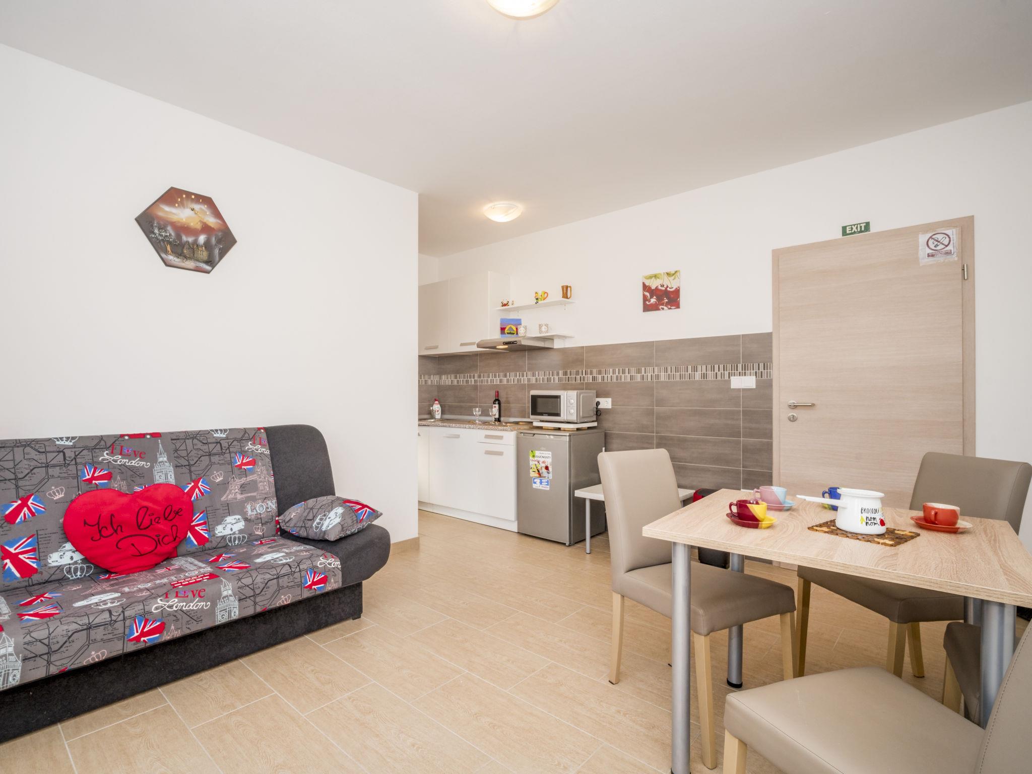 Ližnjan 2 km from Medulin: Apartment house "B&B". 300 m from the centre of Ližnjan, in a quiet, sunny position, 1 km from the sea, 1 km from the beach. For shared use: property 800 m2, small garden with lawn and plants. Terrace (10 m2), garden furniture, barbecue (swing). In the house: internet access, trampoline, washing machine (for shared use, extra). Parking at the house on the premises. Shop, restaurant 100 m, bus stop 400 m, sandy beach 1.5 km pebble beach 1 km, rocky beach 1 km. Golf course (18 hole) 30 km, tennis 100 m, riding stable 1.5 km, walking paths from the house 100 m, cycle lane 150 m.