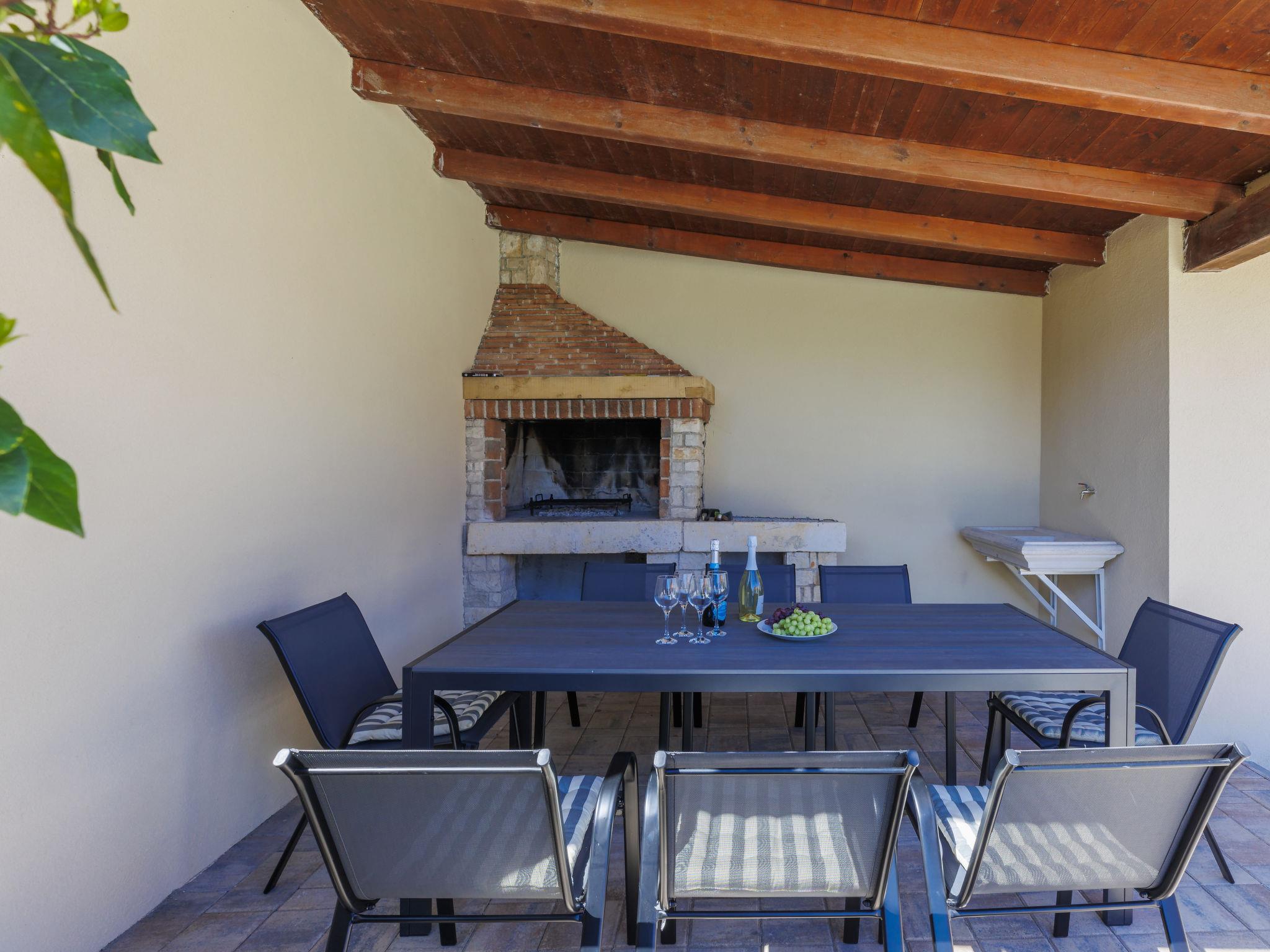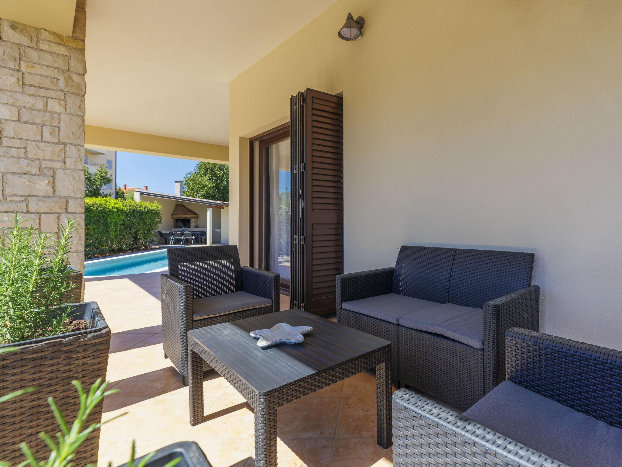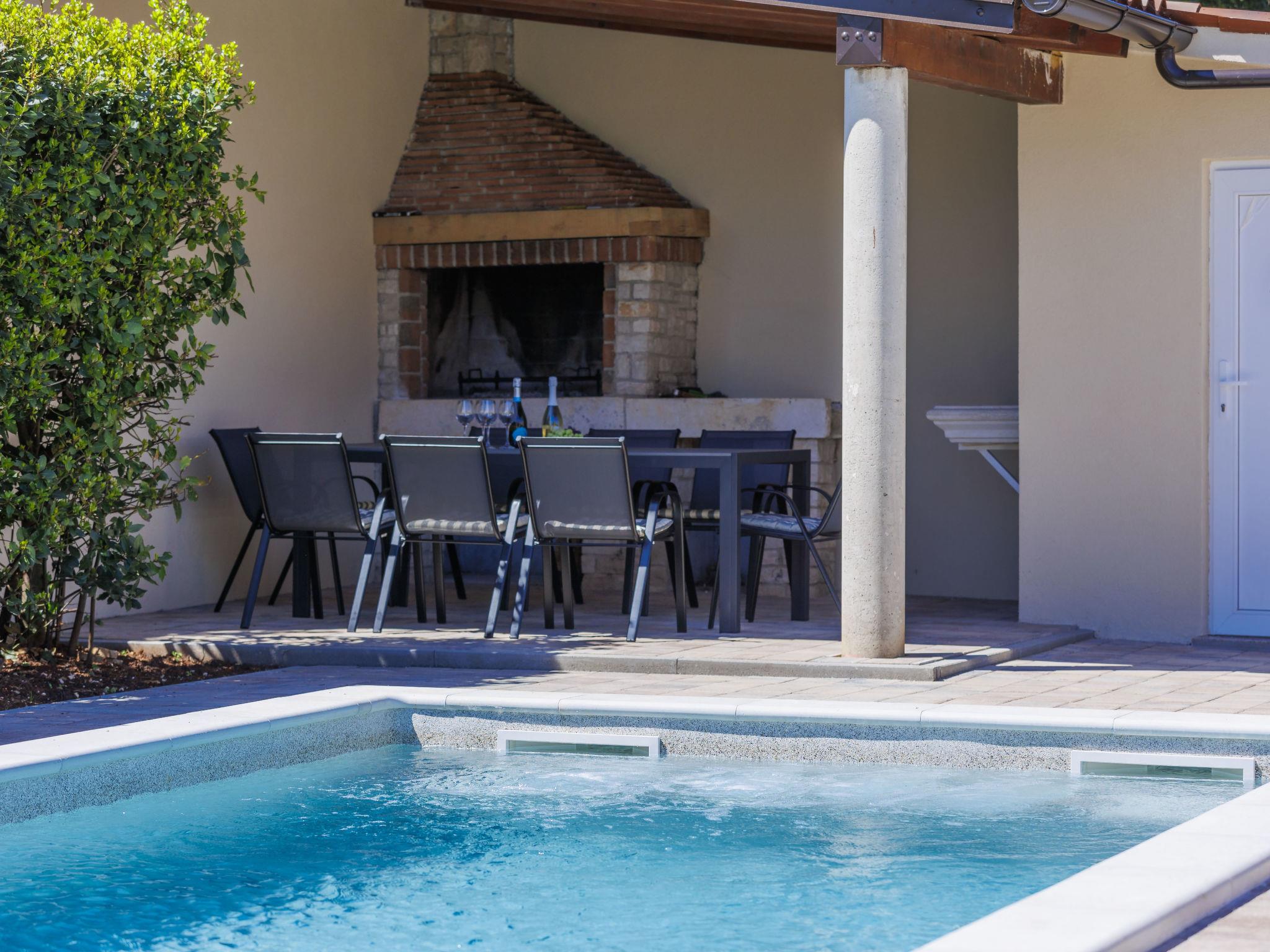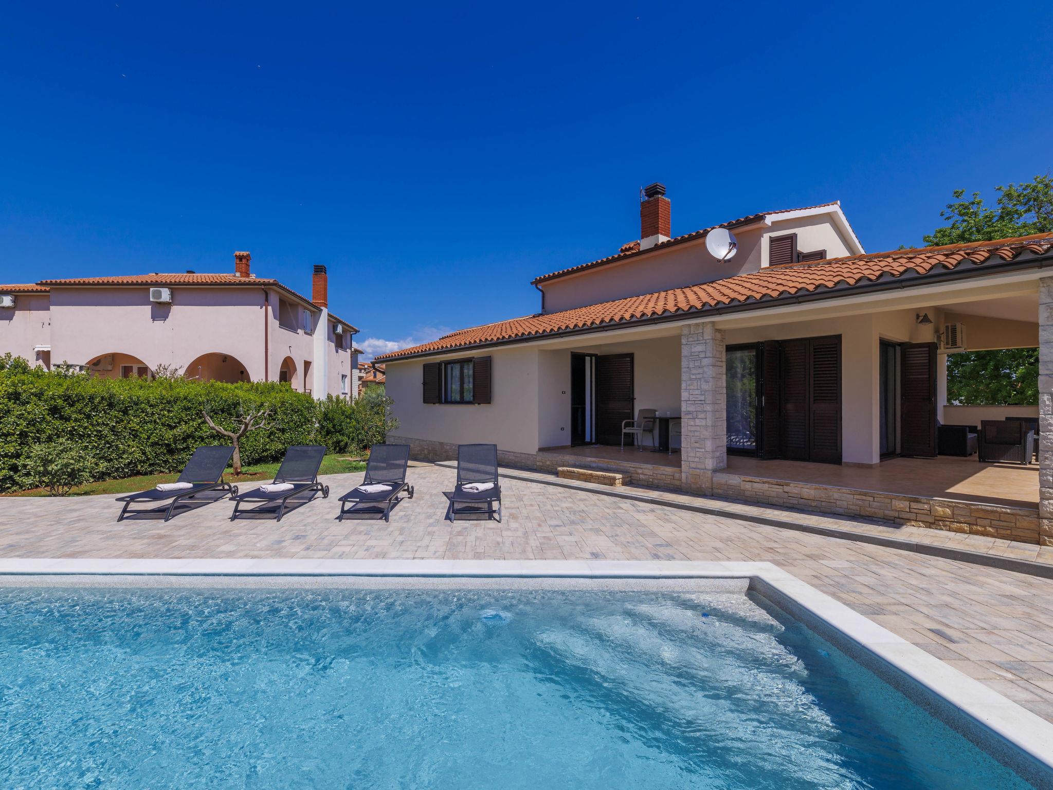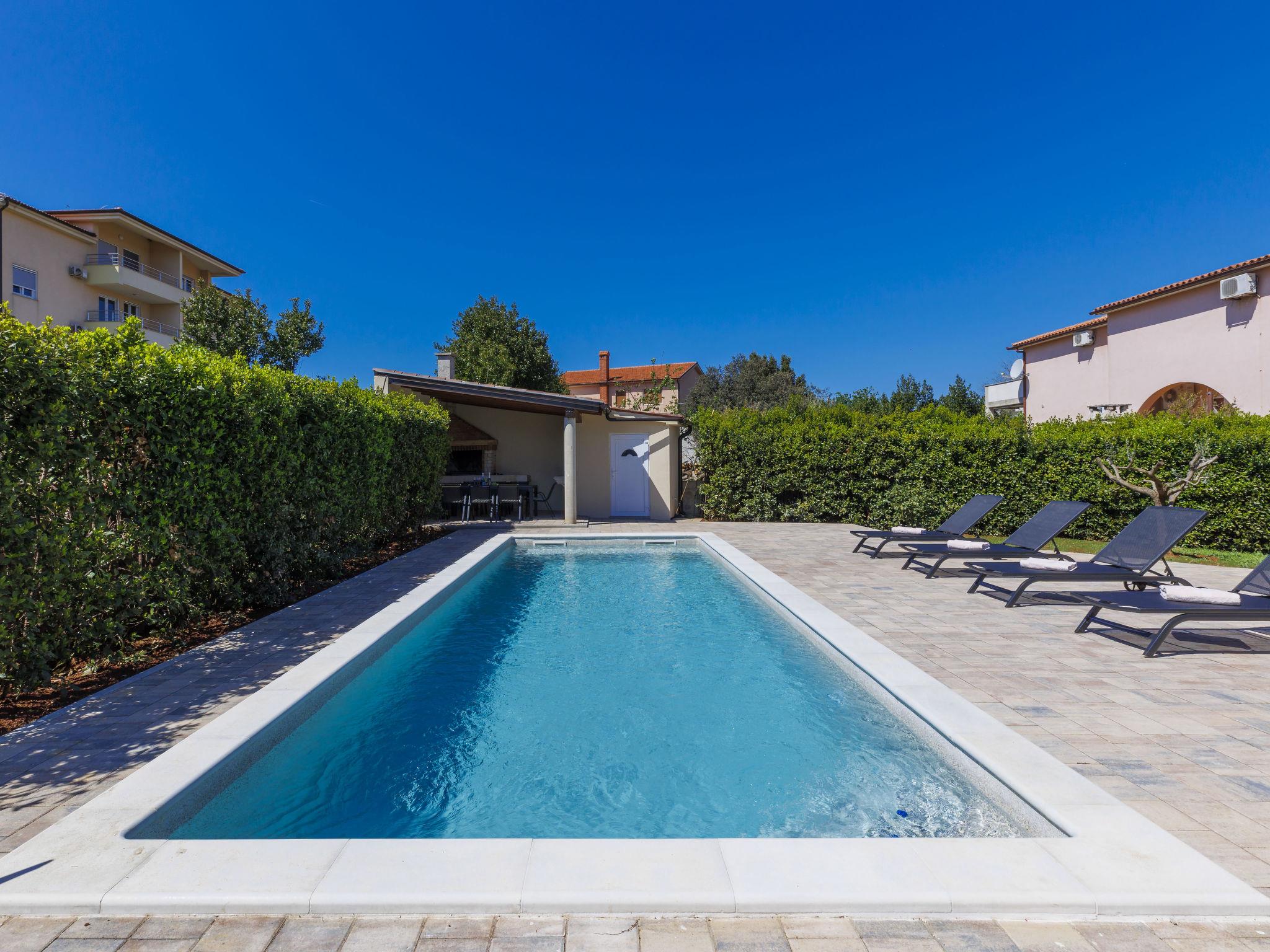 Beautiful single-family house "Danijela", 2 storeys. 300 m from the centre, 2.5 km from the centre of Medulin, in a quiet, sunny position, 1.5 km from the sea. Private: property 1'200 m2 (fenced) with wildlife garden, swimming pool angular (9 x 4 m, depth 140 cm, seasonal availability: 15.Apr. - 15.Oct.) with internal staircase and salt-electrolysis pool-cleaning system. Outdoor shower, terrace (20 m2), garden furniture, barbecue, pool maintenance by the owner/gardener. In the house: internet access, washing machine, tumble dryer. Roofed, parking (for 2 cars) at the house on the premises. Shop, restaurant 300 m, bus stop 400 m, pebble beach 1.5 km, rocky beach 1.5 km, diving center 1.5 km. Surf school 2 km, riding stable 2 km, walking paths from the house 100 m, cycle lane 150 m. Nearby attractions: Amphitheatre 11 km. Please note: suitable for families. The owner does not accept any youth groups. Neighbourhood highly sensitive to noise. Quietness and good behaviour expected. Swimming pool with hydromassage.