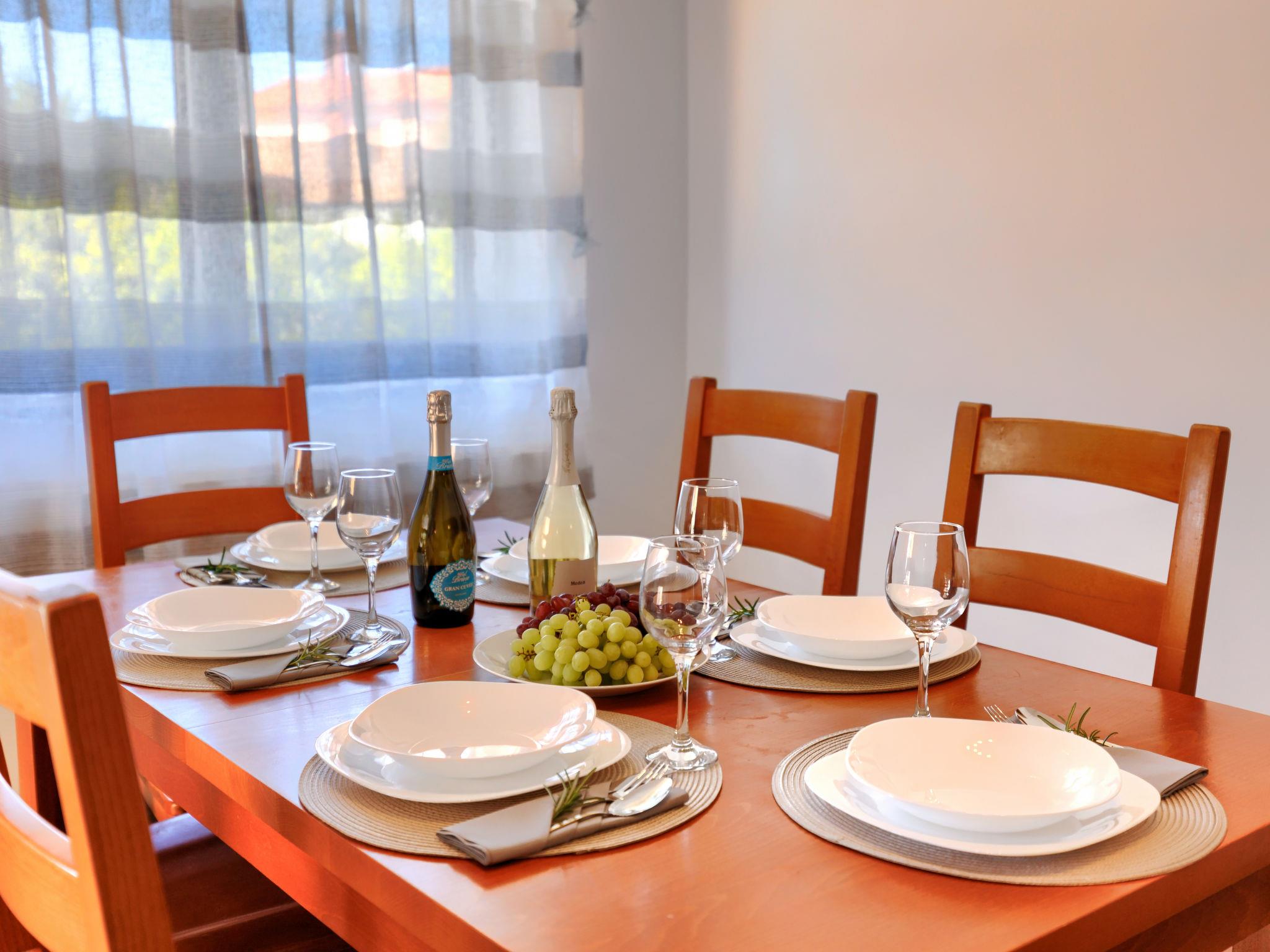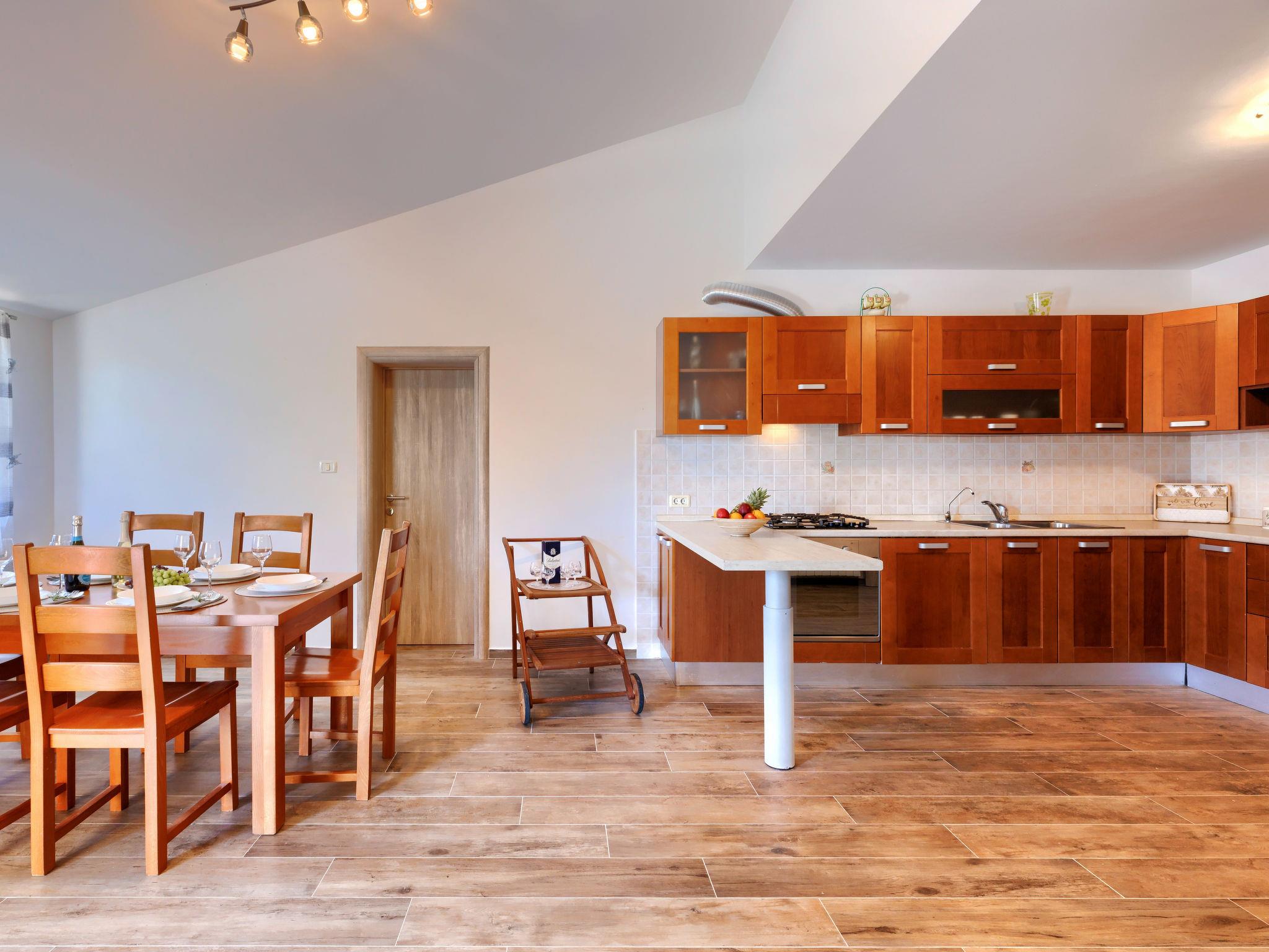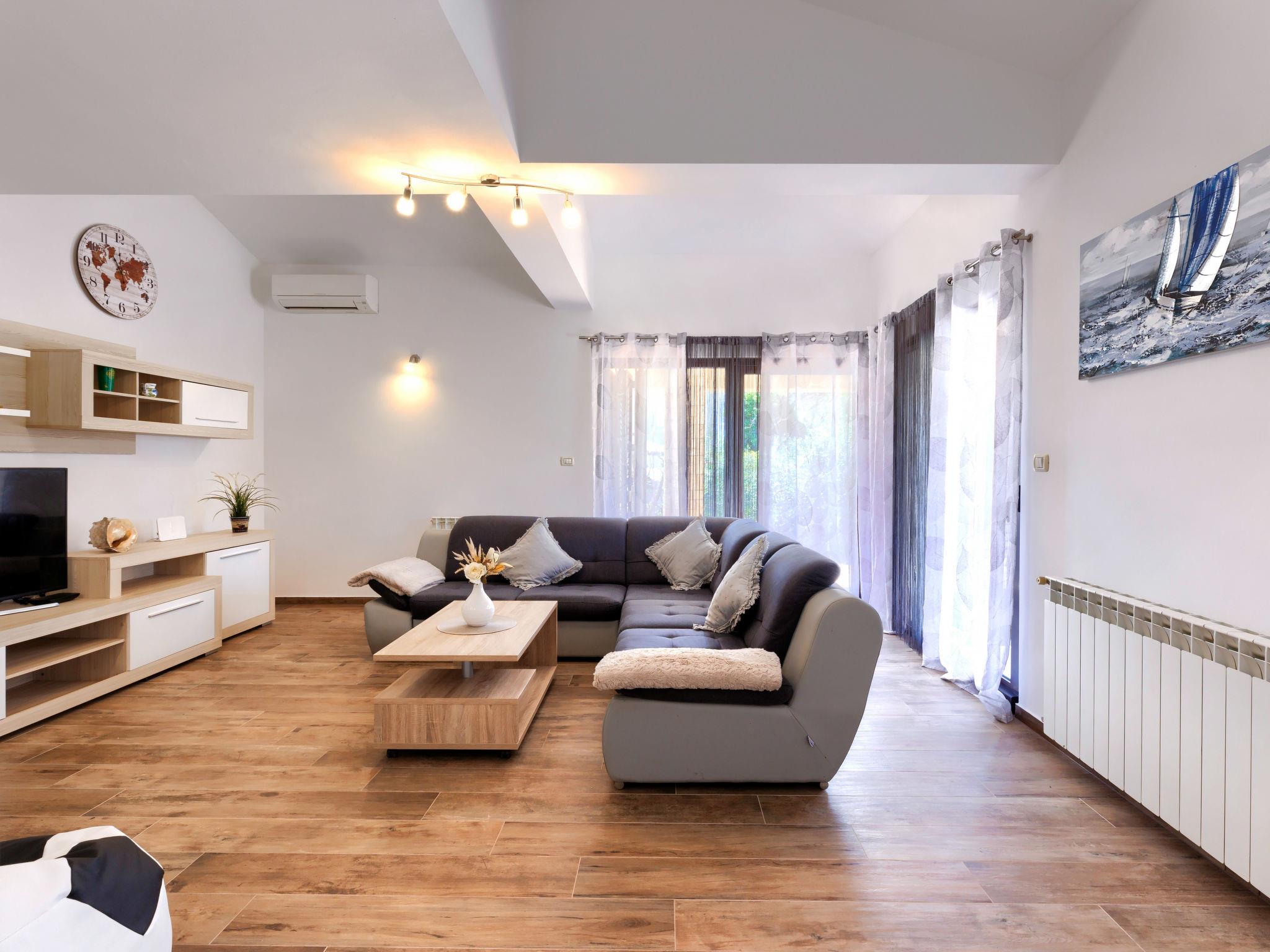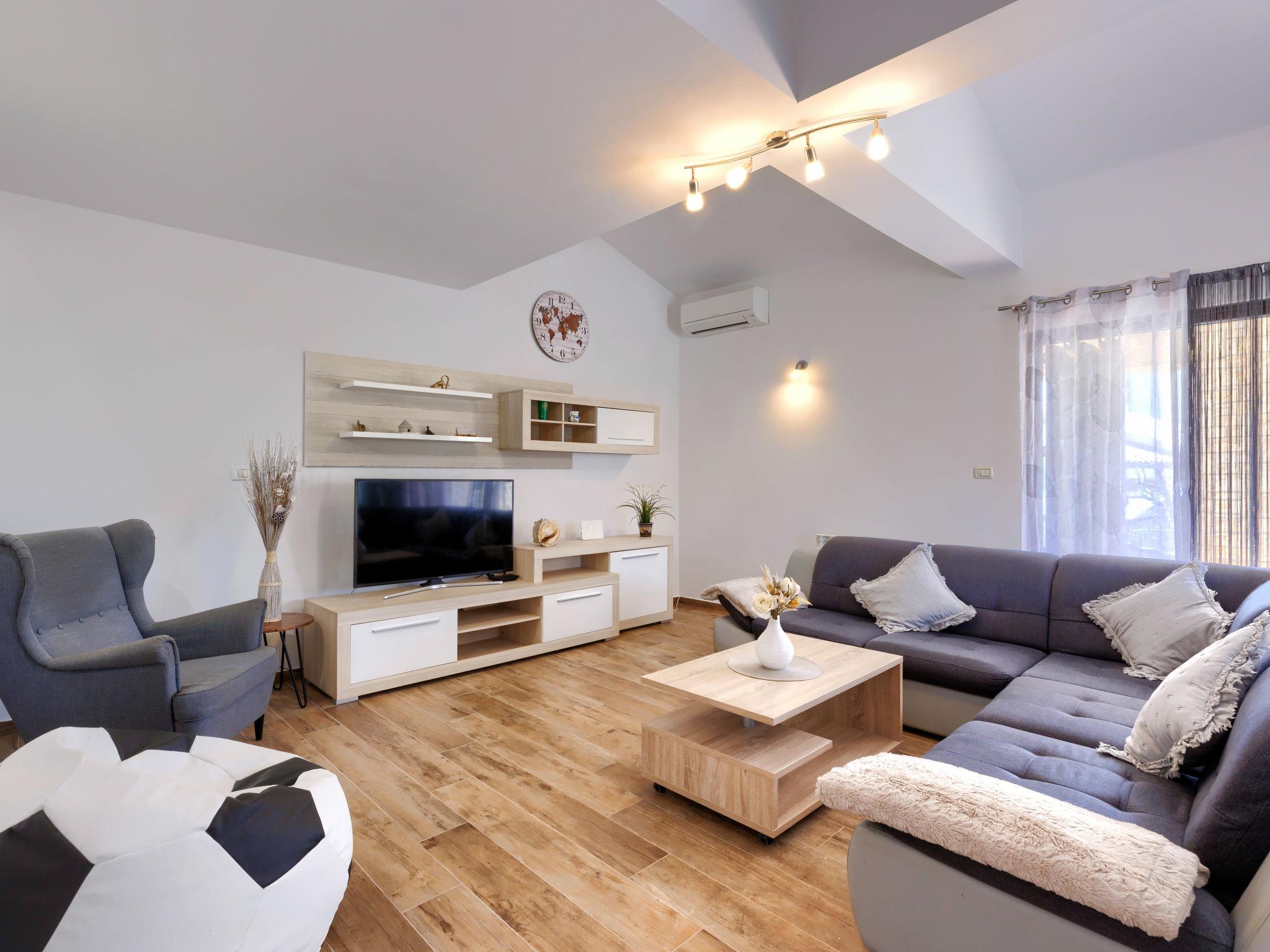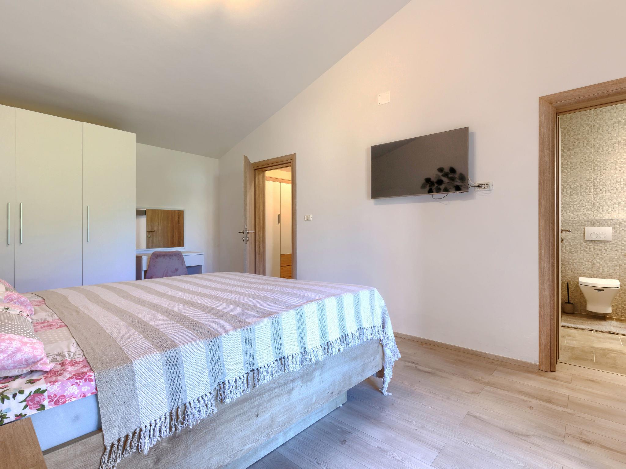 Beautiful single-family house "Danijela", 2 storeys. 300 m from the centre, 2.5 km from the centre of Medulin, in a quiet, sunny position, 1.5 km from the sea. Private: property 1'200 m2 (fenced) with wildlife garden, swimming pool angular (9 x 4 m, depth 140 cm, seasonal availability: 15.Apr. - 15.Oct.) with internal staircase and salt-electrolysis pool-cleaning system. Outdoor shower, terrace (20 m2), garden furniture, barbecue, pool maintenance by the owner/gardener. In the house: internet access, washing machine, tumble dryer. Roofed, parking (for 2 cars) at the house on the premises. Shop, restaurant 300 m, bus stop 400 m, pebble beach 1.5 km, rocky beach 1.5 km, diving center 1.5 km. Surf school 2 km, riding stable 2 km, walking paths from the house 100 m, cycle lane 150 m. Nearby attractions: Amphitheatre 11 km. Please note: suitable for families. The owner does not accept any youth groups. Neighbourhood highly sensitive to noise. Quietness and good behaviour expected. Swimming pool with hydromassage.