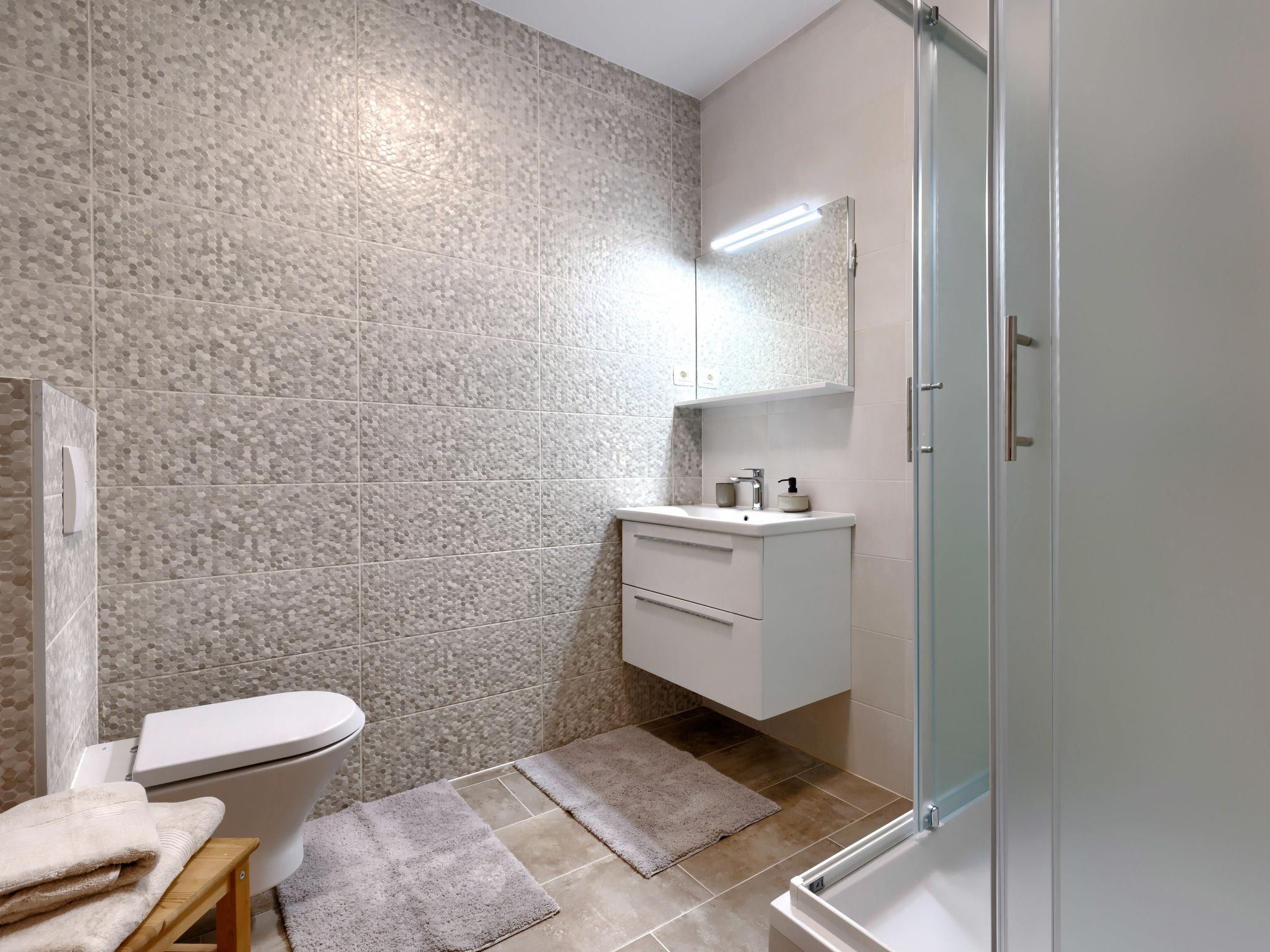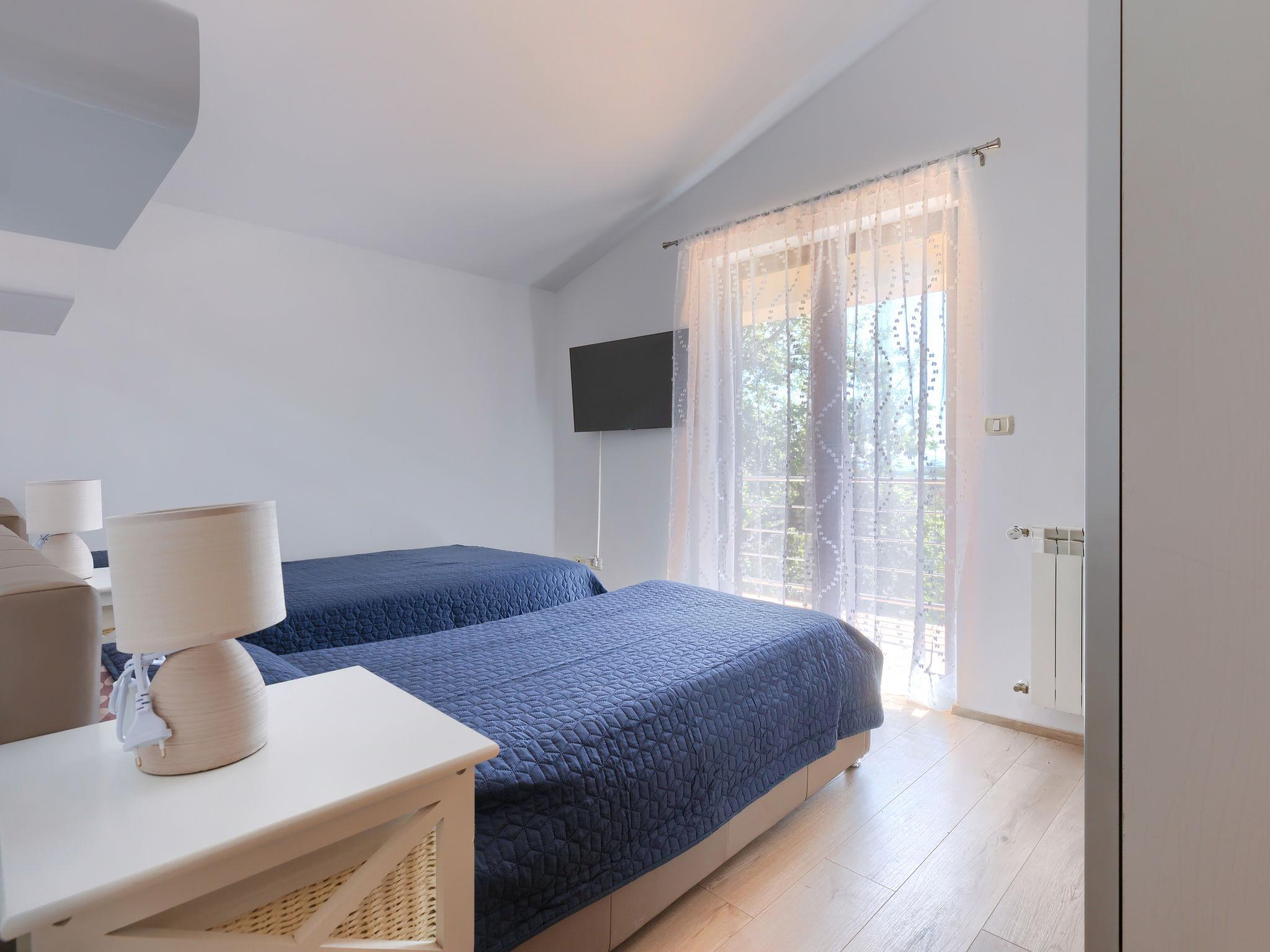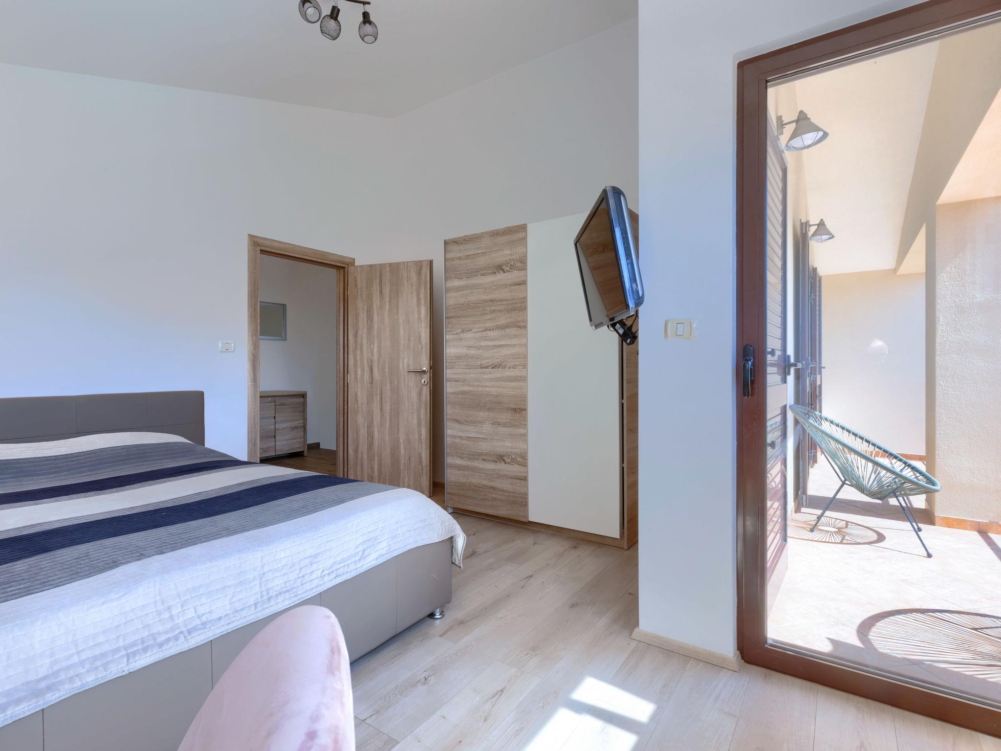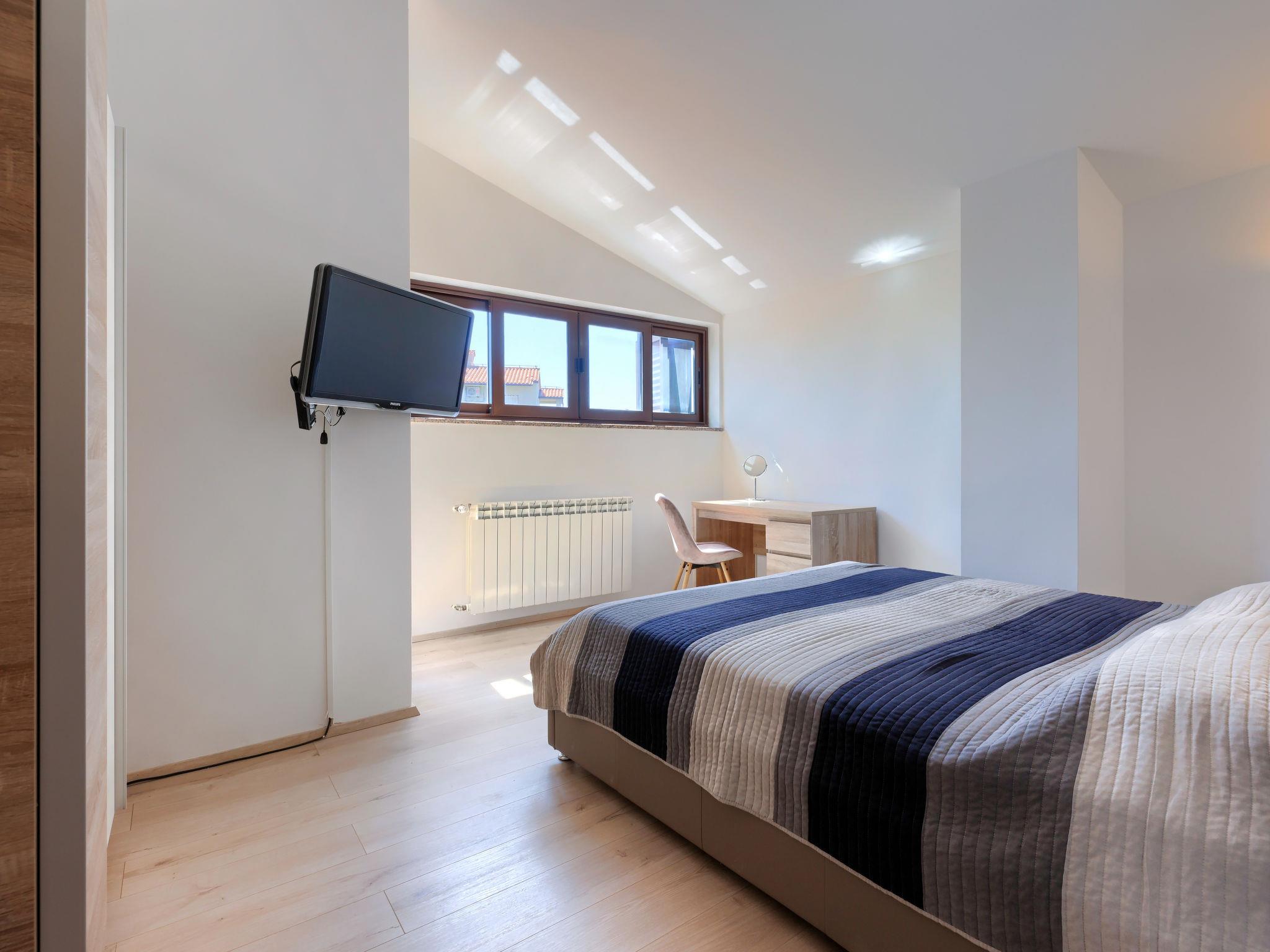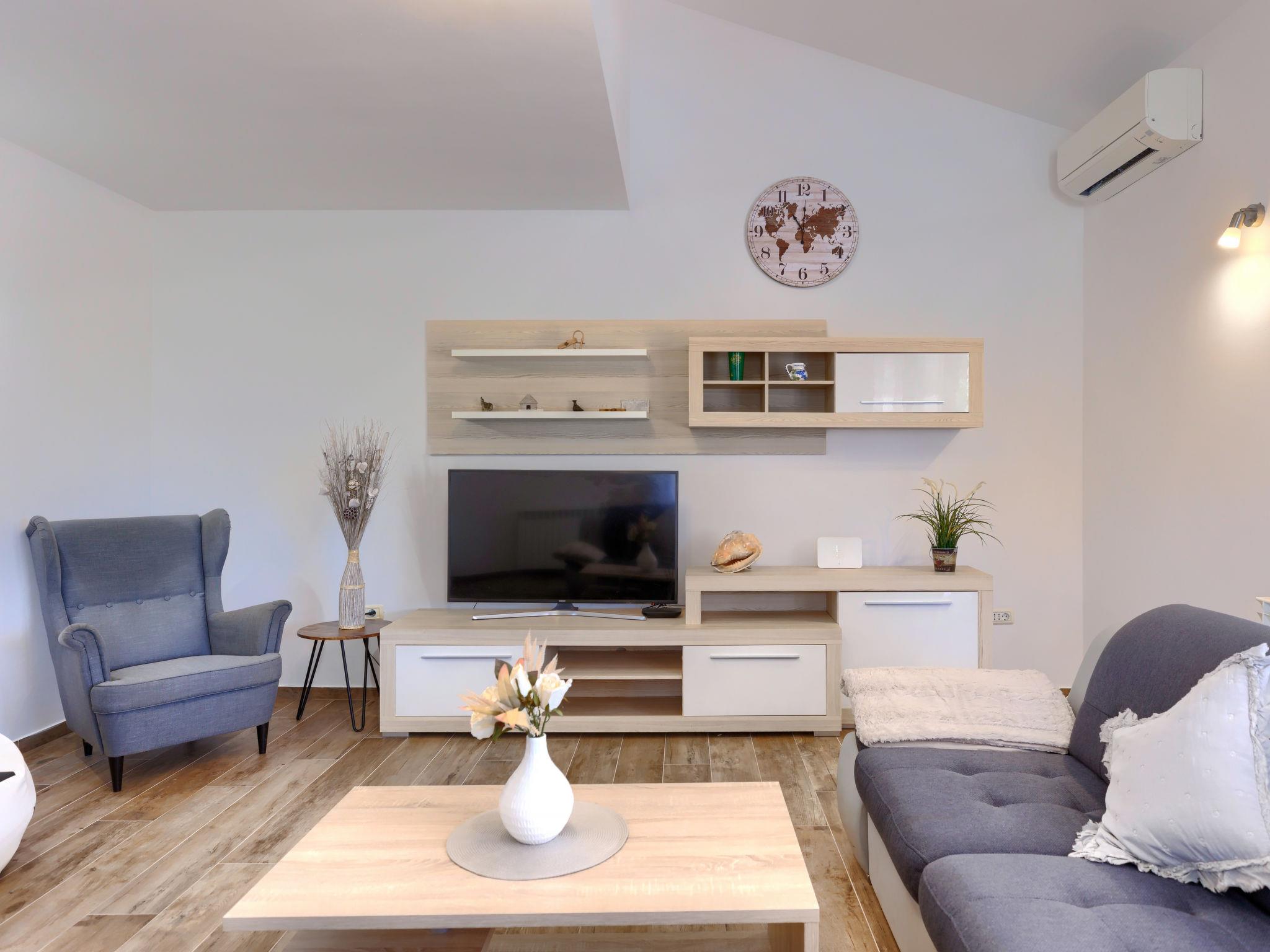 Beautiful single-family house "Danijela", 2 storeys. 300 m from the centre, 2.5 km from the centre of Medulin, in a quiet, sunny position, 1.5 km from the sea. Private: property 1'200 m2 (fenced) with wildlife garden, swimming pool angular (9 x 4 m, depth 140 cm, seasonal availability: 15.Apr. - 15.Oct.) with internal staircase and salt-electrolysis pool-cleaning system. Outdoor shower, terrace (20 m2), garden furniture, barbecue, pool maintenance by the owner/gardener. In the house: internet access, washing machine, tumble dryer. Roofed, parking (for 2 cars) at the house on the premises. Shop, restaurant 300 m, bus stop 400 m, pebble beach 1.5 km, rocky beach 1.5 km, diving center 1.5 km. Surf school 2 km, riding stable 2 km, walking paths from the house 100 m, cycle lane 150 m. Nearby attractions: Amphitheatre 11 km. Please note: suitable for families. The owner does not accept any youth groups. Neighbourhood highly sensitive to noise. Quietness and good behaviour expected. Swimming pool with hydromassage.