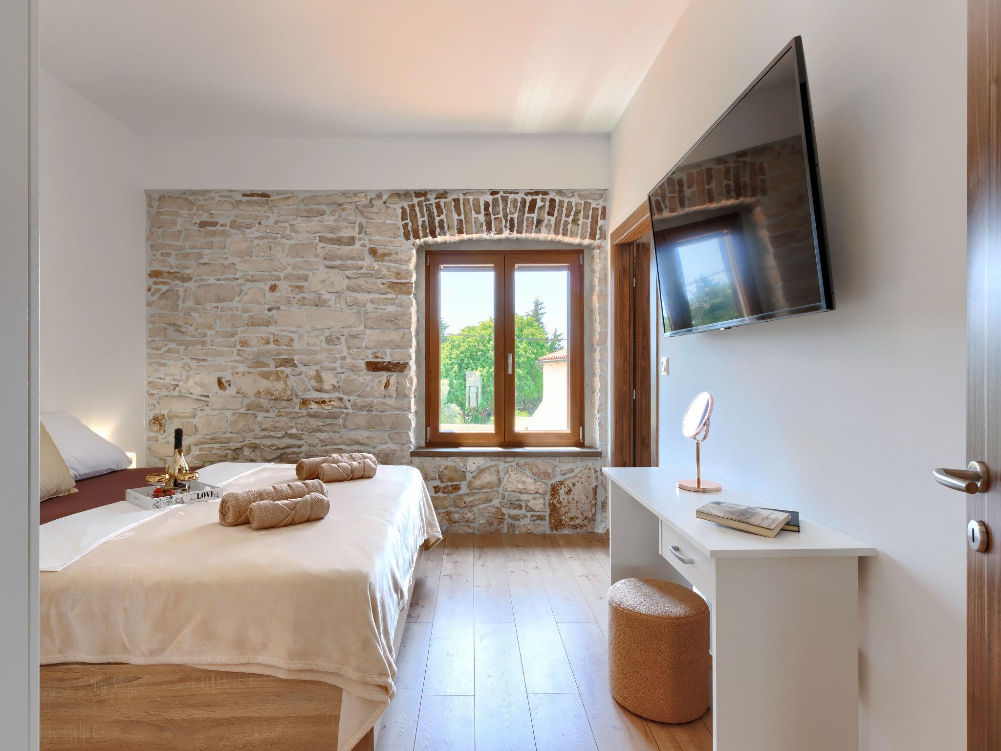 Beautiful semi-detached house "Stara hiža", 2 storeys. 100 m from the centre, 2.2 km from the centre of Medulin, in a sunny position, 1.5 km from the sea. Private: property 500 m2, garden with wildlife garden, swimming pool angular (8 x 4 m, depth 140 cm, seasonal availability: 01.May. - 01.Nov.) with internal staircase. Outdoor shower. In the house: internet access, billiard table, washing machine. Roofed, parking (for 2 cars) at the house on the premises. Shop, restaurant 50 m, bus stop 500 m, pebble beach 1.5 km, rocky beach 1.5 km. Surf school 2 km, riding stable 1 km, walking paths from the house 100 m, cycle lane 150 m. Nearby attractions: Amphitheatre 12 m.