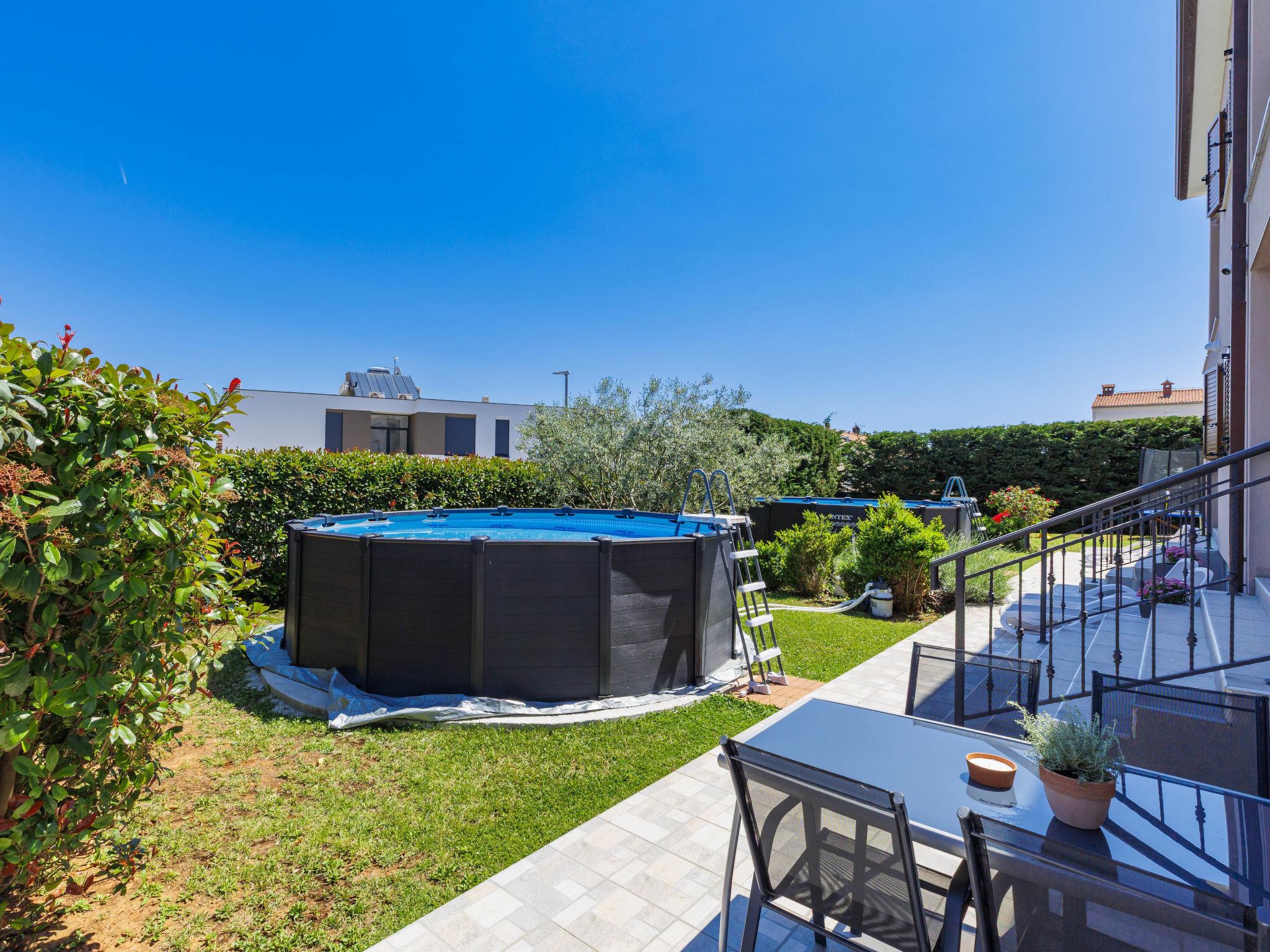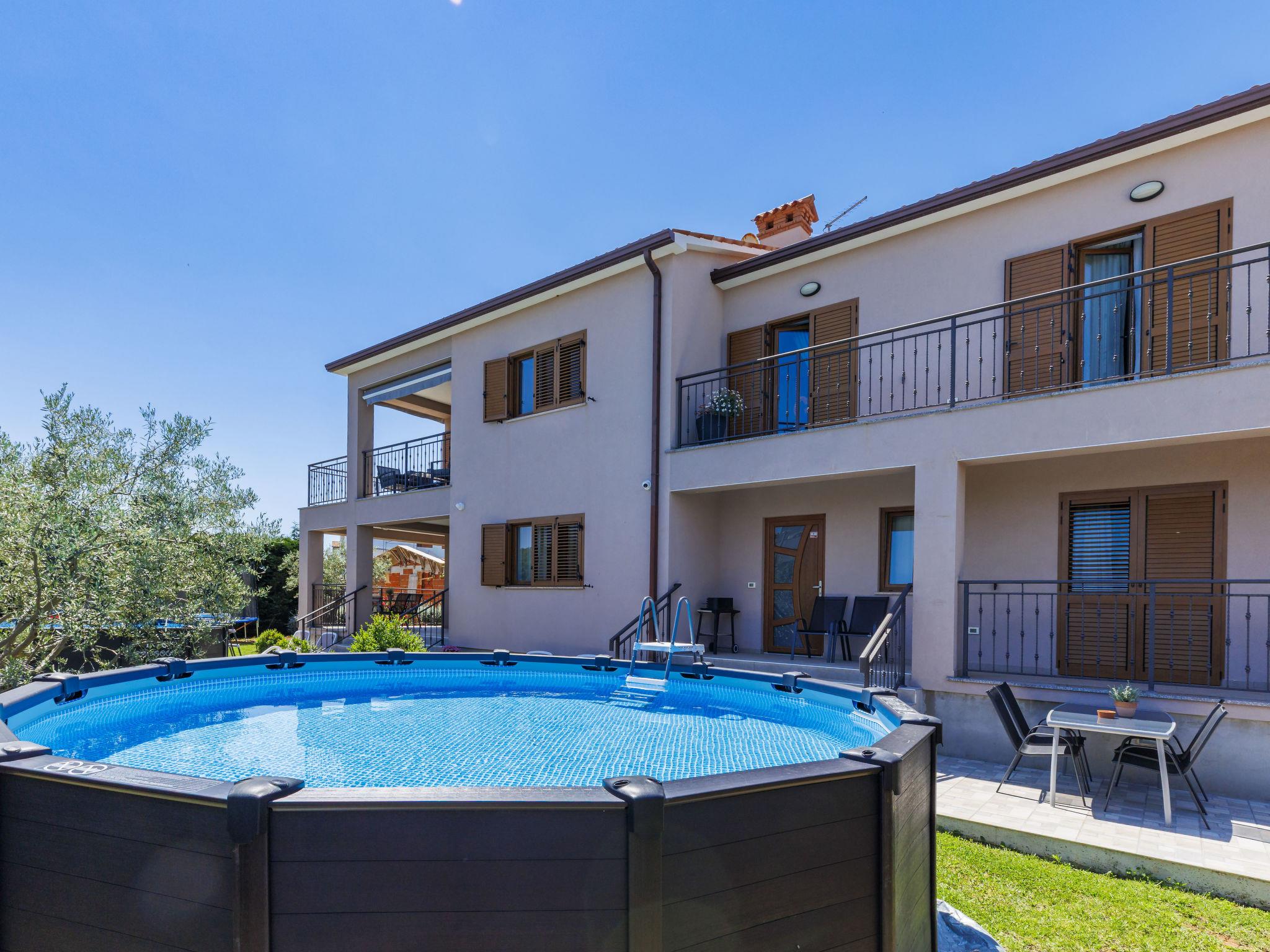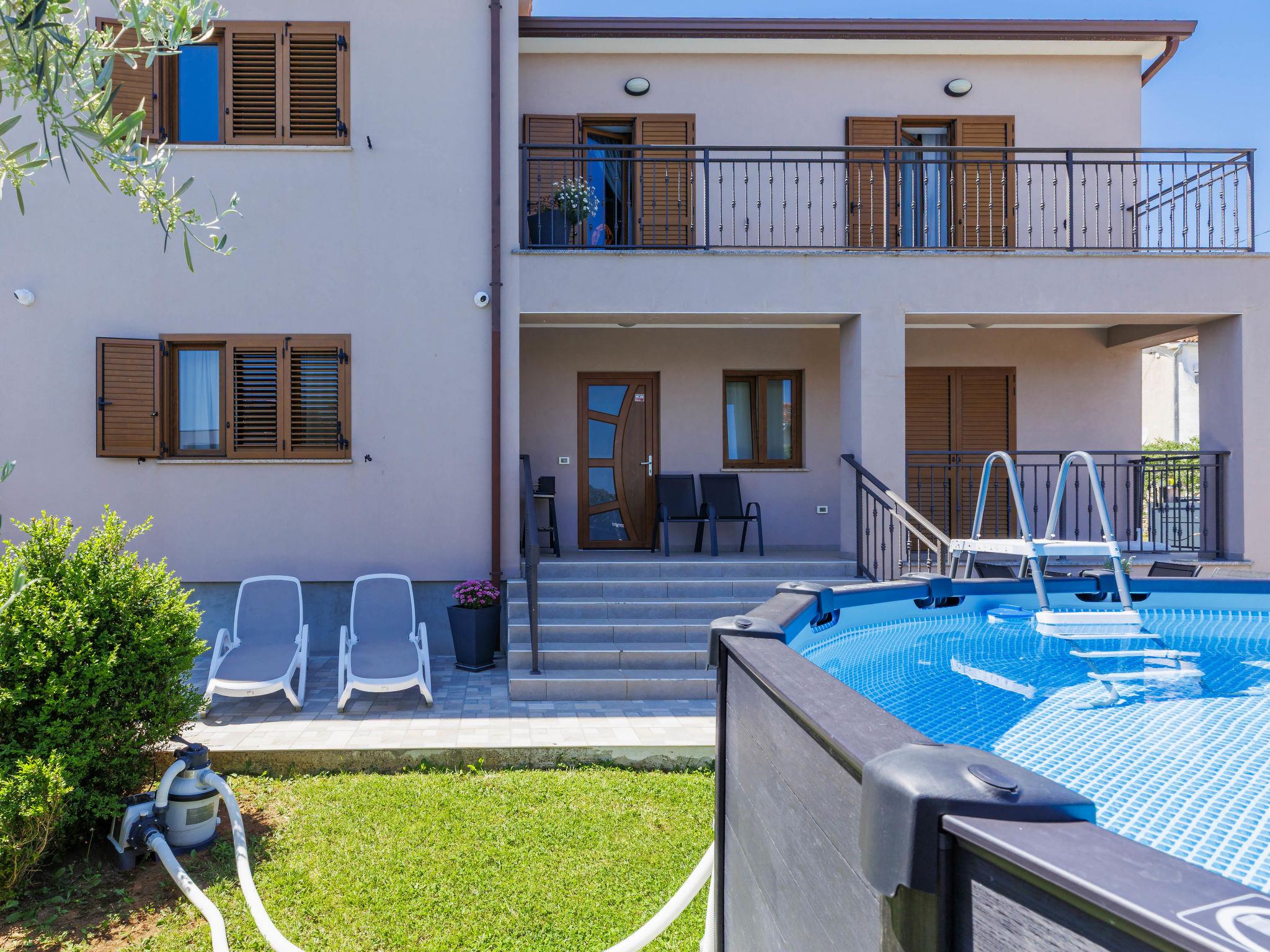 Ližnjan 2 km from Medulin: 3-family house "Kika". 1 km from the centre of Ližnjan, in a quiet, sunny position, 1 km from the sea, 1 km from the beach. Private: property 200 m2 (fenced), garden with lawn, swimming pool (above ground) (5 m diameter, depth 125 cm, seasonal availability: 27.Apr. - 12.Oct.). Barbecue, children's playground (slide), pool maintenance by the owner/gardener. In the house: internet access. Parking at the house on the premises. Shop, restaurant 100 m, bus stop 1 km, sandy beach 2 km pebble beach 1 km, rocky beach 1 km. Tennis 500 m, riding stable 2 km. Nearby attractions: Adrenalin park 5 km, Nature park Rt Kamenjak 10 km.
